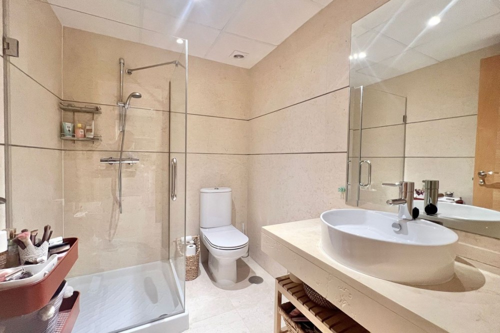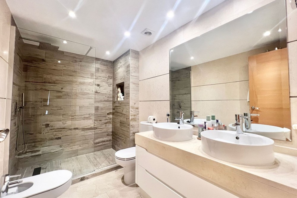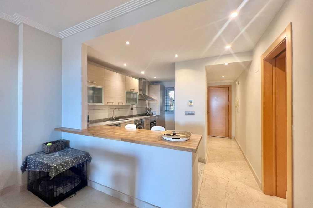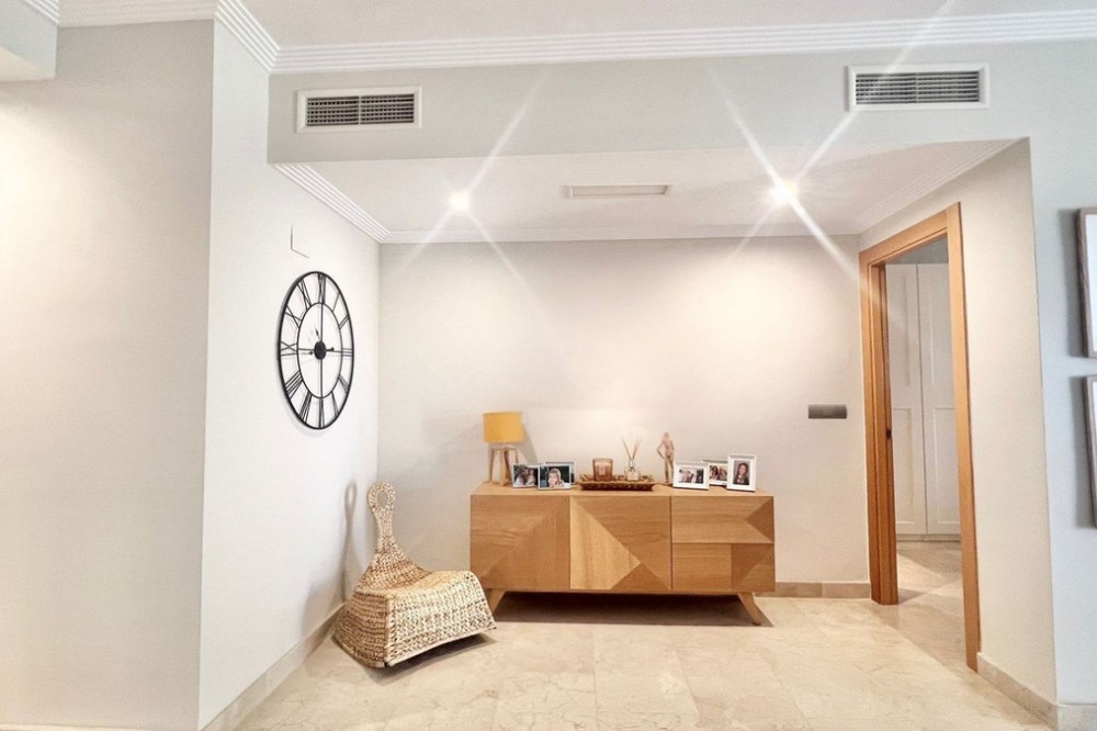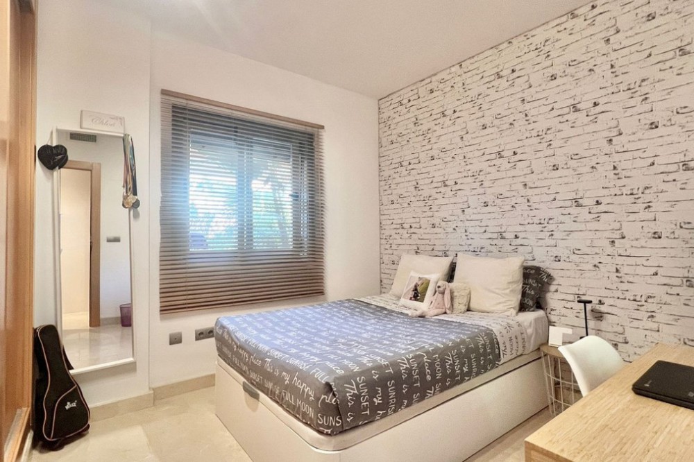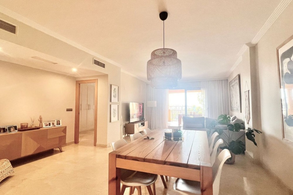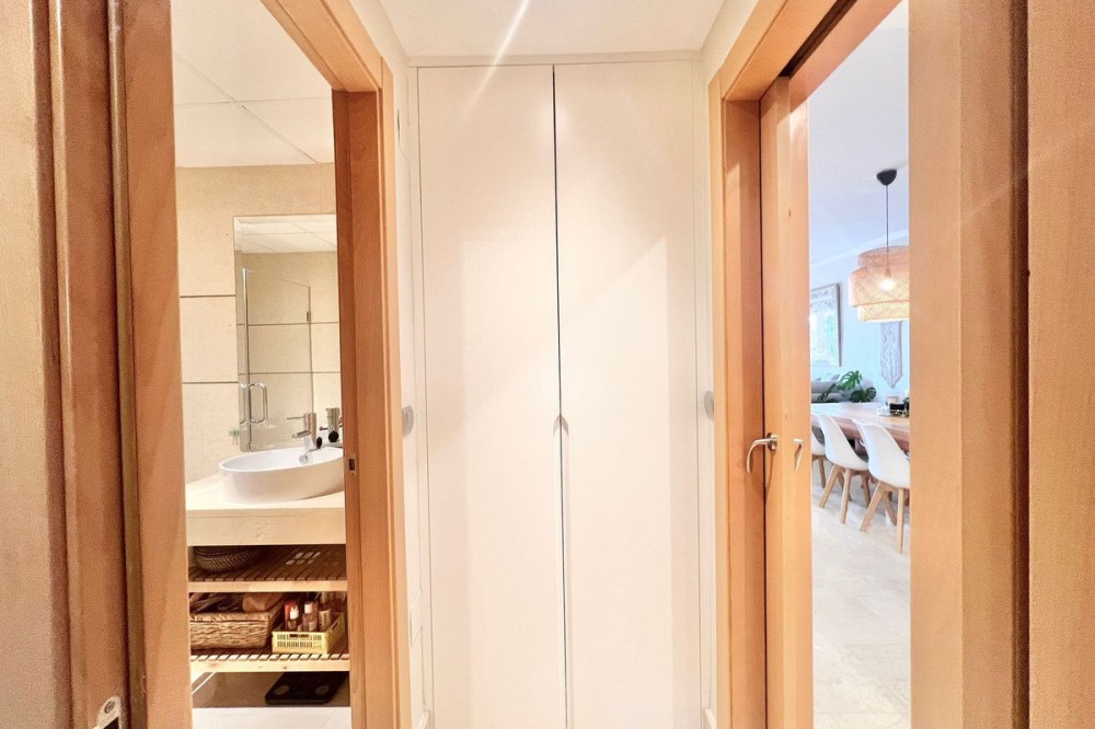 - Renovated Apartment in the New Golden Mile – 5 min from the Beach & 15 min from Puerto Banús! Discover this spectacular apartment renovated in 2021, located in one of the most sought-after areas of the Costa del Sol: the New Golden Mile, between Puerto Banús and Estepona. A strategic location, ideal for year-round living or as a second home by the sea. Just 5 minutes by car from the beach and 15 minutes on foot along a charming coastal path that leads directly to the sea. Excellent connections allow you to reach Puerto Banús or Estepona centre in just 15 minutes, surrounded by the best restaurants, beach clubs, and amenities. This bright apartment is set on a raised ground floor, offering privacy and generous spaces throughout: Spacious living room of over 30 m² with an open and modern kitchen. Master bedroom of 19 m² with a fully renovated ensuite bathroom. Second bedroom with an additional bathroom. 28 m² terrace with pleasant partial sea views, perfect to enjoy the Mediterranean climate. The complex is undergoing aesthetic renovation with restored façades in elegant off-white tones, featuring over 20,000 m² of beautifully maintained tropical gardens and two swimming pools available all year round. Includes a large parking space and storage room. A property that combines space, comfort, and a prime location in the heart of the Costa del Sol. Perfect for those who wish to live close to the sea with easy access to the most exclusive destinations and all amenities.