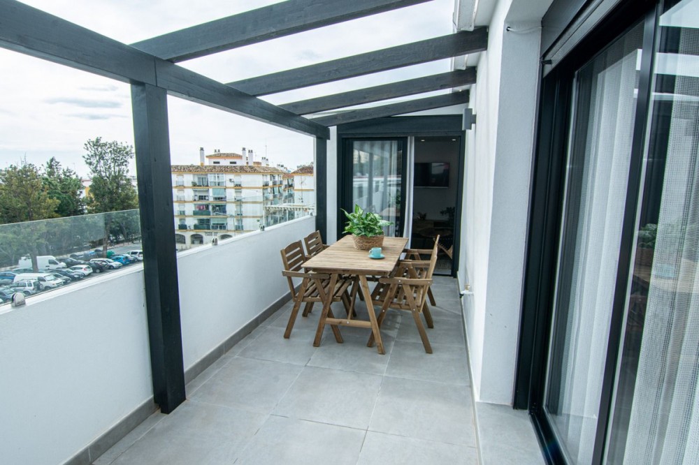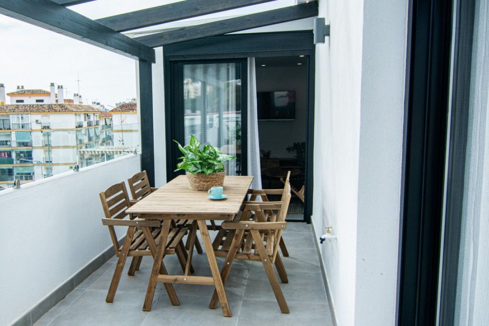 - Fantastic penthouse for sale in the old town, it consists of 64 square meters and is distributed in a spacious living room, with access to a large, very sunny terrace with magnificent views of the town, an open and fully equipped kitchen, two double-bed bedrooms with built-in wardrobes and a full bathroom. This topfloor apartment was completely renovated in 2023 in which everything was new in electricity, plumbing and furniture. We highlight its excellent location close to all types of services, and a few meters walk from the Plaza de los Naranjos and a few minutes from the best beaches in Marbella.