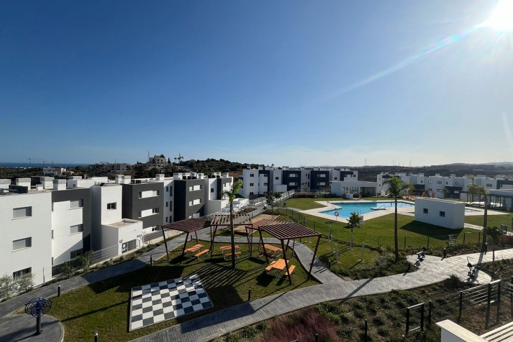 - Elegant South-Facing Penthouse with Panoramic Sea & Golf Views – Estepona, Valle Romano, Calle Ecuador 1 This bright and spacious 3-bedroom penthouse is located in one of Estepona’s most scenic residential areas – Valle Romano. Positioned on the top floor with ideal south-facing orientation, the property boasts a generous 28 m² terrace and uninterrupted views of the Mediterranean Sea, golf courses, and the surrounding mountains. Key Property Features: - Prime location – nestled between two renowned golf courses, Valle Romano and Azata Golf, in a peaceful green setting, yet only minutes away from Estepona’s town center, marina, beaches, restaurants, and daily conveniences. - Top-floor position – situated in the best building within the development, offering full privacy and front-row panoramic sea views. - Sunlit interiors – southern exposure provides natural light and warmth all day long in both the living area and the main bedroom. - Well-designed layout – three bedrooms (including a master suite with en-suite bathroom), an additional full bathroom, and a spacious living and dining area with open-plan kitchen and direct access to the large terrace. - Dining area with a view – enjoy Mediterranean Sea views right from your dining table, perfect for indoor-outdoor living. Comforts & Community Amenities: - Private underground parking space and adjacent storage room, - Outdoor swimming pool with separate children’s pool, - Quiet playground for young children, - Residents’ community club with shared lounge and kitchen facilities, - Indoor gym and outdoor fitness equipment, - Thoughtfully designed walking paths – ideal for families and residents with reduced mobility, - Recreational zones with picnic benches and a pétanque court, - Atmospheric nighttime lighting throughout the complex for a cozy and secure evening ambiance. ???? Why This Property Stands Out ???? This penthouse is an exceptional choice as a permanent residence, a holiday retreat, or a smart rental investment. Its combination of comfort, privacy, nature, and proximity to urban amenities makes it perfect for: *Golf lovers and sports enthusiasts, * Families with children, * Individuals or couples seeking a stylish and peaceful coastal lifestyle, * Investors looking for a high-demand rental property in Estepona (both short and long term).
