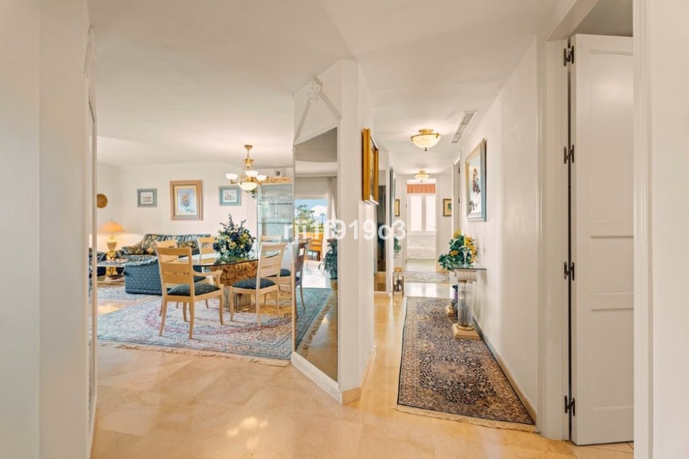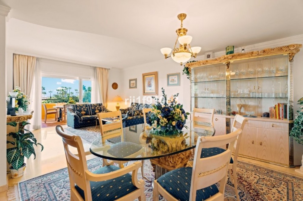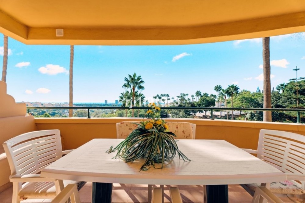 - This beautiful corner apartment offers abundant natural light that fills every corner of its 3 bedrooms and 2 bathrooms. Upon entering, you are welcomed by a welcoming hall that leads to a furnished kitchen with an adjacent terrace, perfect for enjoying breakfast with a view. The spacious living and dining room flows harmoniously onto a charming terrace that allows you to relax and contemplate the sea in any season. This apartment features amenities such as air conditioning, central heating, electric blinds, and elegant marble floors throughout. For added convenience, it also has a parking space and storage room. The communal gardens, a tropical oasis, surround several swimming pools ideal for relaxation and leisure. In addition, the complex offers a 9-hole golf course, tennis courts, a gym, and a driving range, providing multiple recreational options. The clubhouse, with its famous El Lago restaurant and views of a serene lake, is the perfect place to unwind and enjoy special moments. Located just a few minutes' drive from Elviria Beach and next to Greenlife Golf, this apartment combines tranquility and accessibility. The nearby Elviria Shopping Center offers a wide variety of shops, bars, restaurants, and services, while international and German schools are just 10 minutes away. Marbella, Puerto Banús, and Malaga Airport are within easy reach, ensuring excellent connectivity. Don't miss the opportunity to live in a place that combines luxury, comfort, and stunning views on the Costa del Sol!