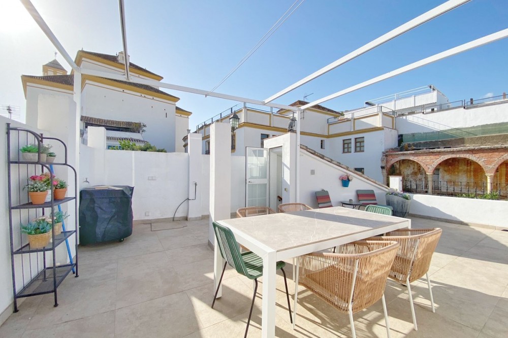 - Charming house in the old town, with a stunning sunny terrace and beautiful views of the historic center. The house also has a beautiful central courtyard surrounding the bedrooms, adding a lot of charm and character, as well as providing perfect natural ventilation throughout the house. With a beautiful location, next to the Church of La Encarnación and the Engraving Museum. Located on a corner, between two quiet pedestrian streets, it has a large facade, with windows and balconies overlooking both streets. Consisting of 5 spacious bedrooms and 4 bathrooms, 2 living rooms and 2 kitchens, distributed as follows: On the main floor, there is a cozy living and dining room, a kitchen with an island, and a beautiful central interior courtyard. There are also 3 spacious bedrooms and 2 bathrooms. The master bedroom has an en-suite bathroom. This home, on the ground floor, is accessed from the outside through a separate door from the street. So it could be used as an apartment independent from the rest of the house, if desired. On the upper floor, there is an impressive living-dining room with balconies overlooking the street and another small balcony overlooking the house's interior courtyard. A modern kitchen with a central island. And two double bedrooms, both with en-suite bathrooms. From here, you can access the impressive outdoor terrace, sunny all day, with pleasant unobstructed views around the old town and a beautiful direct view of the Church of the Encarnación. This floor, like the lower floor, also has its own private entrance from the street. It could also be used as an independent apartment with a terrace. Therefore, this family home could be converted into two completely independent apartments. The house is in excellent condition and is ready to move into. Extraordinary house for family use. It could also be used for tourist use, either as a spacious family home or as two independent apartments.