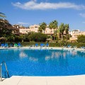 - This beautifully presented two-bedroom, two-bathroom ground floor apartment is located in the highly sought-after gated community on the Casares Costa. This fabulous property has a good sized terrace with lovely views of the beautiful community gardens, perfect for enjoying the morning sun. Located in a beautifully maintained community, offering lush tropical gardens, a large swimming pool, 24-hour security, and an unrivalled sense of peace and privacy. Its prime location places the sandy beaches of Casares Costa within easy reach, along with golf courses such as Doña Julia, Finca Cortesin, and Casares Costa Golf. The lively marina of La Duquesa, the charming village of Sabinillas, and the beautiful town of Estepona are moments away, with Marbella, Gibraltar, and Málaga Airport all easily accessible. The interior of the property is in excellent condition and offered fully furnished. The bright lounge and dining area opens directly to the terrace, creating a seamless flow between indoor and outdoor living. A fully fitted kitchen with a separate utility room provides convenience, while the two generous double bedrooms feature fitted wardrobes. The master bedroom benefits from its own en-suite bathroom, and there is also an independent family shower room. High-quality finishes include marble floors, hot and cold air conditioning, and an electric sunblind in the living room. The property also includes private underground parking and a large storeroom for added convenience. The terrace is east facing, capturing the soft morning sun while enjoying serene views of the landscaped surroundings. This terrace offers the possibility to be extended to double its size, creating an exceptional space for al fresco dining and outdoor living.