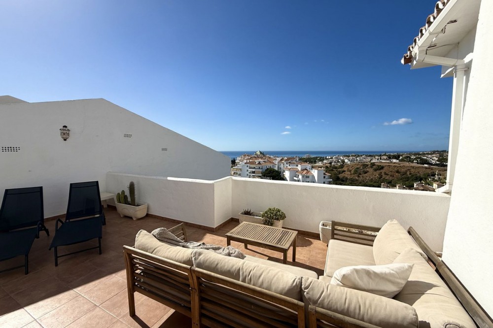 - Penthouse with Stunning Sea Views in Riviera del Sol! Welcome to this wonderful penthouse in the heart of Riviera del Sol, offering magical views of the Mediterranean Sea – enjoy the sunshine from morning until evening! The apartment features a bright and modern open-plan layout connecting the newly renovated kitchen with the living room – perfect for social gatherings and relaxation. It consists of three spacious bedrooms and two fresh bathrooms, making it ideal both as a permanent home and as a holiday getaway. There is also central air conditioning (hot/cold) for maximum comfort all year round. The community offers a lovely swimming pool and well-maintained communal areas – everything you need to enjoy life on Costa del Sol. In addition, the property comes with a tourist license, making it a perfect investment opportunity for rentals. The current owner has used the apartment exclusively as a rental investment, which makes it easy to take over an already successful business.