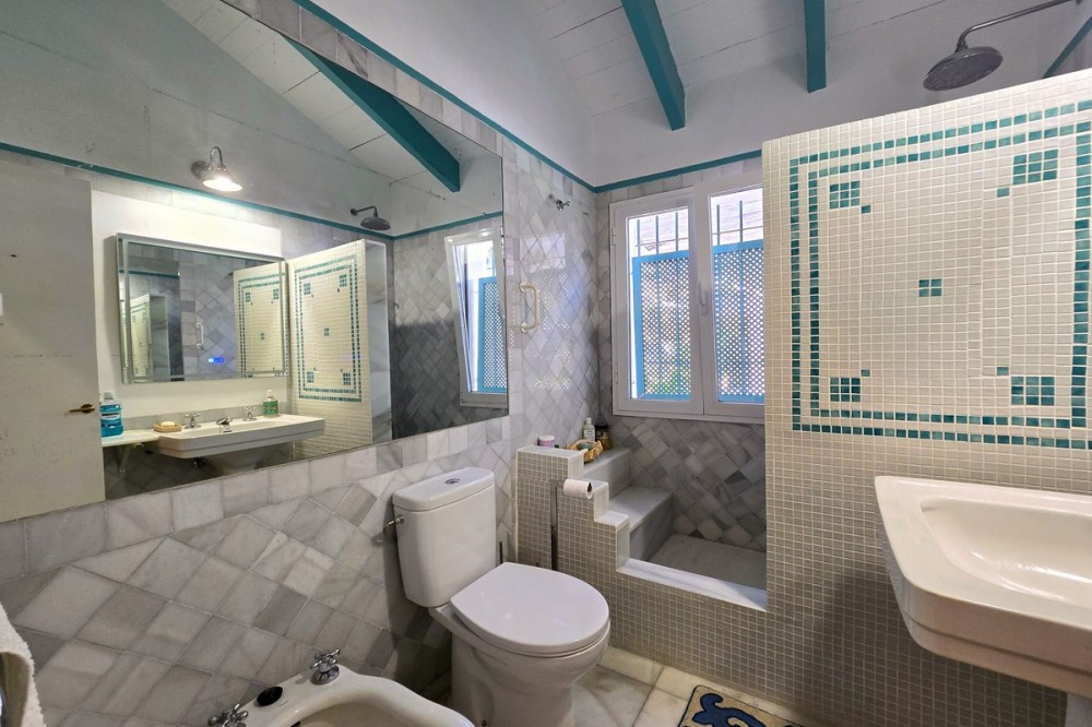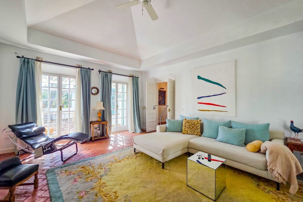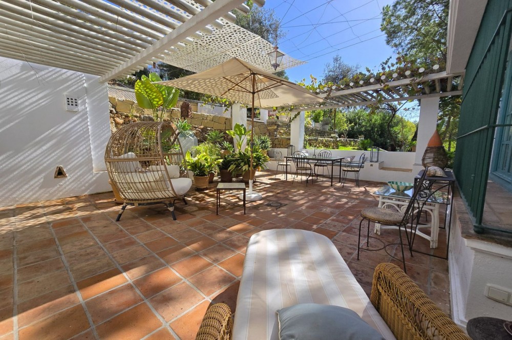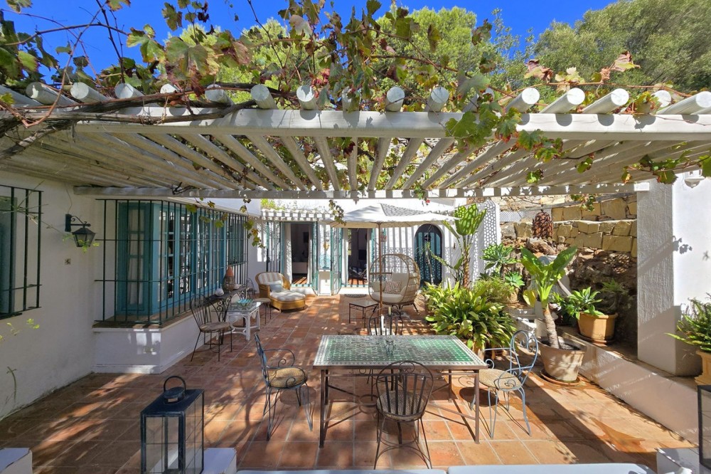 - The Essence of the Good Life - Stunning Andalusian-Style Cortijo Villa with Panoramic Sea Views – Marbella Set amidst fragrant pine trees in the prestigious Montúa area, just above Marbella at the foot of the majestic La Concha mountain, this charming single storey cortijo-style villa perfectly blends traditional Andalusian character with modern comforts. Inside, a welcoming hallway with pitched wooden ceilings sets the tone for the home’s elegant interior. To the left, a bright and airy living room with a fireplace is bathed in light, creating a warm and inviting atmosphere. The kitchen, brimming with character and vibrant colors, opens onto a dramatic suspended terrace offering breathtaking sea views, beautifully framed by bougainvillea and jacaranda trees — a perfect spot to savor alfresco meals or simply soak in the Mediterranean atmosphere. At the heart of the home lies its enchanting central courtyard — a true outdoor sanctuary. Pergolas adorned with climbing vines create a shaded summer dining area, ideal for memorable evenings, while a cozy seating space by the fountain invites you to relax and enjoy the peaceful sounds of nature. The villa comprises three spacious bedrooms, each with its own bathroom, while the master suite also includes a private sitting area. On the ground floor, a self-contained apartment offers full comfort and independence for guests, complete with its own kitchen and terrace. The villa’s swimming pool, a true jewel in the crown, commands mesmerizing open sea views that extend to Gibraltar and the distant shores of Morocco. Framed by mature carob trees, it invites you to unwind in its serene beauty, while the adjacent summer lounge sets the stage for unforgettable moments of relaxation and outdoor entertaining. Set on a 2,289 m² plot, the property features 245 m² of built area, 120 m² of terraces and patios, and a 37 m² storage room. With the potential to extend the villa by approximately 150 m², this property could also be transformed into a unique boutique hotel-style residence, peacefully nestled in the pine forest yet just moments from the heart of Marbella—making it an ideal opportunity for investors. Car port for 2 cars. The current owners carefully modernized and updated the property in 2023, preserving its traditional charm while creating a home full of character, elegance, and timeless appeal. Beds: 4 | Baths: 4 | Living area: 245m2 | Terraces & courtyards: 120m2 | Facing: S | Swimming pool | Car port for 2 cars | Storeroom: 37m2 | Construction year: 1992 Airport: 30 min drive – Marbella center: 5 min drive – Puerto Banus: 10 min drive - Golf course : 8 min Drive - Beach: 6 min drive - Amenities, bars &restaurants: 3 min drive - Public Transports : 3 min Drive The property market on the Costa del Sol is red hot right now and good properties are being snapped up fast! We suggest that if you see something you like that fits your budget, contact us as soon as possible to avoid disappointment! Our team works incessantly to make sure that the description and the sales prices for the properties offered on this website are correct and up to date. Notwithstanding, the information contained in this website is subject to errors and omissions, and the properties themselves subject to price changes, prior sale or withdrawal from market.