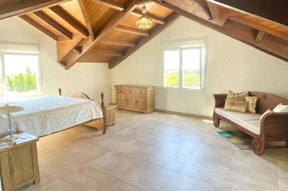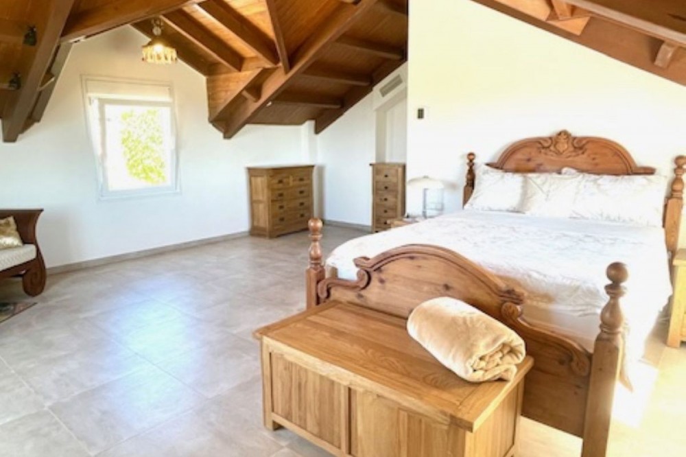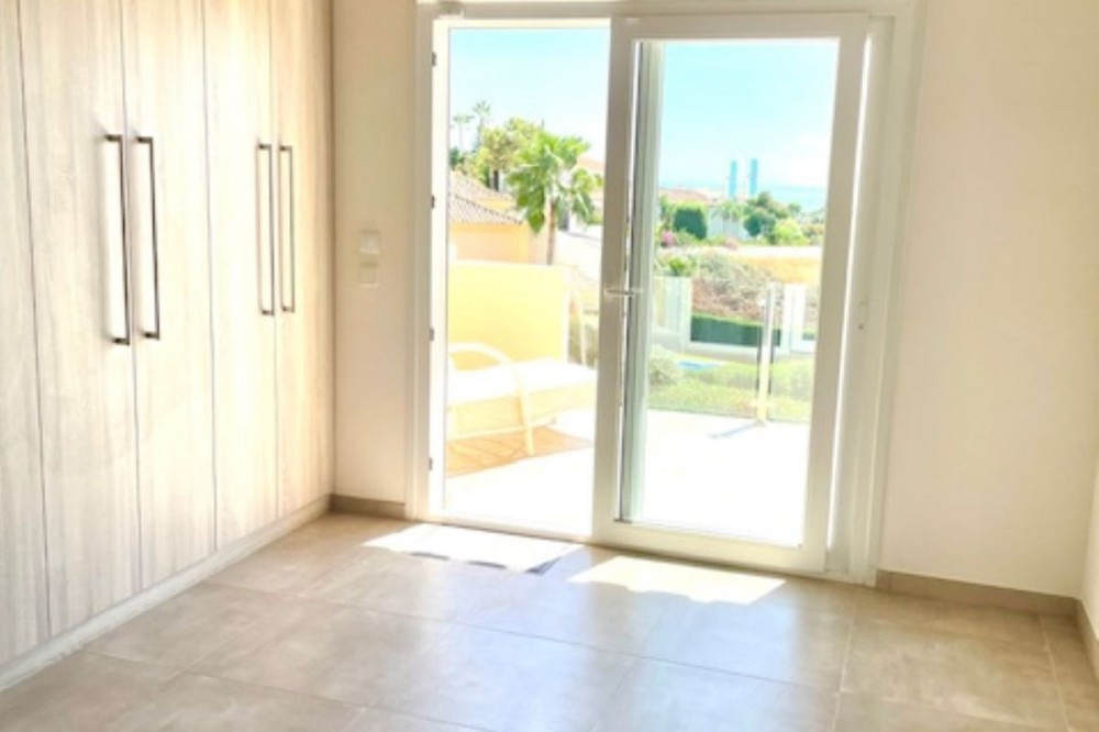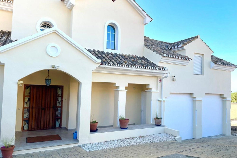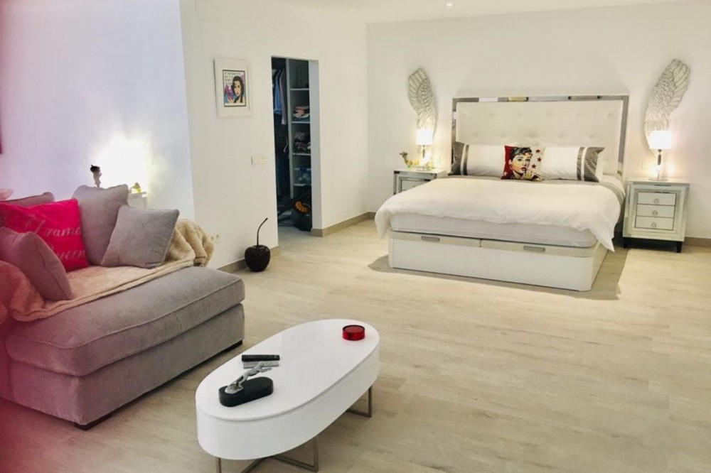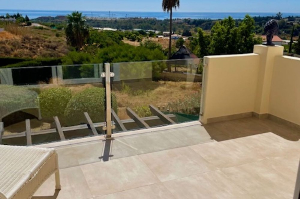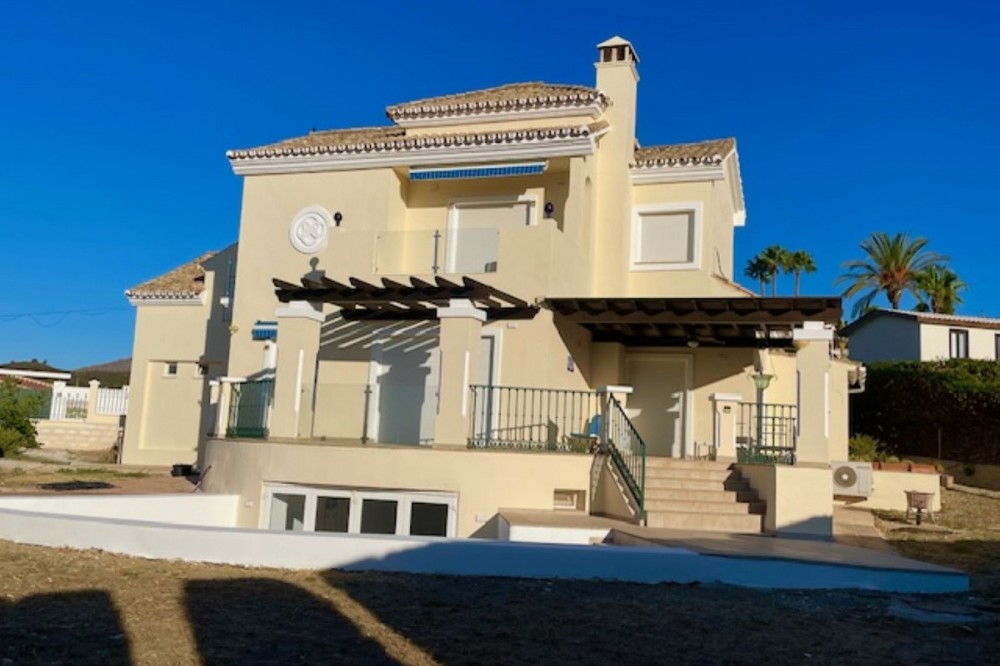 - The house has been recently renovated throughout, in the main house you have 4 bedrooms, one bedroom is on the ground floor with a guest toilet, access to the main terrace from the bedroom, on the upper level you have three bedrooms, the largest of the bedrooms is approximately 30M2 with a wooden vaulted ceiling and lovely views looking out to the sea and Gibraltar, the second bedroom has a small glass terrace and again views to Gibraltar, shared shower room, the third bedroom has a walk in wardrobe plus extra wardrobes built in, en-suite bathroom that has a large shower and bath, high vaulted wooden ceilings, again this bedroom has a nice sunny terrace and views to the sea. The large living room of approximately 50M2 has an open fire place, fully air-conditioned hot and cold throughout the house, large kitchen diner with a utility room, from the living room and kitchen you can access the wrap around terrace, and part of the terrace has been covered to give shade in the summer time. Again, you have sea views from the living room and terrace. Below the house, there is a separate apartment of 108.22M2, featuring a large open plan kitchen, a large shower room, an open-plan bedroom and living area, walk in wardrobe, and plenty of extra built in storage. The apartment downstairs has its own entrance. You have bi-folding doors onto a large private terrace. The property doesn't have a pool, but there is a license for a pool, so you do not need to apply for one. The large store room / double garage at the front of the house has been enclosed, but the wall can be opened up very easily. At the entrance to the house you have electric gates and parking for 3 to 4 cars, the garden has some fruit trees and large hedges which gives you total privacy, the garden has been left for someone to put their own touch on to make it more personal especially if you want to have a pool, it is a blank canvas, super house and renovated throughout, 6 minute drive to Estepona port, lovely quiet location with super views to Gibraltar and the countryside.