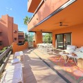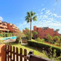 - GROUND-FLOOR APARTMENT WITH LARGE TERRACE AND TOURIST LICENSE NEAR THE SEA. Privileged location in a charming Mediterranean-style complex, just 200 m from the beach and only a 5-minute drive from Estepona and the vibrant Duquesa Marina, where you’ll find all kinds of services, restaurants, and leisure options. This beautiful ground-floor apartment stands out for its brightness, thanks to its southeast orientation, and for its magnificent newly renovated terrace, featuring glass curtains, an outdoor kitchen area, and elegant parquet flooring that adds warmth and style. The property, built with high-quality materials, offers two spacious bedrooms, carefully redesigned lighting that enhances every corner, and a practical anti-limescale system for greater comfort. From the terrace, you can enjoy pleasant views of the lush gardens, the communal pool, and a partial sea view. Located in a quiet and well-maintained community with a swimming pool and large green areas, this apartment also includes a parking space and a storage room. With a **tourist license obtained this year**, it represents an excellent opportunity both as an investment with high rental potential and as a cozy home by the sea. **A must-see — you’ll love it!**