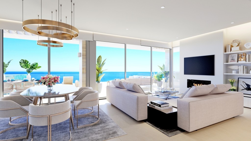 - 1 bed, 1 bath apartments from 420.000 euros 2 bed, 2 bath apartments from 620.000 euros 3 bed, 2 bath apartments from 900.000 euros 3 bed, 2 bath penthouses from 1.300.000 euros Prices excl. 10% VAT PHASE 1, 2 & 3 now sold out. Phase 4 last units off plan now selling. These cutting edge apartments span over a large site with plans to add in a wide array of amenities including sports and leisure, in addition to being only a short walk to the well-established town of La Cala de Mijas and the golden dunes its beach with many chiringuitos and ample space for families to relax and enjoy the Spanish tranquility. The town of La Cala de Mijas can provide all the necessities with ample doctors surgeries, dentists, banks and lawyers as well as supermarkets and a wide variety of boutique shops, restaurants and bars- Offering a variety of 1-4 bedroom apartments and penthouses, The Palms also boasts an expansive resort area with beach entry pools, a lap pool, indoor and outdoor gyms a kids play area and ample natural greenery in which families can spend their days exploring. The apartments benefit from high end fittings and fixtures, including open plan kitchens A-rated energy appliances as standard and have incredible views of both the mountains and the sea, from terraces due to their hilltop location. fMalaga Airport, Fuengirola, Torremolinos and Malaga city are in one direction with Marbella and Estepona only a short drive the other. Mijas has easy access to the very best of The Costa del Sol and beyond.