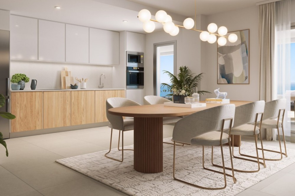 - 2 bed, 2 bath apartments from 611.000 euros 3 bed, 2 bath apartments from 695.000 euros Prices excl. 10% VAT Ready for ocupation 2025 48 apartments in la Cala de Mijas with 2 and 3 bedrooms, including garage space and utility room, swimming pool and gym in a small enclave with lovely views.