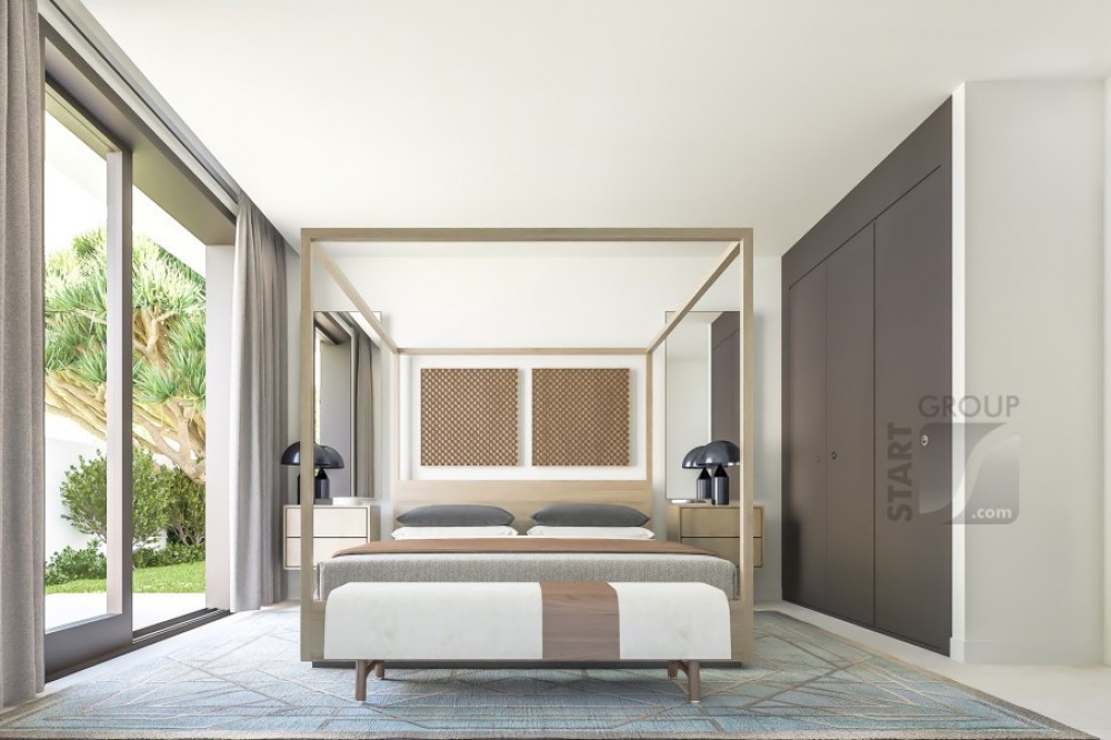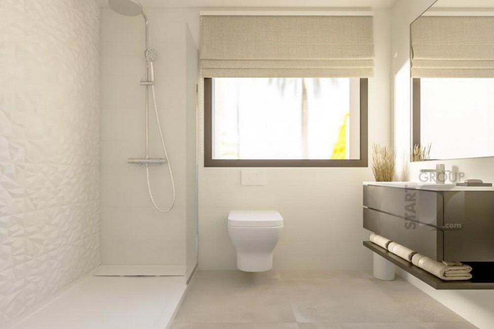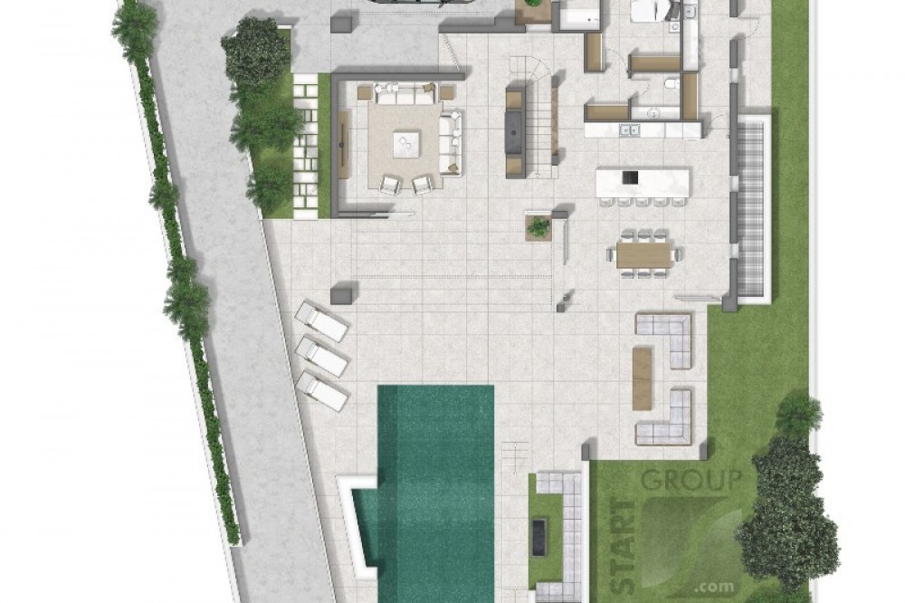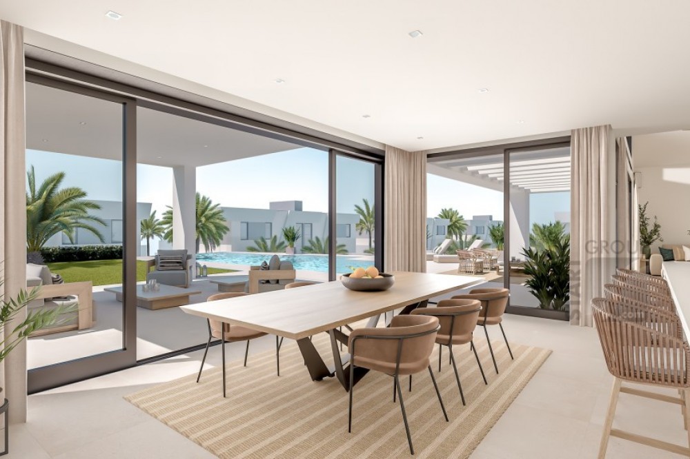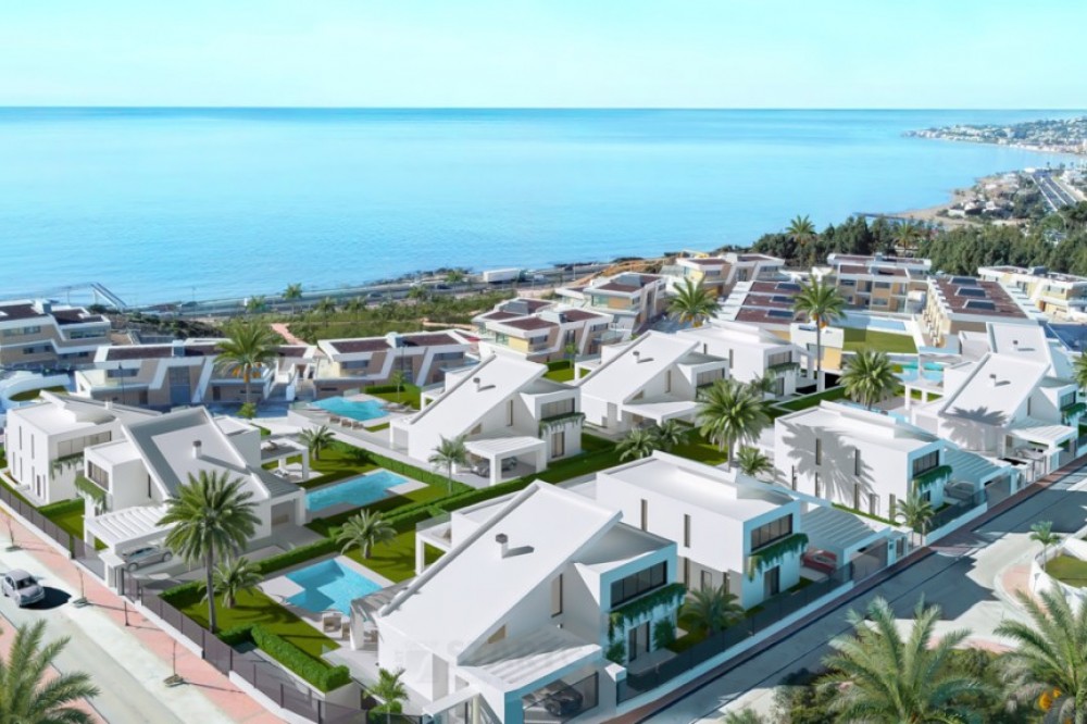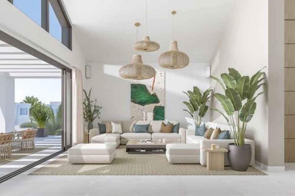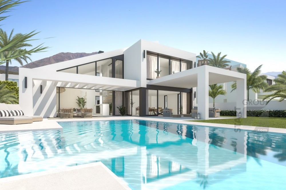- Spanish Living Group are proud to present this boutique development of 10 modern design villas, set in the privileged area of El Chaparral in Mijas Costa. El Chaparral is an exclusive urbanization of luxury villas situated in between Fuengirola and Marbella and only 20 minutes drive from Malaga airport. The excellent El Chaparral golf course is located only a few hundred meters from the villas. This 18-hole golf course is surrounded by an impressive natural pine forest. This is one of the few places in the world where you find this special variety of pine trees which forms a spectacular scenery with the golf course nestled in between and with views of the sea and the mountains. The picturesque village of La Cala de Mijas is only minutes away by car or a mere 20 minute walk along the beach. In La Cala de Mijas you can find an abundance of nice restaurants, shops, supermarkets and some great wine bars. This area has become increasingly popular in recent years thanks to the fact that the original village has maintained its Andalusian charm while new modern apartments, townhouses and villas have been built in the newer area behind the village, yet less than a kilometer from the beach. The villas all benefit from large open spaces. When entering the property, you find yourself in a grand hall with double height ceilings, leading into a bright and spacious living-room with a fireplace and vaulted ceiling. Adjacent to the living-room, you enter a separate dining area that opens to an amazing state-of-the-art kitchen featuring an impressive cooking island. The ground floor enjoys direct access to a lush Mediterranean garden with a large private swimming pool. The main outdoor terrace is partly open and partly covered with a lovely designed pergola, so you can choose between sun or shade. On the ground floor we can also find a large bedroom with en-suite bathroom as well as a separate guest bathroom and a big utility room. You reach the top floor via a beautifully designed staircase which is an iconic architectural feature in itself. The master suite accommodates a spacious bedroom with views and a private south facing terrace as well as walk-in wardrobe and, of course, a luxury en-suite bathroom. On the top level of the villa there are two more bedrooms with built-in wardrobes and a bathroom. Each property has a private gated entrance leading up to a large covered carport with space for two cars. The properties are fenced off for privacy as well as security. The exterior retaining walls are built with "Casares stones" which are huge decorative boulders that give the properties an aspect of utmost luxury - even from the outside. The buyer has the possibility to buy the villa with an optional basement. This area can include a garage for two to three cars, a guest bedroom, bathroom, storage area as well as a room that could be made into a gym, games room or even a home cinema! Villas with 4 bedrooms, 3 bathrooms, from 1420.000 euros (excl. 10% VAT)
