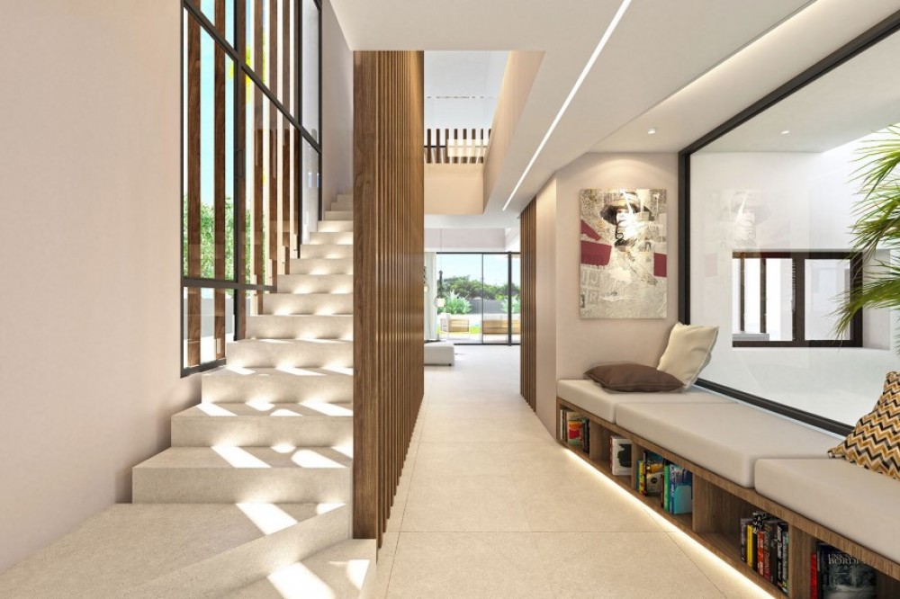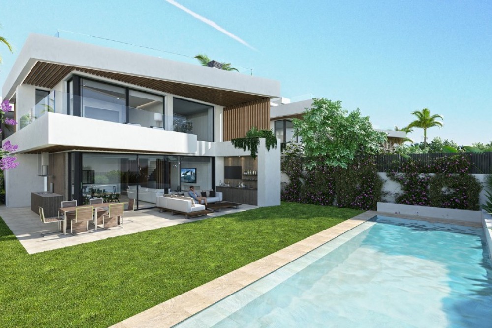 - BEACHSIDE PUERTO BANUS - This is a luxury residential project consisting of only 5 unique independent villas, located in one of the most exclusive residential areas of the Costa del Sol: just 300 meters from the beach, 1.6 km from the center of Puerto Banus and 7 km from the center of Marbella. The development features 4-bedroom, 6-bathroom single-family homes spread over 3 floors, with a private pool in the garden and a jacuzzi on the solarium. All of them will have a garage located in the basement (with space for 3 cars) and direct access to the house. A fantastic opportunity to live in the heart of the Costa del Sol!. Prices from 3.150.000 euros (excl. 10% VAT) Ready for occupation end 2024