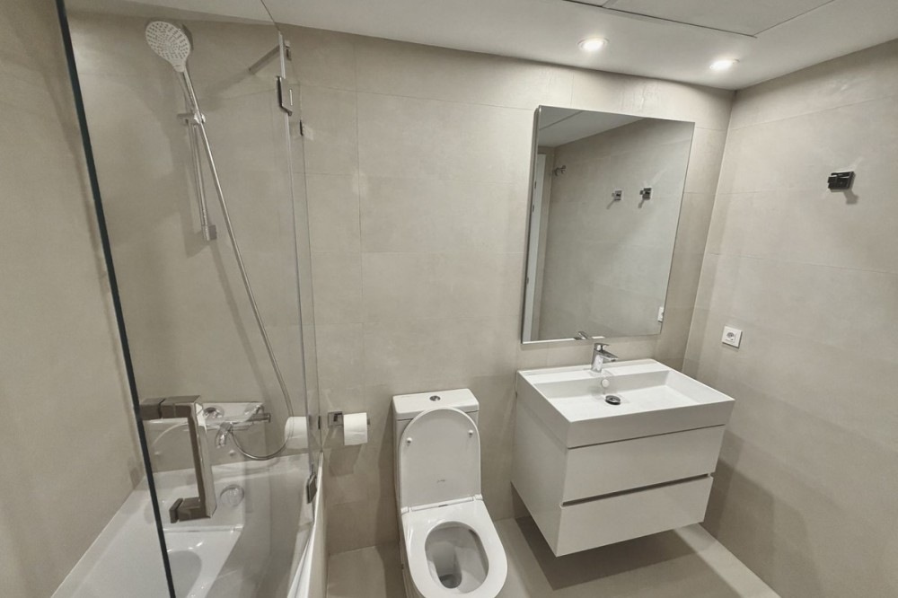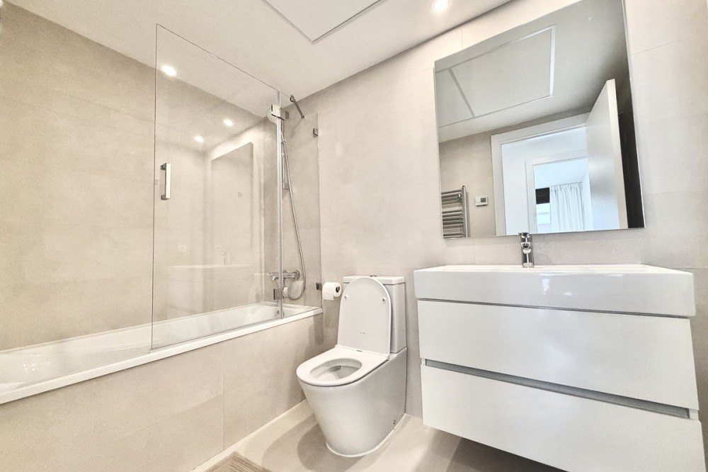 - This stylish 2-bedroom, 2-bathroom ground-floor apartment is located within the exclusive South Place development in Estepona. The open-plan living area with a modern kitchen opens onto a spacious private terrace — perfect for enjoying the Mediterranean lifestyle. Upgraded beyond the developer’s standard specifications, the apartment includes several premium features: kitchen island; all built-in appliances by Siemens; washer-dryer; additional fitted wardrobes; underfloor heating in bathrooms; bathtub in one bathroom (instead of two showers); heated towel rails. Ideally situated in a peaceful residential area with excellent access to all amenities: 10 minutes’ walk to Estepona Marina, 10 minutes’ walk to the beach, 5 minutes’ drive to the town centre. Residents can enjoy beautifully designed communal areas with adult and children’s pools, a gym, and landscaped gardens. A perfect blend of comfort, design, and location — just a short walk from the sea.