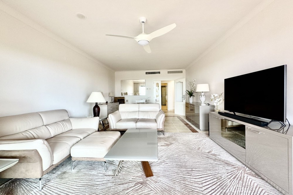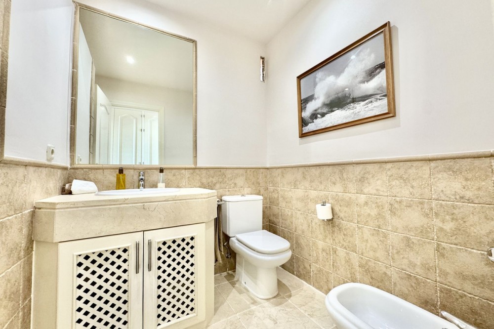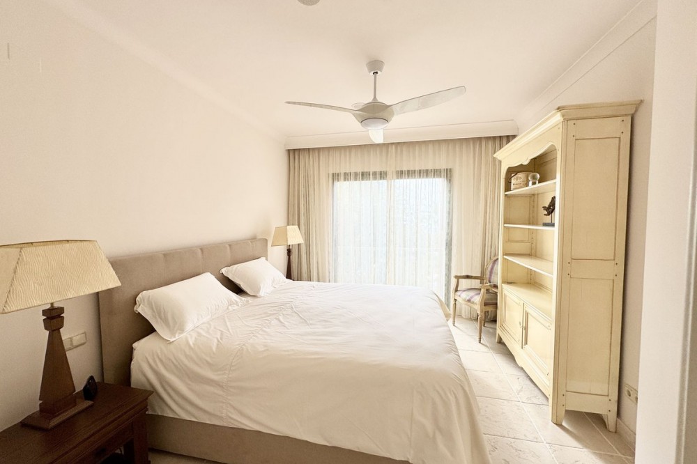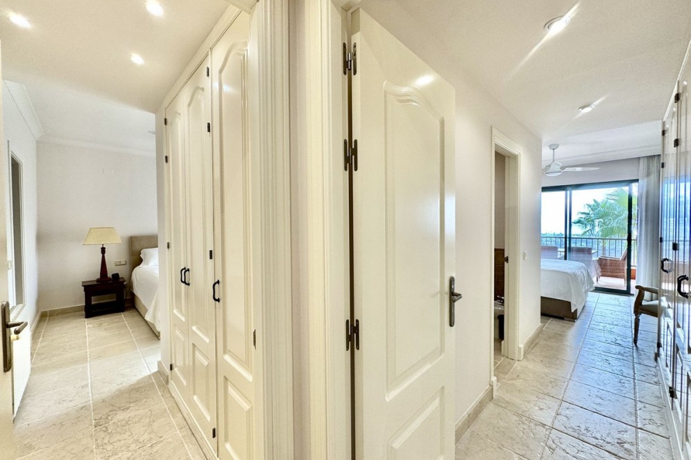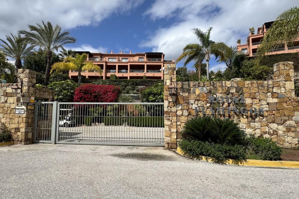 - This unique Royal Flaminos second-floor apartment is a spacious corner unit strategically positioned within the picturesque Royal Flamingos residential complex, boasting 24-hour security. Elevated in the prestigious area of Los Flamingos, it treats residents to breathtaking south-facing views and overlooks the magnificent Los Flamingos golf course. Recently refreshed with a complete repainting, new modern kitchen and new water tank, this apartment stands out amidst a limited selection of available units within the complex. Upon entry, the foyer leads into a generously sized living-dining area featuring large glazed sliding doors that open onto a spacious, covered terrace. The fully equipped kitchen includes a utility room. To the right of the foyer, a corridor connects to a third bedroom with an en-suite bathroom and access to a covered terrace. The main bedroom , located at the front of the corridor, features a large en suite bathroom and access to a private open terrace with sea and garden views. Los Flamingos stands out as one of the most esteemed and exclusive residential golf complexes along the Costa del Sol, nestled in the serene locale of the New Golden Mile, Benahavis. Boasting premier amenities, this golf resort epitomises luxury living and is home to the illustrious Villa Padierna Palace Hotel, Spain's sole six-star Spa hotel. Notably, the resort was honoured with the esteemed "World's Leading Luxury Golf Resort" accolade in December 2012 by the prestigious Worl Travel Awards. Guests of Los Flamingos Golf resort have privileed access to a private beach club, just a short drive away. Designed by the renowned Antonio Garcia Garrido, Flamingos Golf Club encompasses three 18-hole courses and an exceptional golf acedmey poised to rank among Europe's finest. The entire valley us meticulously developed under a master...