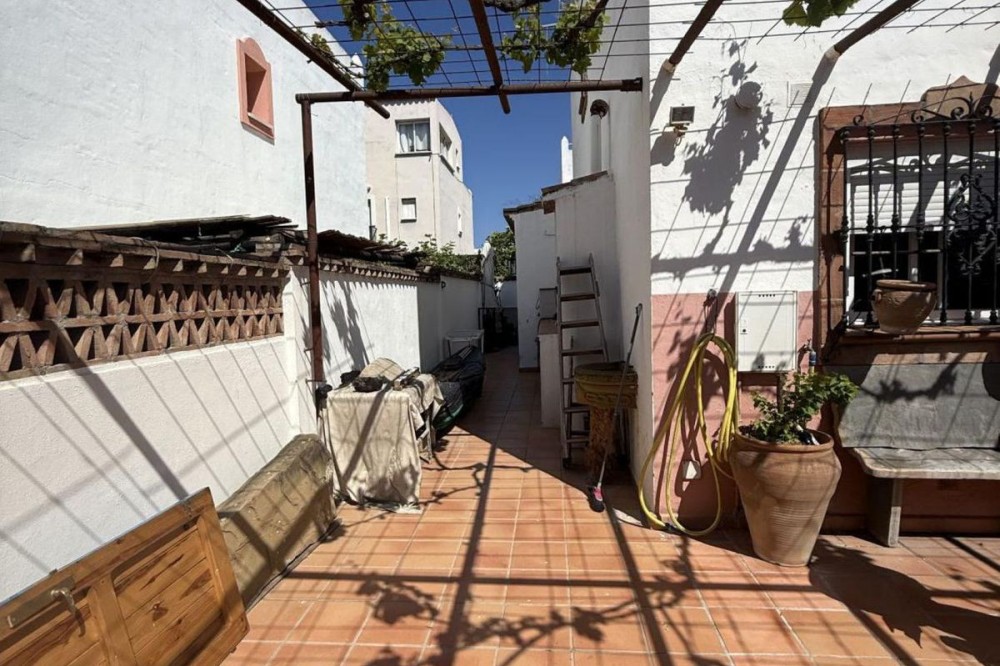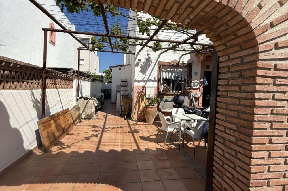 - Charming house in the heart of Estepona – Great opportunity Discover this beautiful rustic-style house located in Estepona, a quiet and well-connected area, ideal for living or as an investment. The property has 150 m², distributed over 4 floors, offering spaciousness, comfort and multiple possibilities. Layout: Basement (50 m²): ideal space for storage, gym, wine cellar or games room. Ground floor (50 m²): spacious living-dining room with kitchen and full bathroom. First floor: 3 bedrooms, one with en-suite bathroom, and another additional bathroom. Third floor: a cosy additional room, terrace and laundry area. Exterior: Porch with space for 2 cars. Facade and finishes in rustic Andalusian style, with charm and character. This property offers the perfect balance between space, location and style. Ideal for families or as a second home near the sea. A great investment opportunity in Estepona.