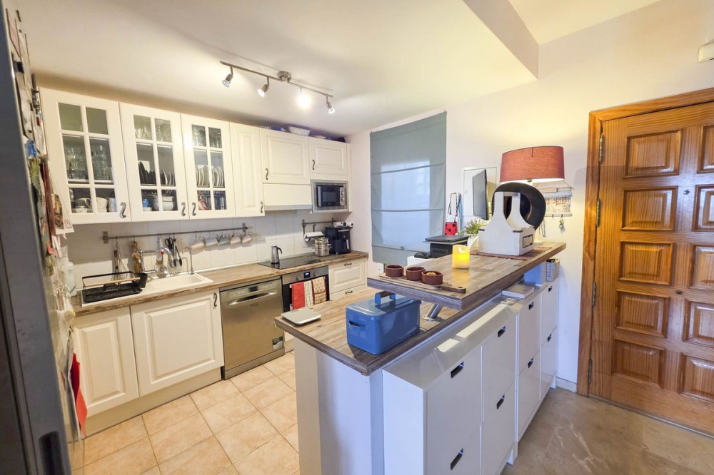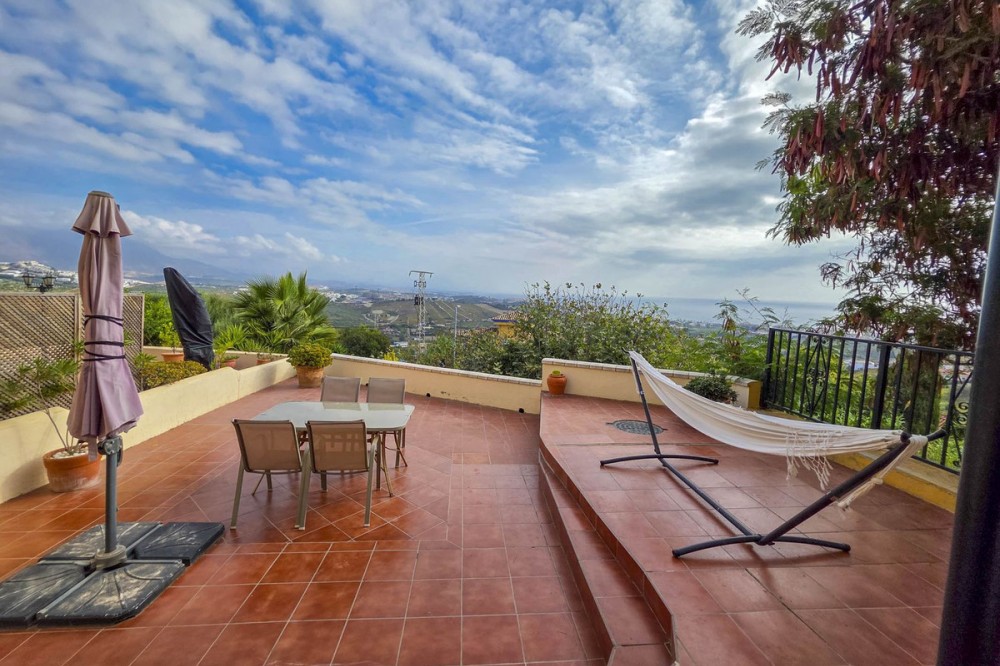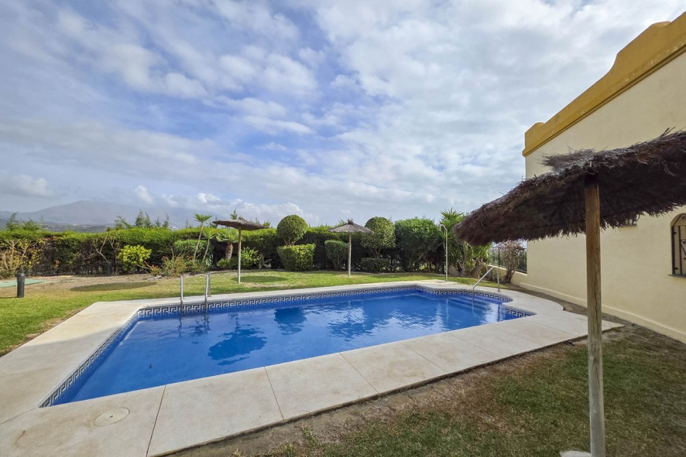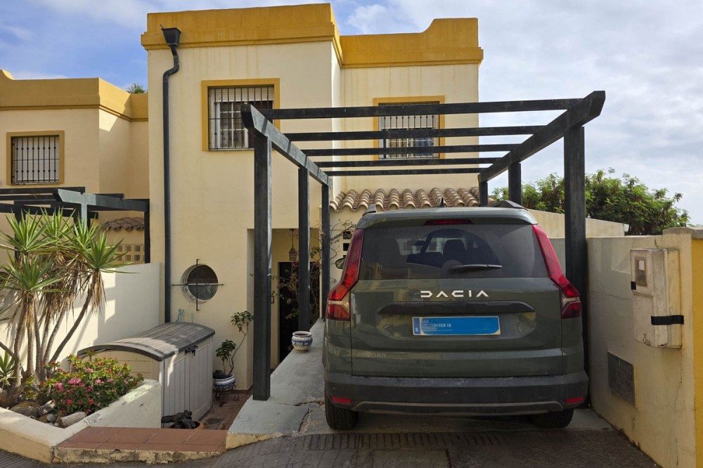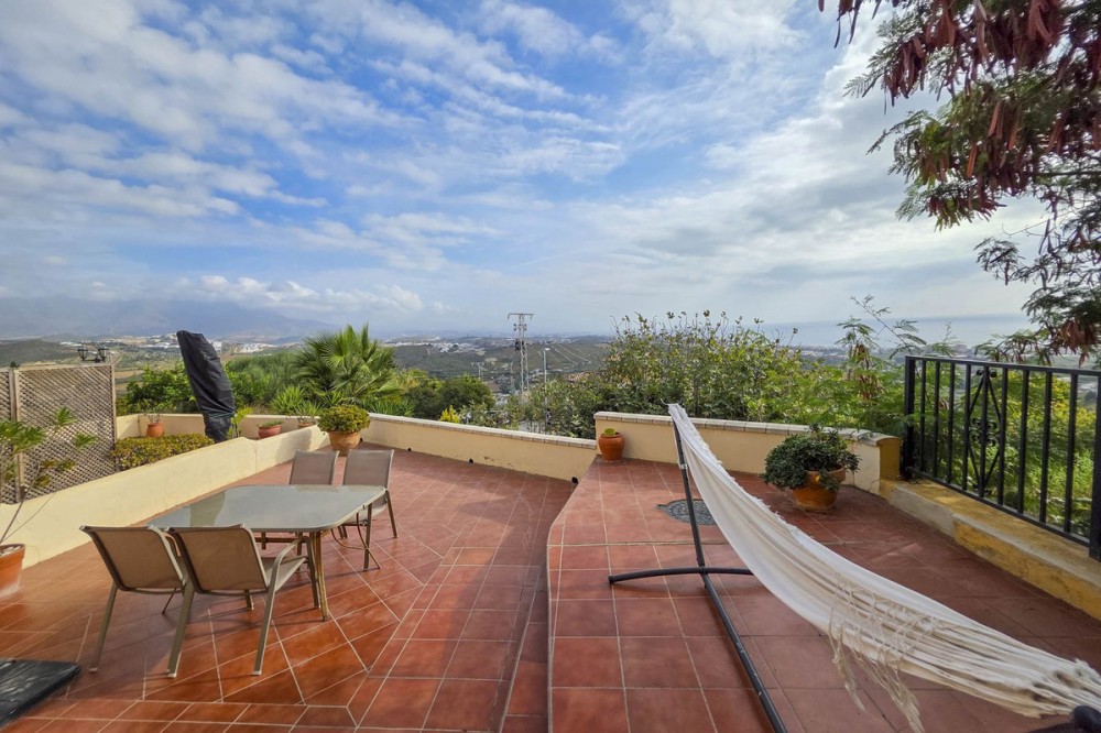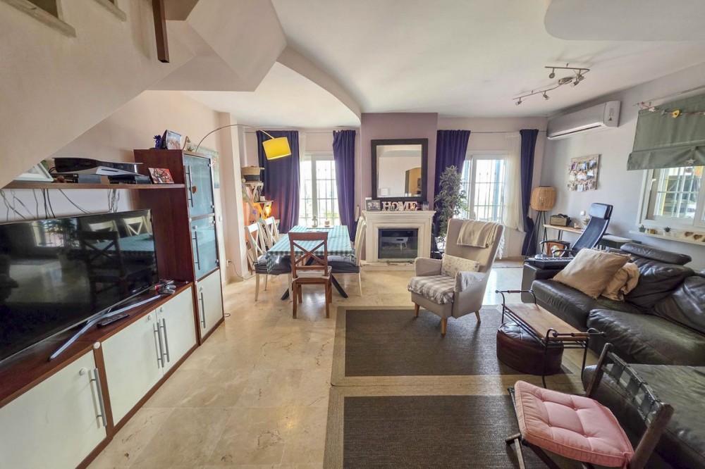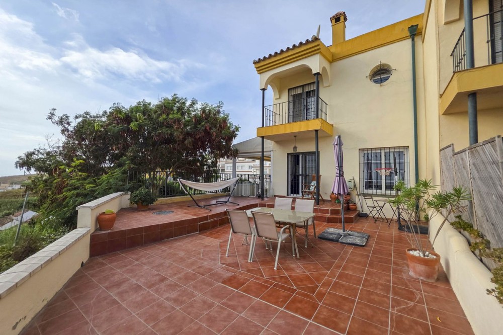 - Corner Townhouse with Panoramic Sea, Vineyard, and Mountain Views – Manilva, Costa del Sol This charming corner townhouse combines space, natural light, and spectacular views in a privileged location, close to the picturesque village of Manilva and just a few minutes from the beaches of La Duquesa. Designed to enjoy the Mediterranean lifestyle, it offers generous interior and exterior areas, perfect for year-round living or as a second home. With an interior area of 111 m² and a spacious 103 m² terrace, the property is distributed over two floors and features three bedrooms, two bathrooms, and a guest toilet. The living-dining room with fireplace opens directly onto the main terrace, creating a bright and welcoming space thanks to its east-south orientation. The open-plan kitchen is fully equipped with new appliances (oven, dishwasher, and air conditioning). Outside, a pergola with an electric roof allows for year-round use of the terrace, whether under the sun or in cooler evenings. The property also includes a private parking space, a storage room, marble floors, and is in excellent condition. Located in a peaceful, well-maintained complex, it offers a communal pool, landscaped gardens, and nearby sports facilities such as paddle and tennis courts. Its location is unbeatable: Less than 5 minutes by car from La Duquesa Marina and the beaches. 10 minutes from Estepona. 20 minutes from Sotogrande and its prestigious golf courses. 1 hour from Málaga International Airport and 35 minutes from Gibraltar Airport. Enjoying panoramic views of the sea, mountains, and vineyards, this property offers a perfect blend of rural charm and coastal convenience. An ideal home for those seeking peace, quality of life, and breathtaking views on the Costa del Sol.
