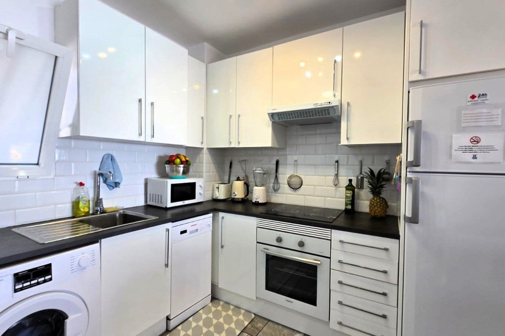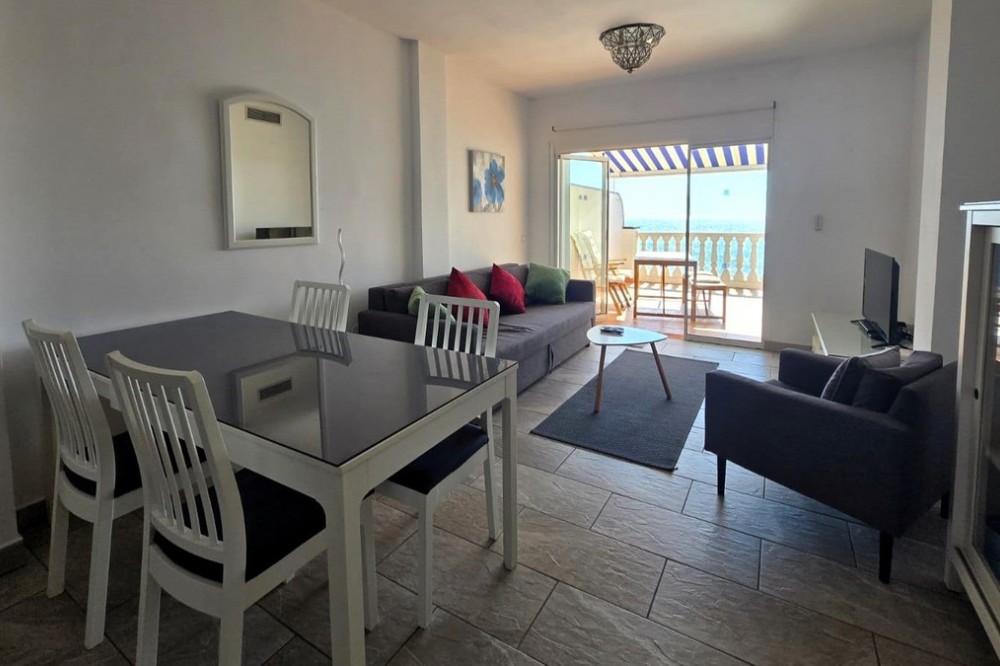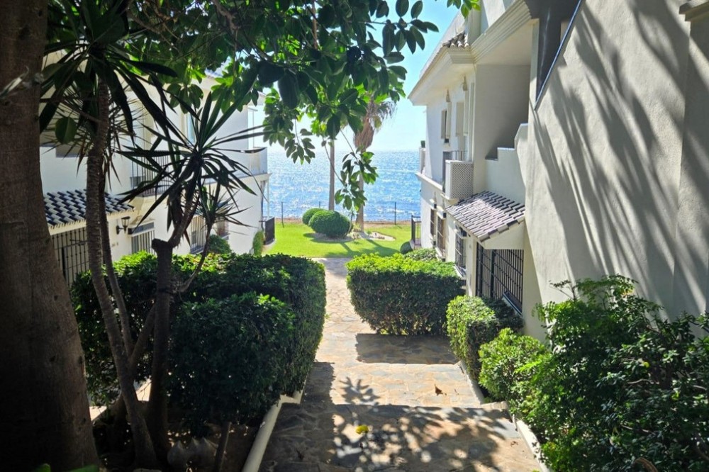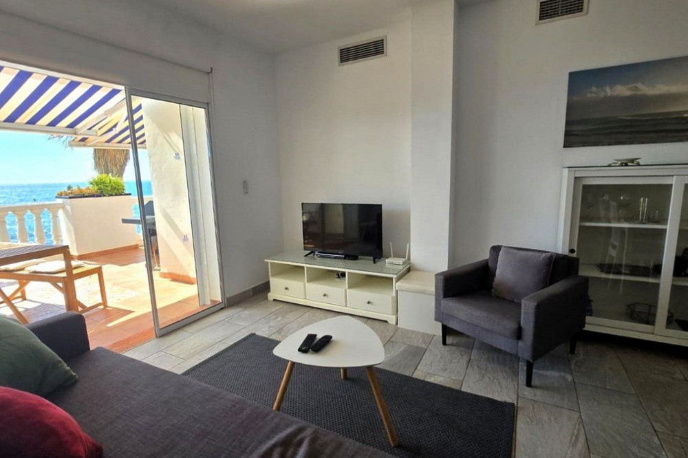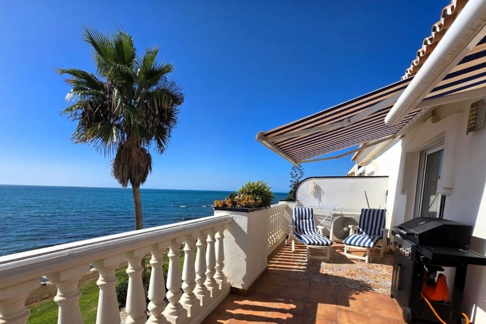 - Exceptional front-line beach property newly listed in Akardia Beach. Located in the highly desirable Maona Urbanization, we are pleased to present this beautiful two-bedroom apartment offering unobstructed views of the Mediterranean Sea and Arkadia Beach. Just a short walk to the historic lighthouse and beachfront access, this apartment benefits from its location on the beachside of the coastal motorway, ensuring a peaceful environment free from noise pollution. Nearby amenities include Cala de Mijas (3 minutes), Myarma Shopping District (3 minutes), Marbella (15 minutes), and Malaga International Airport (15 minutes). Upon entering this spacious and welcoming residence through the open-concept kitchen and living area, you will be immediately captivated by the spectacular sea views provided by the floor-to-ceiling sliding glass doors. Its south-facing orientation allows for abundant sunlight throughout the year, which can be enjoyed from both the interior and exterior balcony. The kitchen has been recently upgraded with modern cabinetry and appliances. The master bedroom features floor-to-ceiling Venetian-style double-pane windows, filling the space with natural light and offering panoramic sea views. Large enough to accommodate a king-size bed, it also includes built-in wardrobes and an en-suite bathroom. The second bathroom contains a walk in shower and separates the master bedroom from the second bedroom, with the main living area situated to the side. Opening the sliding glass doors creates an indoor-outdoor living experience, with the terrace located only 20 meters from the beach. With an area of 27 square meters, the terrace is spacious enough to accommodate a grill and dining for up to eight guests, with additional space for a lounge area. The property also includes exclusive parking for two vehicles just outside the entrance and a private storage room for convenience.