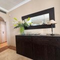 - Beautiful 3-bedroom ground floor apartment facing the sea, located in one of the best residential areas in the area. A high-quality, fully furnished flat. The living/dining room has a fireplace, is very bright and opens onto a covered glassed-in terrace of over 60m² with spectacular sea views. The kitchen is separate and also enjoys the views, as does the master bedroom with its en-suite bathroom. The property is sold with a garage and storage room included. The development is gated with surveillance cameras and night security patrols. Several swimming pools, one of which is heated, in a paradisiacal setting, right on the beachfront. If you want to live in the best of the Costa del Sol, near Estepona, Sotogrande and Marbella, don't wait any longer and request a viewing. There's nothing better than seeing this wonderful property with your own eyes.