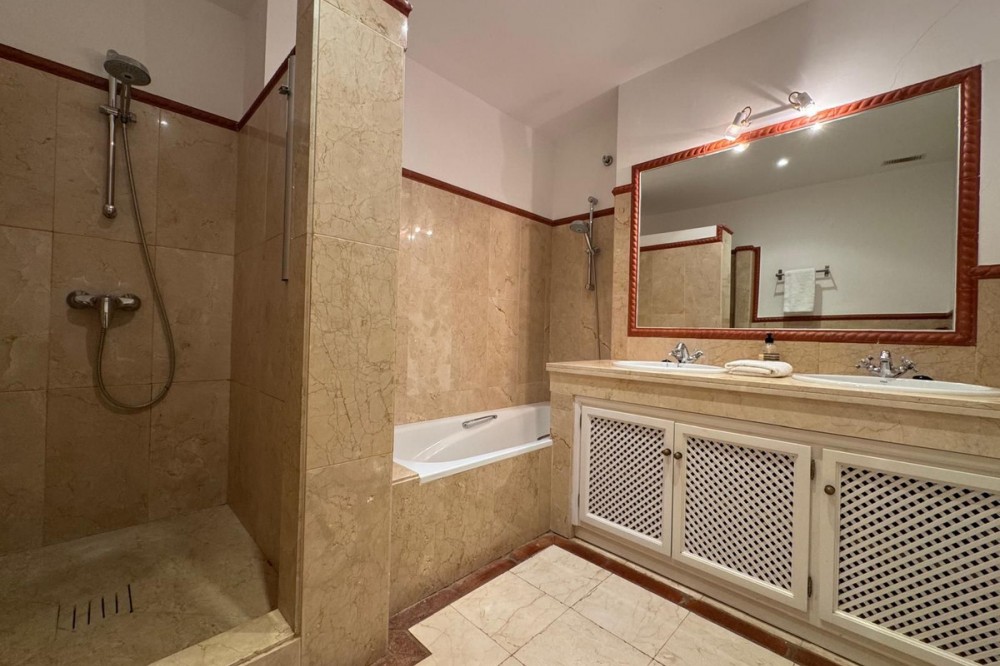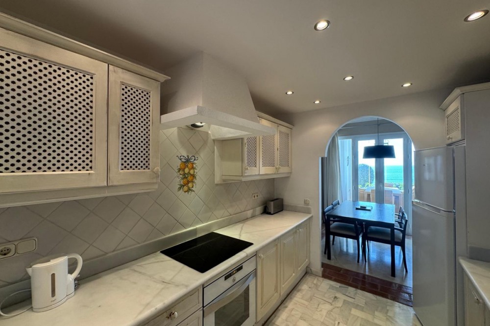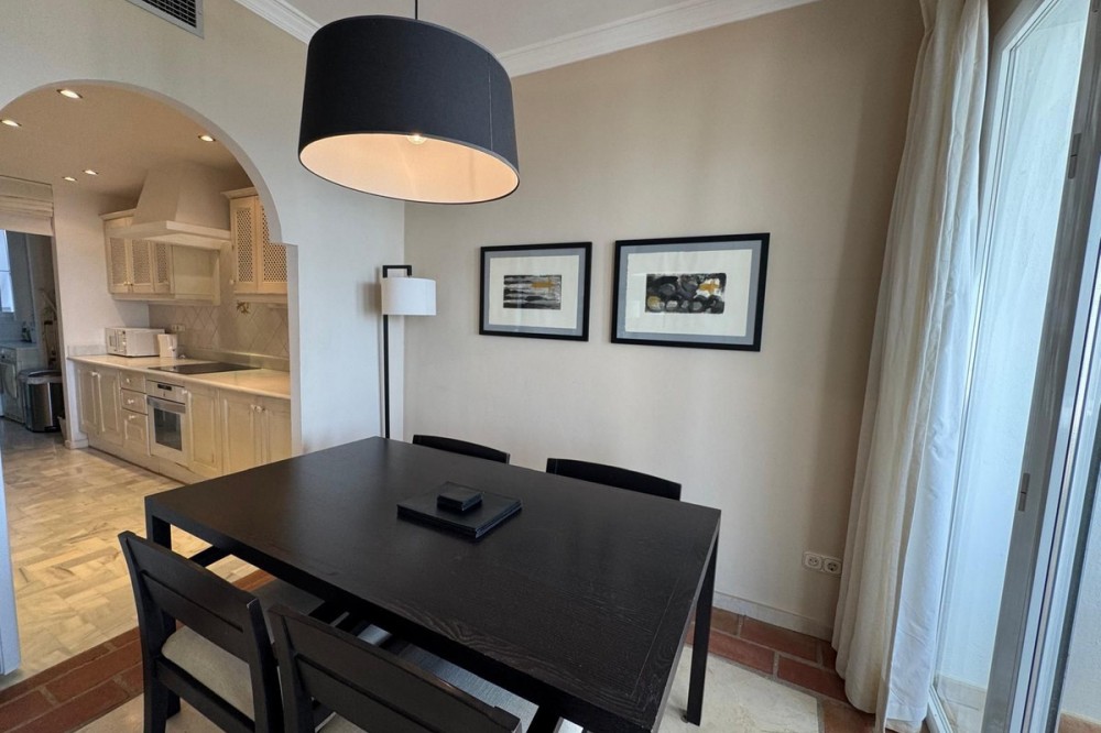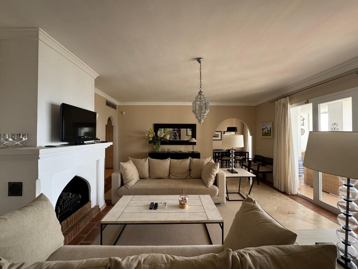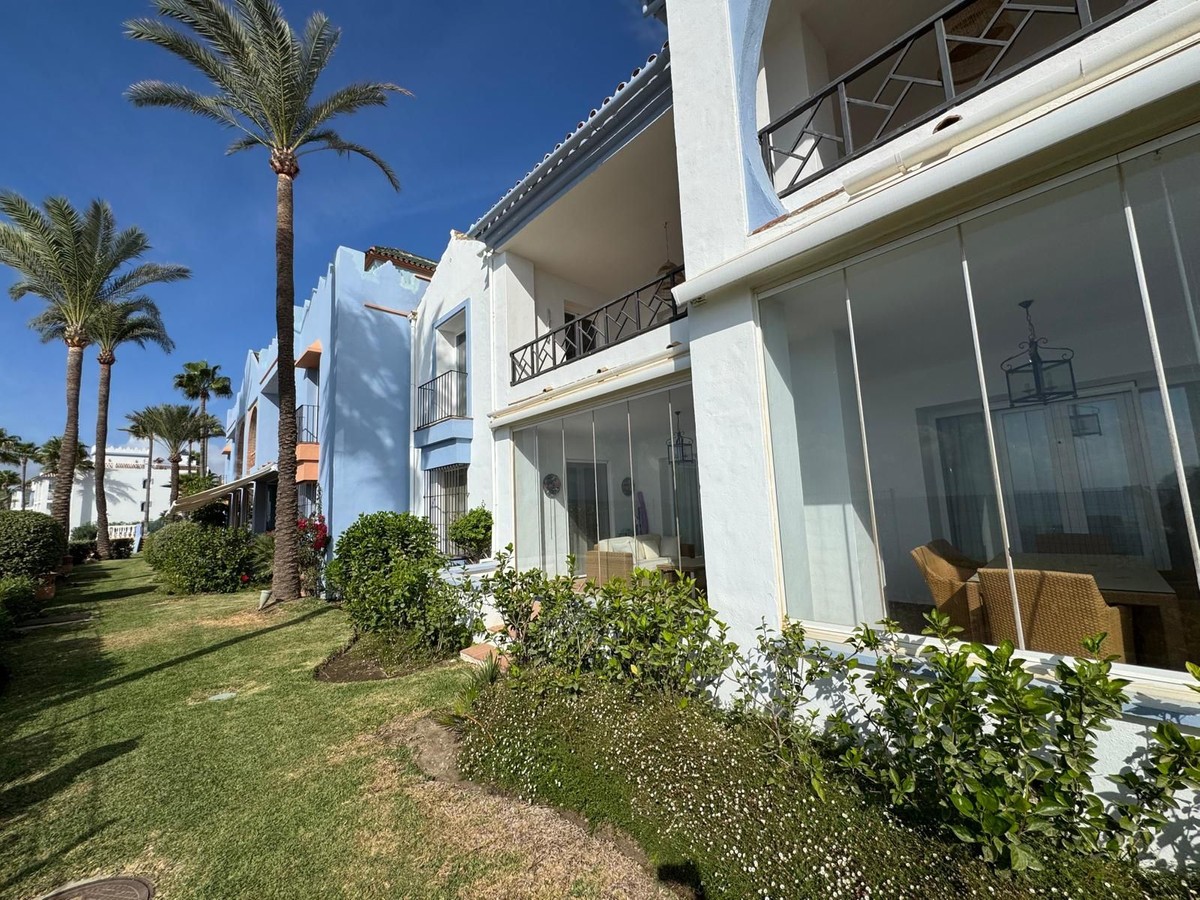 - Beautiful 3-bedroom ground floor apartment facing the sea, located in one of the best residential areas in the area. A high-quality, fully furnished flat. The living/dining room has a fireplace, is very bright and opens onto a covered glassed-in terrace of over 60m² with spectacular sea views. The kitchen is separate and also enjoys the views, as does the master bedroom with its en-suite bathroom. The property is sold with a garage and storage room included. The development is gated with surveillance cameras and night security patrols. Several swimming pools, one of which is heated, in a paradisiacal setting, right on the beachfront. If you want to live in the best of the Costa del Sol, near Estepona, Sotogrande and Marbella, don't wait any longer and request a viewing. There's nothing better than seeing this wonderful property with your own eyes.