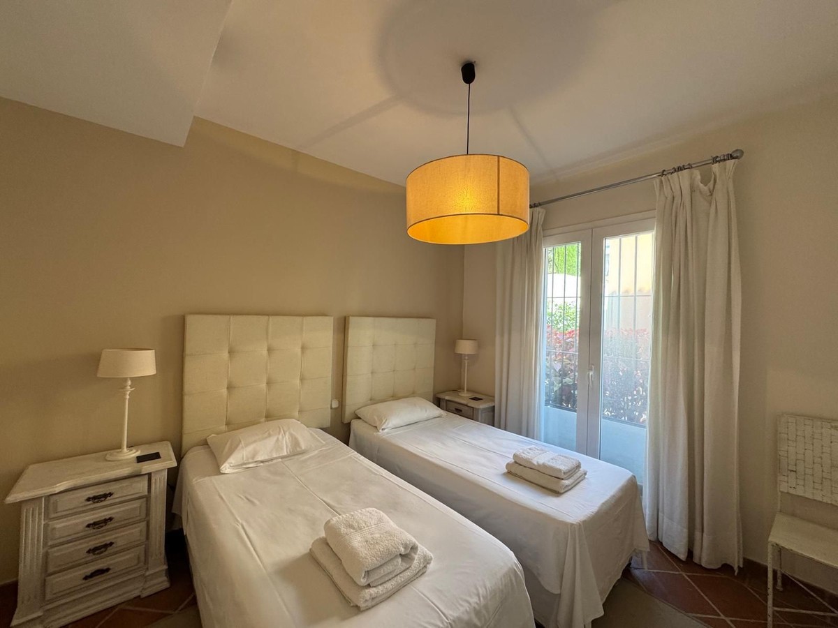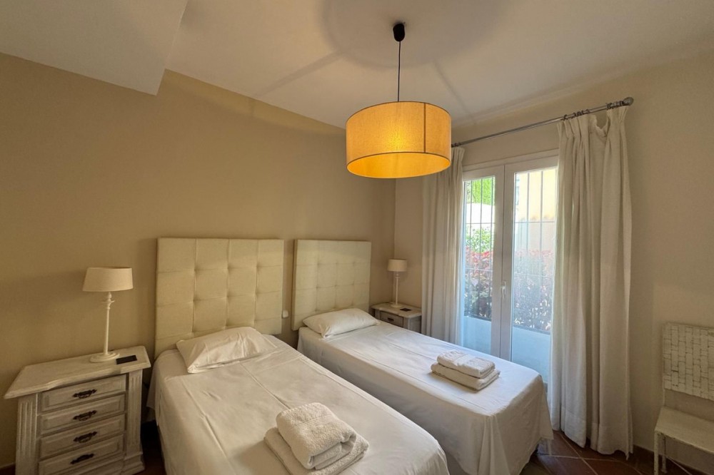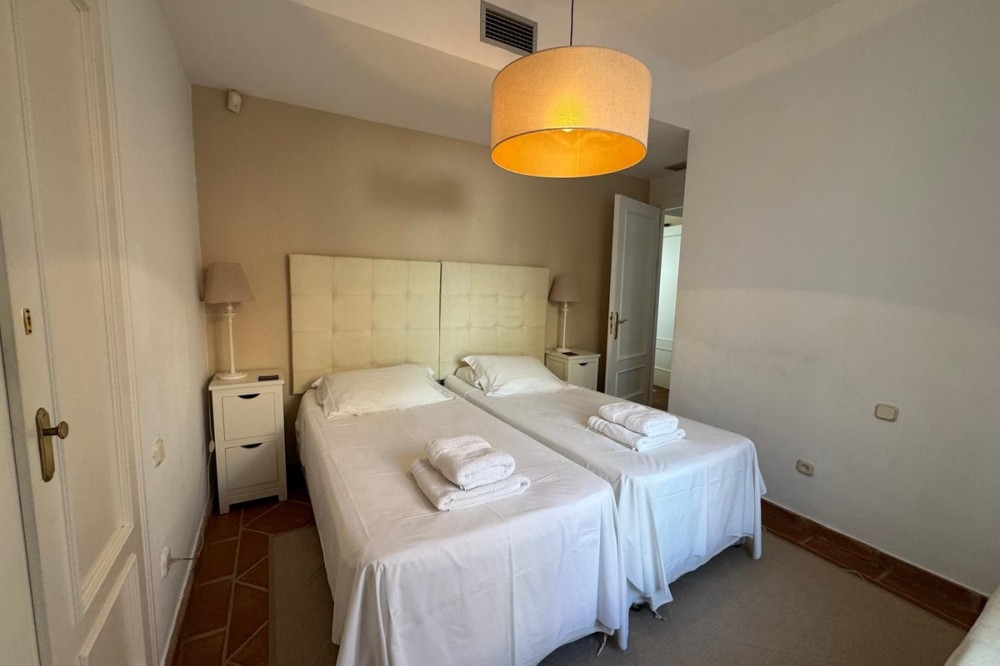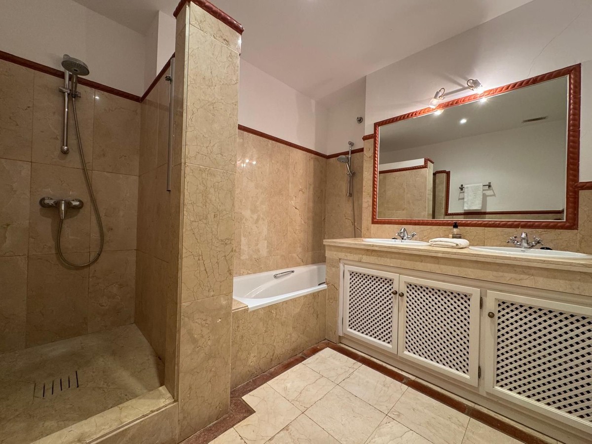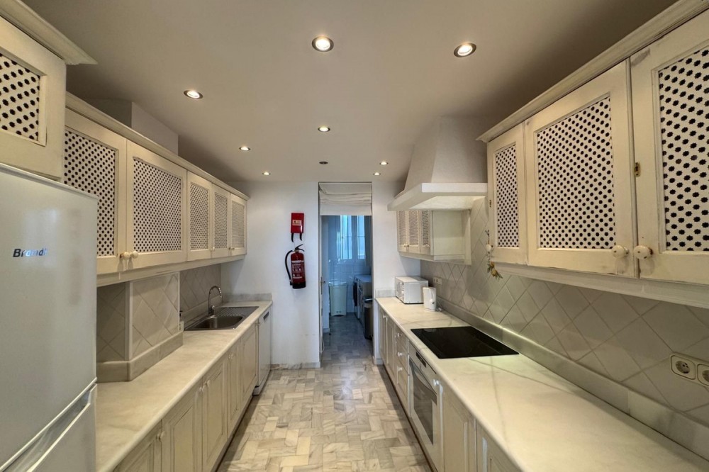 - Beautiful 3-bedroom ground floor apartment facing the sea, located in one of the best residential areas in the area. A high-quality, fully furnished flat. The living/dining room has a fireplace, is very bright and opens onto a covered glassed-in terrace of over 60m² with spectacular sea views. The kitchen is separate and also enjoys the views, as does the master bedroom with its en-suite bathroom. The property is sold with a garage and storage room included. The development is gated with surveillance cameras and night security patrols. Several swimming pools, one of which is heated, in a paradisiacal setting, right on the beachfront. If you want to live in the best of the Costa del Sol, near Estepona, Sotogrande and Marbella, don't wait any longer and request a viewing. There's nothing better than seeing this wonderful property with your own eyes.