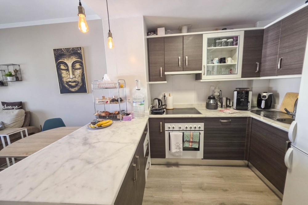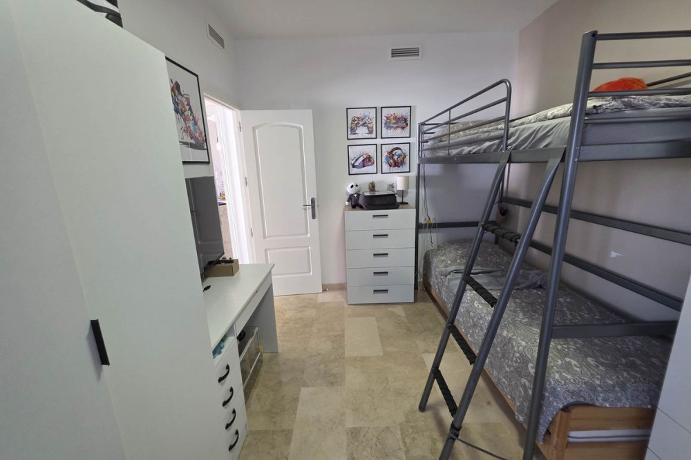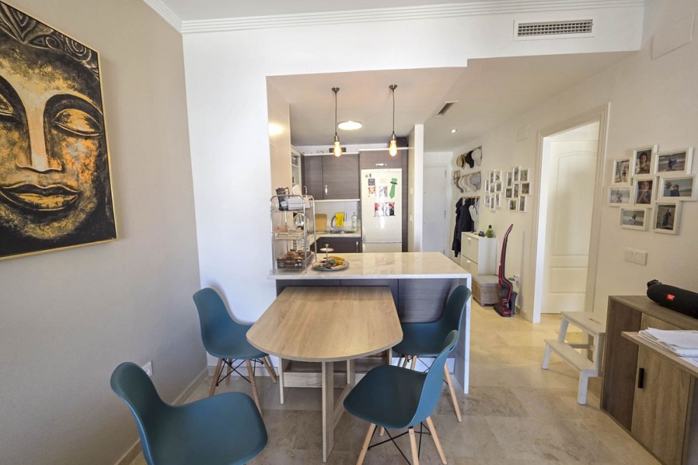 - Beautiful newly build 2-bedroom apartment with private terrace in a beautiful residential in a recently built complex in Manilva. The open style kitchen is completely fitted with appliances and gives a full view of the living room area and the terrace. It is covered and offers views to the common areas of the residential. The master bedroom is large and bright. There is a second bedroom with access to a small private terrace. Both bedrooms share a full family bathroom with bathtub. The property is sold partially furnished and enjoys finishes like marble floors throughout and central AC system. The residential is gated and includes innovative and amazing amenities that are in the process of being finished, such as: infinity edge pool, chiringuito, movie theater, dedicated co-working space, large children's splash pad, children's pool and playground, paddle, tennis and outdoor fitness court, bbq areas, concierge service and shuttle bus! The location is ideal, only a few minutes' drive away from the closest beach and amenities, less than 15 minutes away from Sotogrande Port and less than 10 from Duquesa Port. There are also many golf courses in the area and International schools.