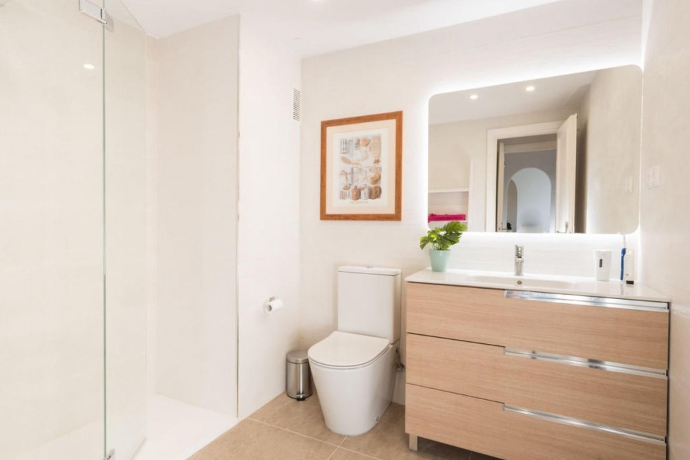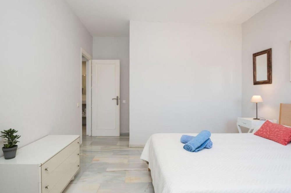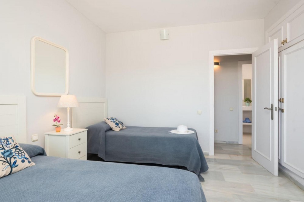 - Frontline Beach Apartment with Panoramic Sea Views in Estepona! Discover this stunning 2-bedroom, 2-bathroom frontline beach apartment offering breathtaking panoramic views of the Mediterranean and Estepona’s coastline. The property is in excellent condition, featuring renovated bathrooms and a master suite with a walk-in closet. Bright and spacious, it combines comfort and style, making it an ideal choice for both living and investment. Located in a sought-after frontline urbanization, residents enjoy direct access to the beach, a beautiful communal pool and gardens, elevator, community parking, and other great amenities. With its touristic license, this apartment is not only a dream holiday home but also an excellent rental investment! Water included in community fees. This property offers the perfect blend of sea views, comfort, and investment value — a rare find on the Costa del Sol.