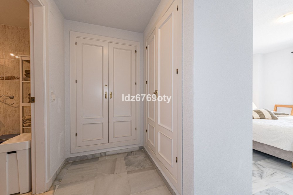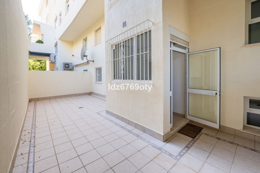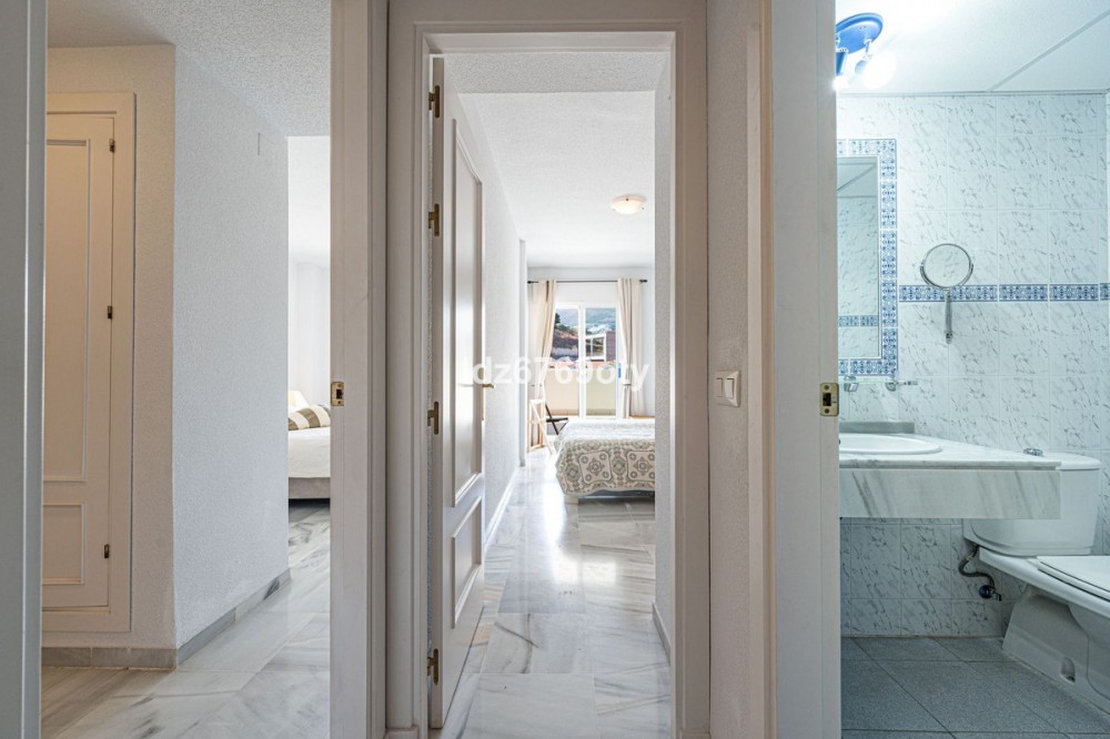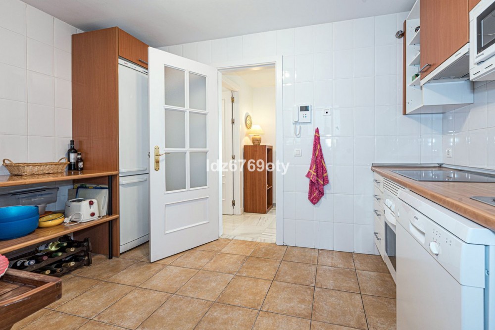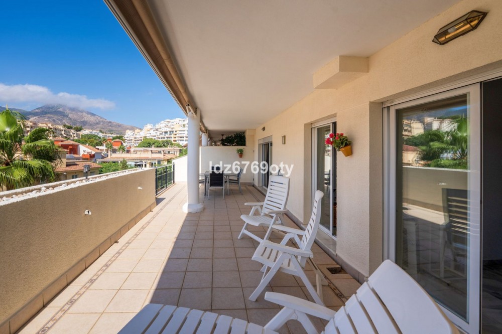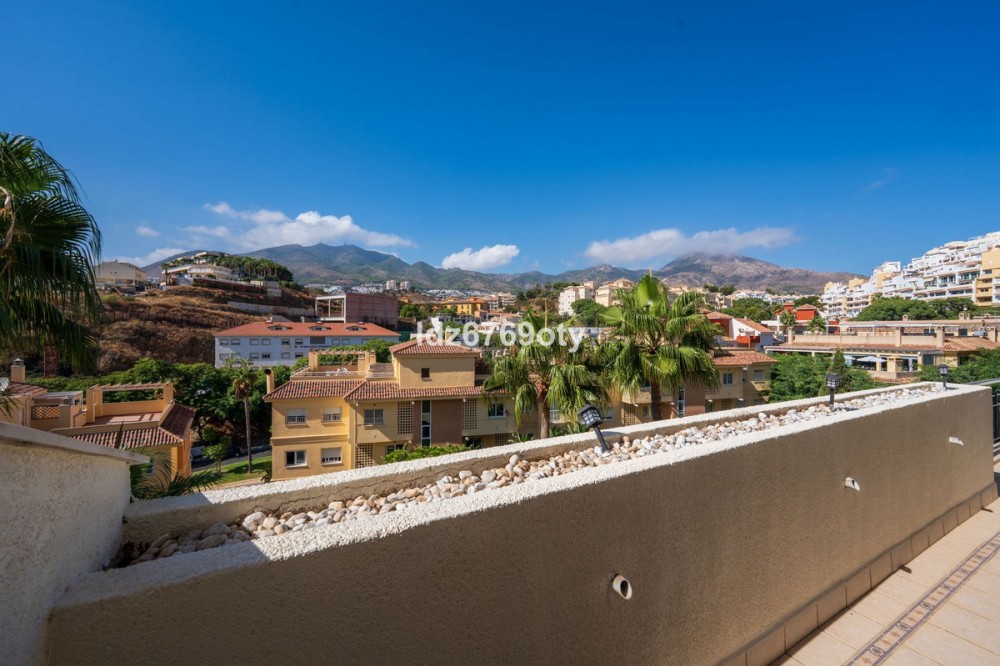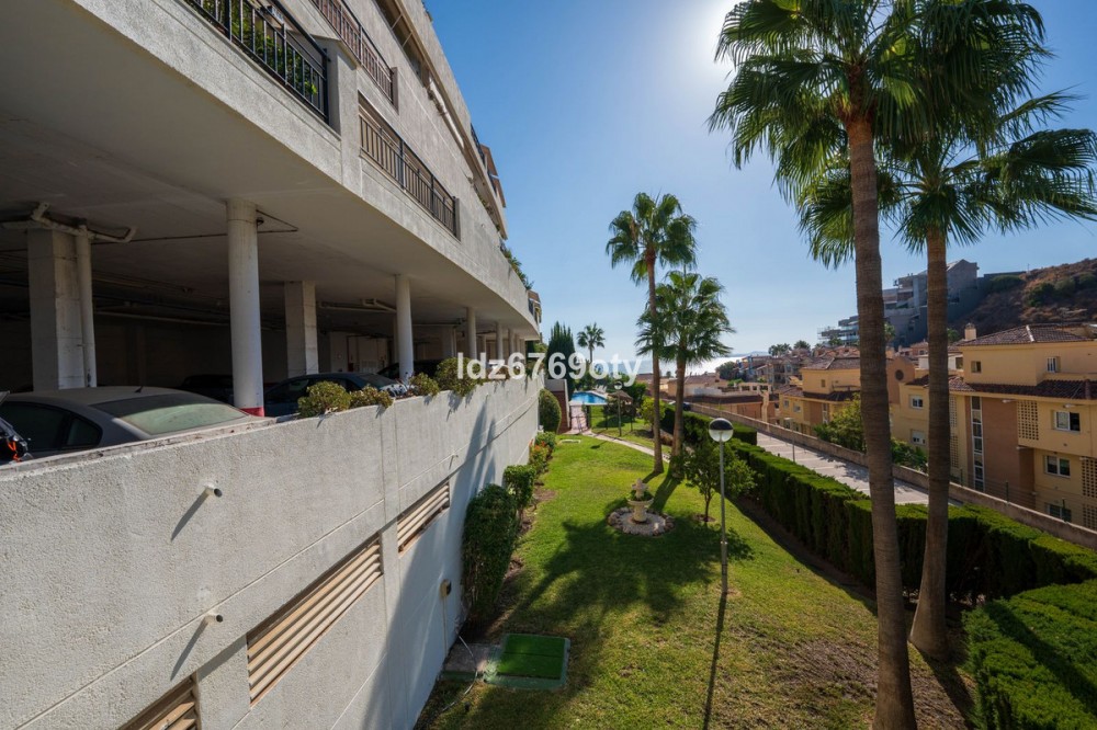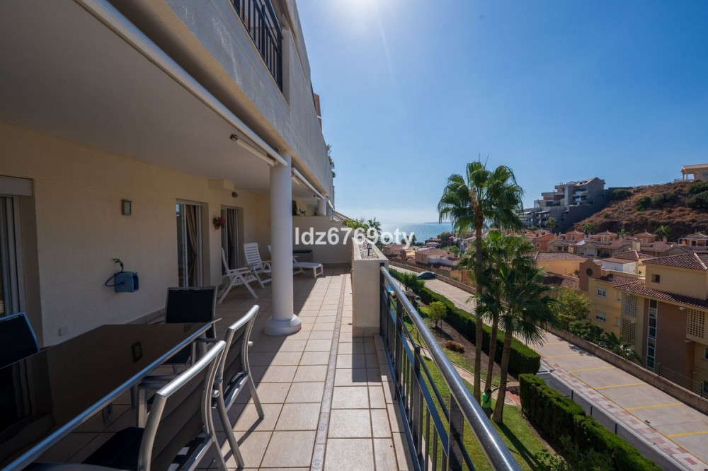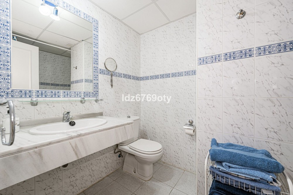 - Just 20 minutes from Malaga Airport, within walking distance of Benalmádena Costa beach, restaurants and a supermarket, and close to the famous Torrequebrada golf course, you will find this luxury urbanisation 'VistaQuebrada'. This residential complex is located on a hillside and therefore offers stunning views of the sea, the mountains and the surrounding area. Next to the resort is a small shopping centre, a Mercadona supermarket and an international school. The promenade with its many cosy 'Chiringuitos' (beach bars) and the N340 coastal road are opposite the urbanisation and therefore very easily accessible. Just a short drive from 'VistaQuebrada' are the famous villages of Benalmádena Pueblo, Arroyo de la Miel, La Carihuela, Torremolinos, Fuengirola and the famous marina of Benalmádena, “Puerto Marina”, with its many shops, restaurants and vibrant nightlife. The 3-bedroom apartment, which is in excellent condition has a living area of 120m2, faces south-west and is located on the 1st floor. Through the main entrance there is a wheelchair lift to the normal lift which takes you to both the different floors and the indoor garage. The flat is therefore easily accessible for wheelchairs. The neutrally decorated flat is fully furnished, equipped with air conditioning/heating and has fast Wi-Fi. The open and spacious kitchen offers various built-in appliances, including a dishwasher, oven, microwave, fridge/freezer and a ceramic hob. From the kitchen you have access to a private patio of 35m2 wich can be used in many ways. From the dining/living room with a cosy fireplace there is direct access to the spacious terrace of 40m2 with sea views and space for both various sun loungers and a dining area for 6 people. The spacious master bedroom has fitted wardrobes and direct access to the terrace. The en-suite bathroom has double sinks, a bath/shower and a toilet. The second bedroom has fitted wardrobes and also access to the terrace and, together with the third bedroom, shares a separate second bathroom with a bath/shower and a toilet. The flat also has a laundry area with a washing machine and a dryer. In the underground car park, there is a personal storage room and 2 private parking spaces. If you are looking for a unique and centrally located, wheelchair-friendly and spacious flat near the beach with sea views and plenty of sun, make an appointment for a viewing without obligation!