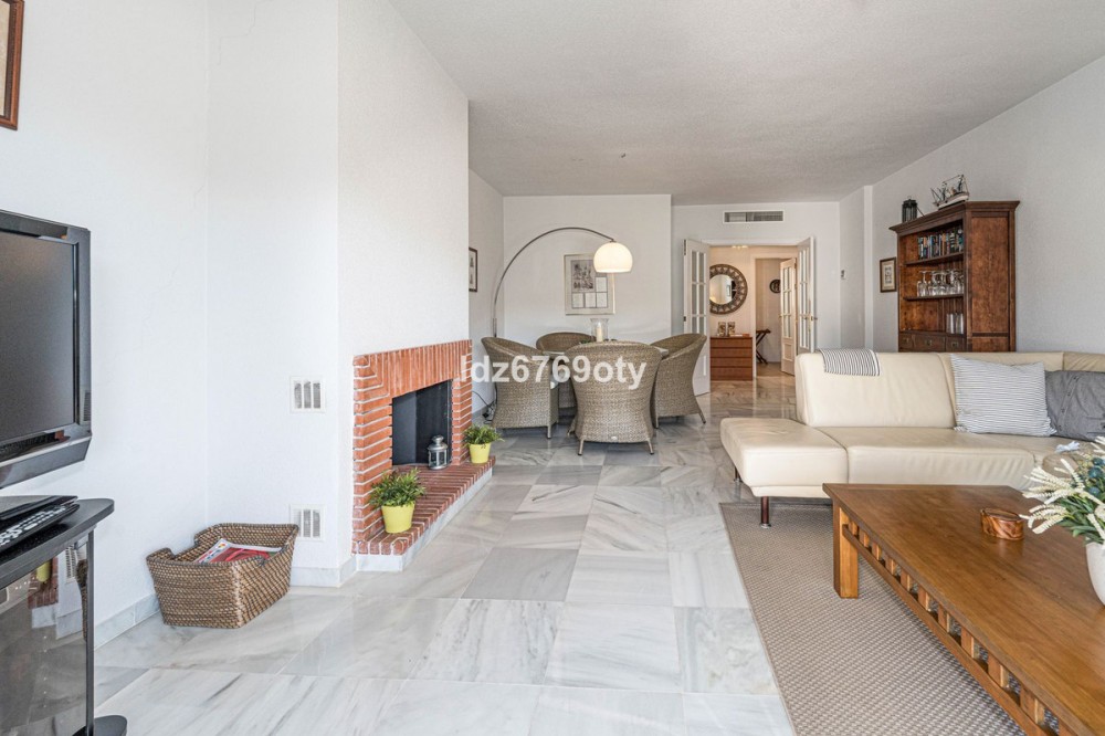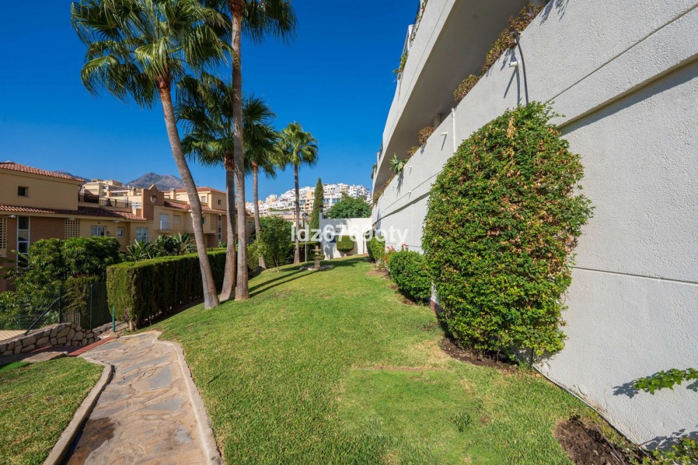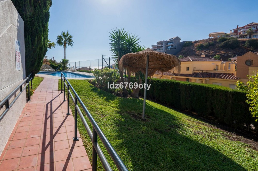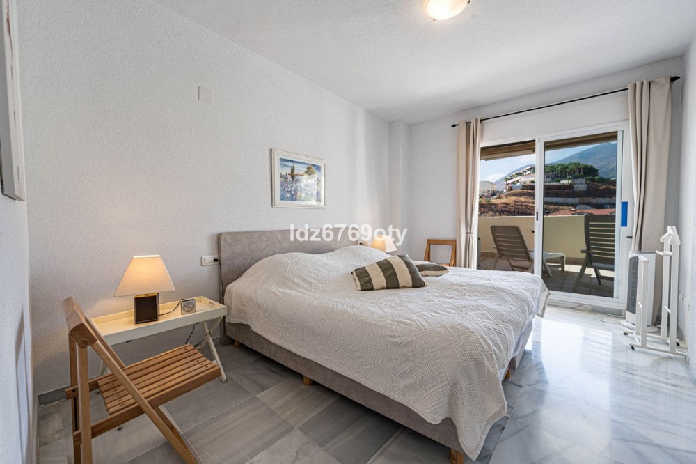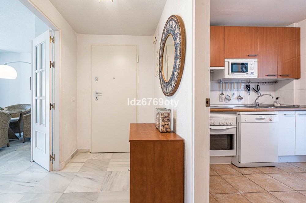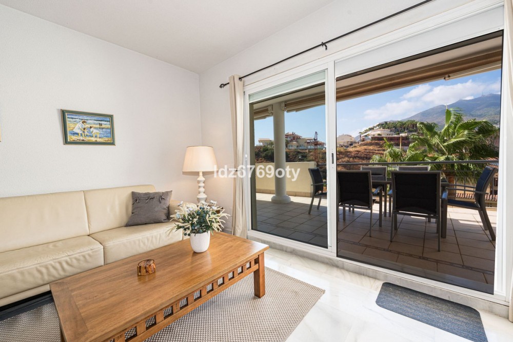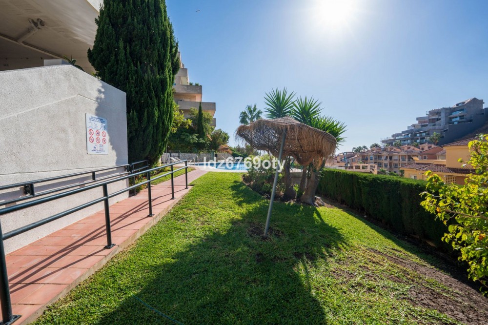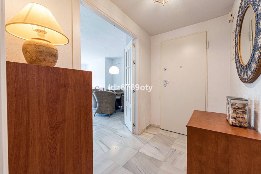 - Just 20 minutes from Malaga Airport, within walking distance of Benalmádena Costa beach, restaurants and a supermarket, and close to the famous Torrequebrada golf course, you will find this luxury urbanisation 'VistaQuebrada'. This residential complex is located on a hillside and therefore offers stunning views of the sea, the mountains and the surrounding area. Next to the resort is a small shopping centre, a Mercadona supermarket and an international school. The promenade with its many cosy 'Chiringuitos' (beach bars) and the N340 coastal road are opposite the urbanisation and therefore very easily accessible. Just a short drive from 'VistaQuebrada' are the famous villages of Benalmádena Pueblo, Arroyo de la Miel, La Carihuela, Torremolinos, Fuengirola and the famous marina of Benalmádena, “Puerto Marina”, with its many shops, restaurants and vibrant nightlife. The 3-bedroom apartment, which is in excellent condition has a living area of 120m2, faces south-west and is located on the 1st floor. Through the main entrance there is a wheelchair lift to the normal lift which takes you to both the different floors and the indoor garage. The flat is therefore easily accessible for wheelchairs. The neutrally decorated flat is fully furnished, equipped with air conditioning/heating and has fast Wi-Fi. The open and spacious kitchen offers various built-in appliances, including a dishwasher, oven, microwave, fridge/freezer and a ceramic hob. From the kitchen you have access to a private patio of 35m2 wich can be used in many ways. From the dining/living room with a cosy fireplace there is direct access to the spacious terrace of 40m2 with sea views and space for both various sun loungers and a dining area for 6 people. The spacious master bedroom has fitted wardrobes and direct access to the terrace. The en-suite bathroom has double sinks, a bath/shower and a toilet. The second bedroom has fitted wardrobes and also access to the terrace and, together with the third bedroom, shares a separate second bathroom with a bath/shower and a toilet. The flat also has a laundry area with a washing machine and a dryer. In the underground car park, there is a personal storage room and 2 private parking spaces. If you are looking for a unique and centrally located, wheelchair-friendly and spacious flat near the beach with sea views and plenty of sun, make an appointment for a viewing without obligation!