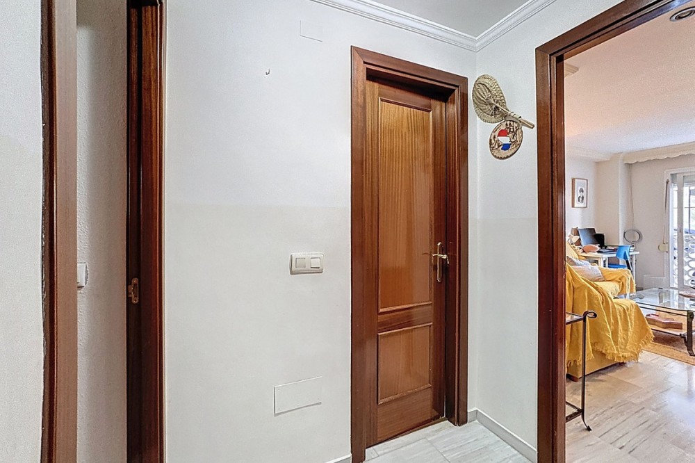 • Ground Floor Apartment with Private Patio – Central San Pedro de Alcántara Comfort, quality and an exceptional location in Edificio Arquillo II We are pleased to present this charming ground-floor apartment with 2 bedrooms and 1 bathroom, located in Edificio Arquillo II, a private residential complex with a swimming pool, gardens and spacious communal areas, right in the heart of San Pedro de Alcántara. Built in 2001, this building stands out for its solid construction, excellent maintenance and the peaceful atmosphere of a well-established community. The property offers a comfortable and functional layout, perfect for year-round living or rental investment with strong demand, requiring no immediate refurbishment: Marble flooring throughout the apartment. High-quality interior carpentry. Air conditioning installed. Security bars on all windows. Private interior patio, ideal as a laundry area or small relaxation corner (moderate natural light due to its interior orientation). The community is one of the property’s greatest assets: Communal swimming pool surrounded by landscaped green areas. Beautifully maintained gardens all year round. Spacious communal areas and bright, pleasant walkways. Secure gated building with controlled access, intercom and lift. Quiet, family-friendly environment with year-round residents and owners who value order and good coexistence. Location: Edificio Arquillo II – Central San Pedro de Alcántara Just steps from the Health Centre, supermarkets, schools, pharmacies, public transport and all kinds of shops and services. The area perfectly combines urban living with a safe and comfortable residential setting — ideal for those seeking a permanent home without needing a car. Excellent investment opportunity: Thanks to its location, quality finishes and community facilities, this property is perfect both as a main residence and as a long-term or holiday rental, guaranteeing high demand and stable returns. Main features: Ground floor | 2 Bedrooms | 1 Bathroom Private interior patio Marble flooring Quality interior carpentry Air conditioning Security bars Communal pool and gardens Well-kept and quiet community Built in 2001 Close to the health centre and all amenities A property ready to enjoy or rent out from day one. The perfect combination of location, comfort and profitability in one of San Pedro de Alcántara’s most desirable areas.