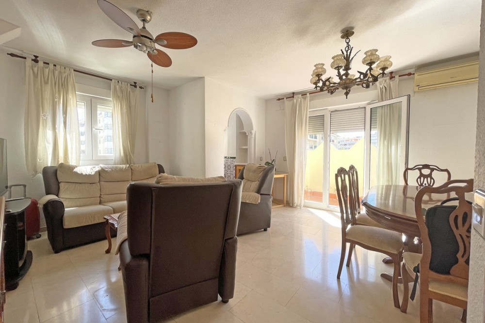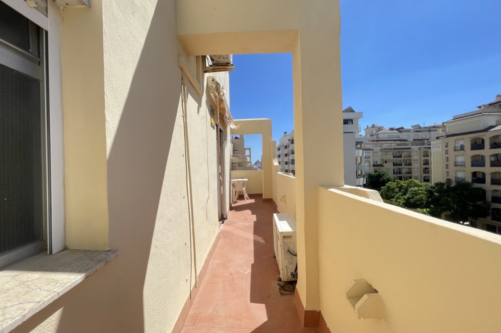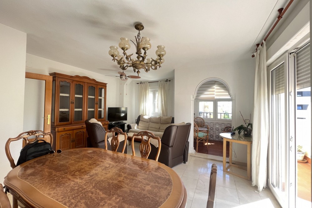 - This centrally located duplex is situated in the sought-after area of Estepona town centre, right in the heart of the city and just a few minutes from the beach. It is a spacious property with a floor area of 140 m², spread over two floors, offering everything you need for a comfortable and functional lifestyle in a prime location. The building has a lift and belongs to a gated community that guarantees maximum security, equipped with surveillance cameras and an alarm system. The duplex has three large bedrooms with fitted wardrobes and two full bathrooms. The kitchen is fully equipped and offers a separate laundry area. The property includes air conditioning for year-round comfort and has a large open terrace with urban and pool views, perfect for enjoying the Mediterranean climate. Among the common areas, the large swimming pool with a relaxation area stands out, ideal for the whole family to enjoy. The property also has a private garage, an essential feature in the town centre. Thanks to its proximity to all amenities, it is just a few steps away from shops, schools, children's play areas, public transport and the prestigious port of Estepona, offering the opportunity to enjoy a comfortable and dynamic life close to the sea.