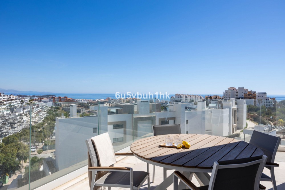 - Discover the perfect blend of modern elegance and coastal living in this spectacular 3-bedroom, 2-bathroom penthouse situated in the prestigious Las Mesas area of Estepona. Ideally located within walking distance of Estepona Marina, the charming Old Town, and the picturesque beach promenade, this residence offers an unbeatable lifestyle by the sea. Featuring 146m² of beautifully designed interior space and 150m² of sun-drenched terraces, this home is built for those who value light, space, and style. The open-plan kitchen and living area flow seamlessly onto a 57m² main terrace that connects directly with the living room and bedrooms — all enjoying stunning panoramic views over the Mediterranean and the city of Estepona. The highlight of this exceptional property is the 93m² private solarium, complete with a pergola, outdoor kitchen, and chill-out area — the ideal setting to relax, entertain, and take in the incredible sea views. This penthouse also includes two private parking spaces and a very spacious storage room, providing comfort and convenience. The exclusive Las Mesas community offers outstanding facilities, including: Adults’ and children’s swimming pools Fully equipped gym Sauna and jacuzzi Co-working area Additionally, short-term rentals are permitted, making this an excellent investment opportunity as well as a luxurious private residence. Every detail of this home has been designed to deliver an exceptional living experience — combining sophistication, sea views, and proximity to everything Estepona has to offer.