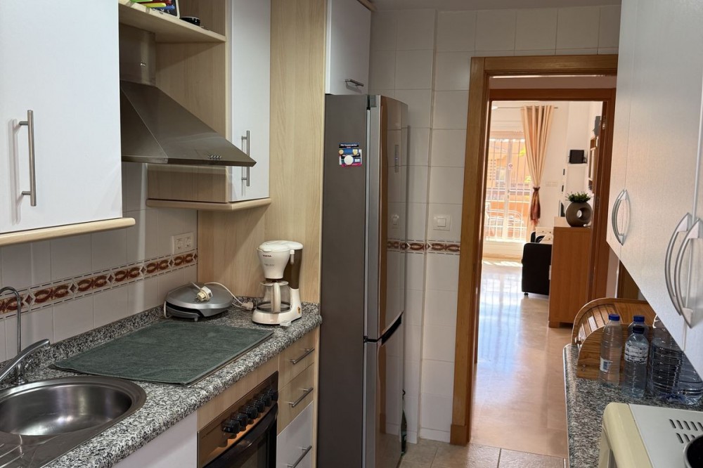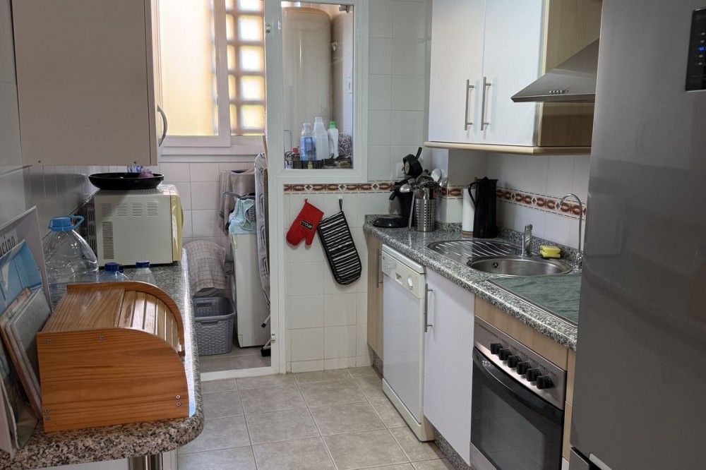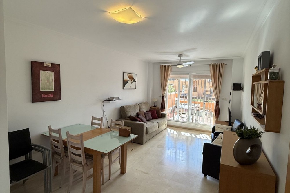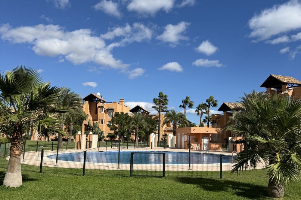 - Discover this charming ground floor apartment in the beloved residence Casares del Sol, a closed complex with beautiful gardens and multiple swimming pools just minutes from the sea and golf. Close to the prestigious Finca Cortesín Golf & Resort, one of the most exclusive golf courses in Spain. The apartment is excellently maintained and combines comfort, peace and location – ideal for those who want to live or invest on the sunny Costa del Sol. The property features a bright living room with sliding windows to the terrace and private garden, a fully equipped kitchen with separate laundry room, two bedrooms and two bathrooms, one of which is en-suite. The southwest orientation provides plenty of sun and natural light, while the communal gardens and swimming pools provide a pleasant, holiday-like atmosphere. The price includes an underground parking space and a spacious storage room, also the furniture. The residence is well maintained, fully fenced and equipped with secure access. Ground Floor Apartment, Casares Playa, Costa del Sol. 2 Bedrooms, 2 Bathrooms, Built 90 m², Terrace 22 m², large garage and storage Setting : Close To Golf, Close To Sea, Urbanisation. Orientation : South West. Condition : Good. Pool : Communal. Climate Control : Air Conditioning, Hot A/C. Views : Sea, Panoramic, Garden. Features : Covered Terrace, Lift, Fitted Wardrobes, Near Transport, Private Terrace, WiFi, Storage Room, Ensuite Bathroom, Double Glazing. Furniture : Fully Furnished. Kitchen : Fully Fitted. Garden : Communal, Landscaped. Security : Gated Complex, Electric Blinds. Parking : Underground. Utilities : Electricity, Drinkable Water. Category : Beachfront, Cheap, Investment.