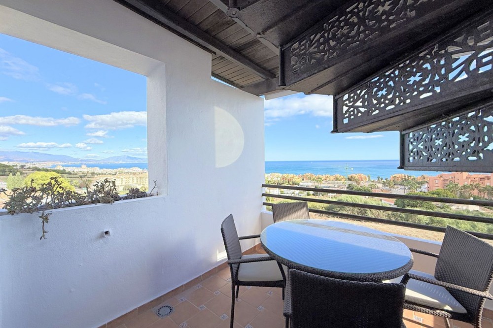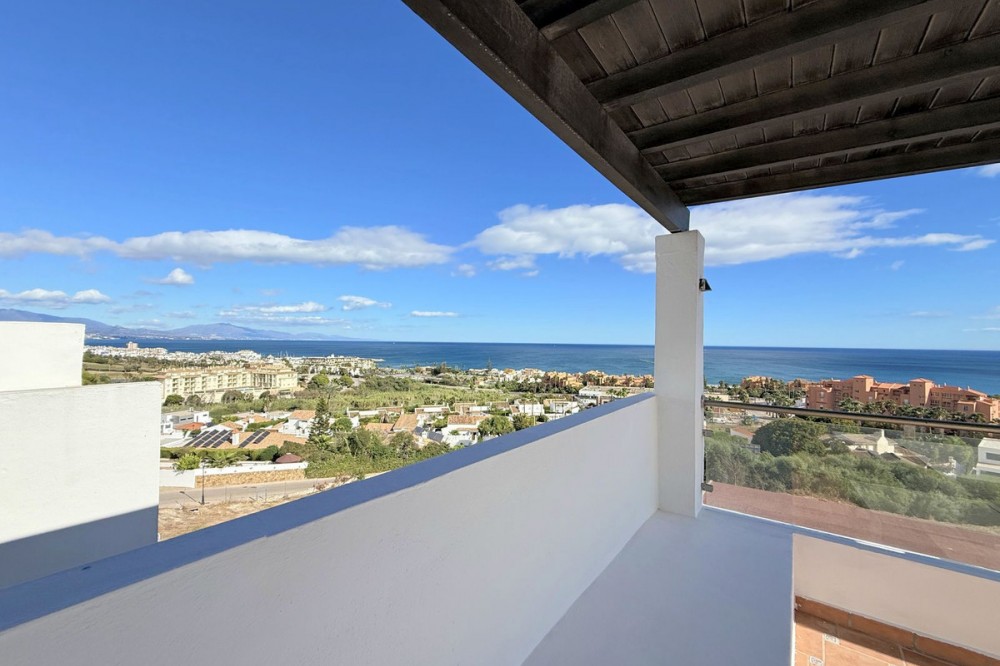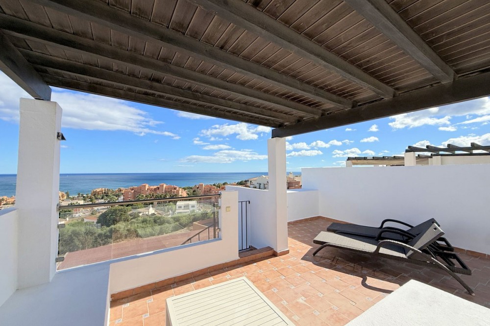 - Wonderful penthouse with solarium and panoramic sea views in La Duquesa Discover an exclusive penthouse located in Manilva Costa, just 500 meters from beautiful fine-sand beaches where you can enjoy the sea and access the charming seafront promenade leading to the renowned Puerto de La Duquesa within a few minutes on foot. The area offers a wide range of amenities, including supermarkets, restaurants, gyms and various shops, ensuring comfort throughout the year. The property boasts truly spectacular views stretching along the entire coastline. As soon as you step inside, the abundant natural light and stunning Mediterranean blue become the main feature, thanks to large windows that fill each space with brightness and a serene atmosphere. It consists of two bedrooms and two bathrooms arranged on one level, along with a lovely terrace perfect for relaxing outdoors. A charming spiral staircase leads to the private solarium, an intimate space with both a covered section and another enclosed area with versatile use, ideal for enjoying the climate year-round and admiring unforgettable sunsets over the sea. The residential complex offers excellent communal areas, including a swimming pool for adults, a children’s pool and generous landscaped zones designed for rest and enjoyment. The property also includes a parking space and a storage room, adding extra convenience. A fantastic opportunity to become your next home by the sea or a highly attractive investment on the Costa del Sol.