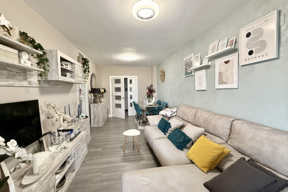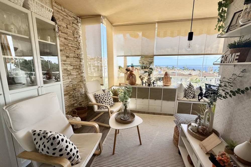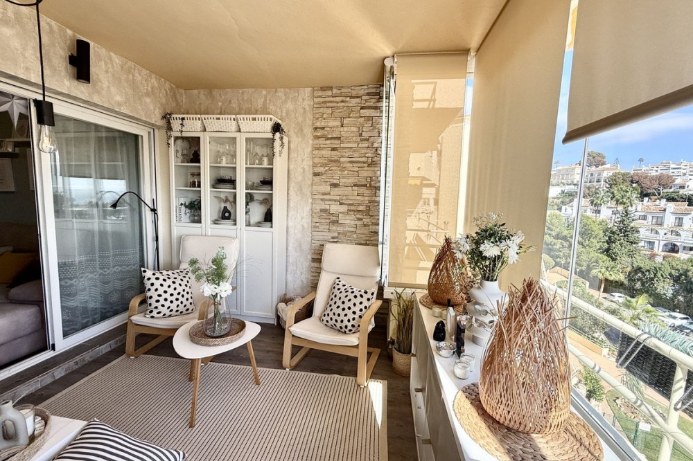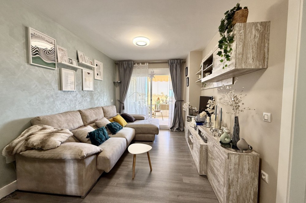 - Truly beautifully refurbished apartment, with large terrace and fabulous sea views! Located within the heart of lower Riviera del Sol, just a short walk to local shops, bars and restaurants and only a 10 minute walk to the beach and public transport, this first class property needs to be seen to appreciate its quality and charm. The apartment comprises of a hallway, lounge/dining room with patio door access to a large south¨-east facing balcony overlooking the lovely gardens and pool area then out to sea. There are 2 double bedrooms with fitted wardrobes and a bathroom plus of course a modern fully fitted kitchen. In addition the property has a storeroom accessed via stairs or lift. The communal areas of the building are immaculately kept as are the gardens, which comprise of lawns, subtropical trees and plants and, of course, the fabulous swimming pool and separate pool for small children. The apartment has hot and cold air-conditioning throughout and the furniture is optional. For security, the community has 24 hour CCTV cameras. Perfect for holidays or all year round living. Also very reasonable community fees at just 83 euros per month.
