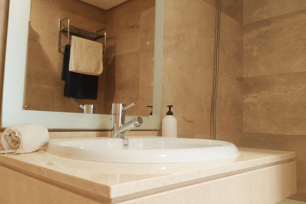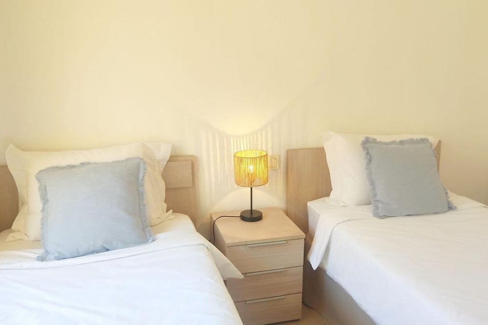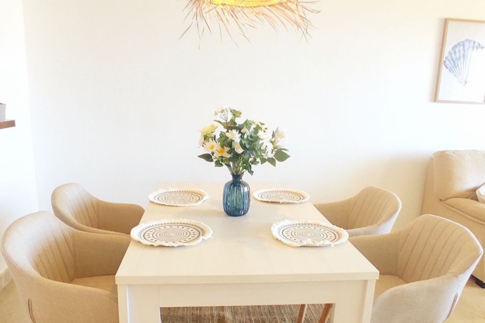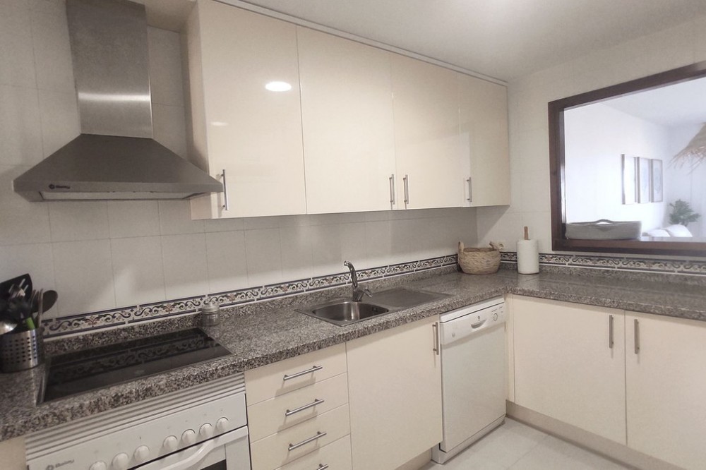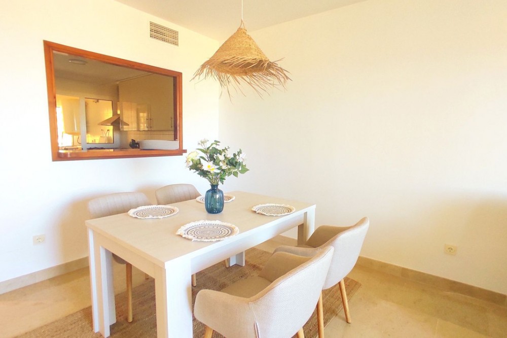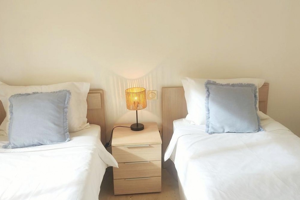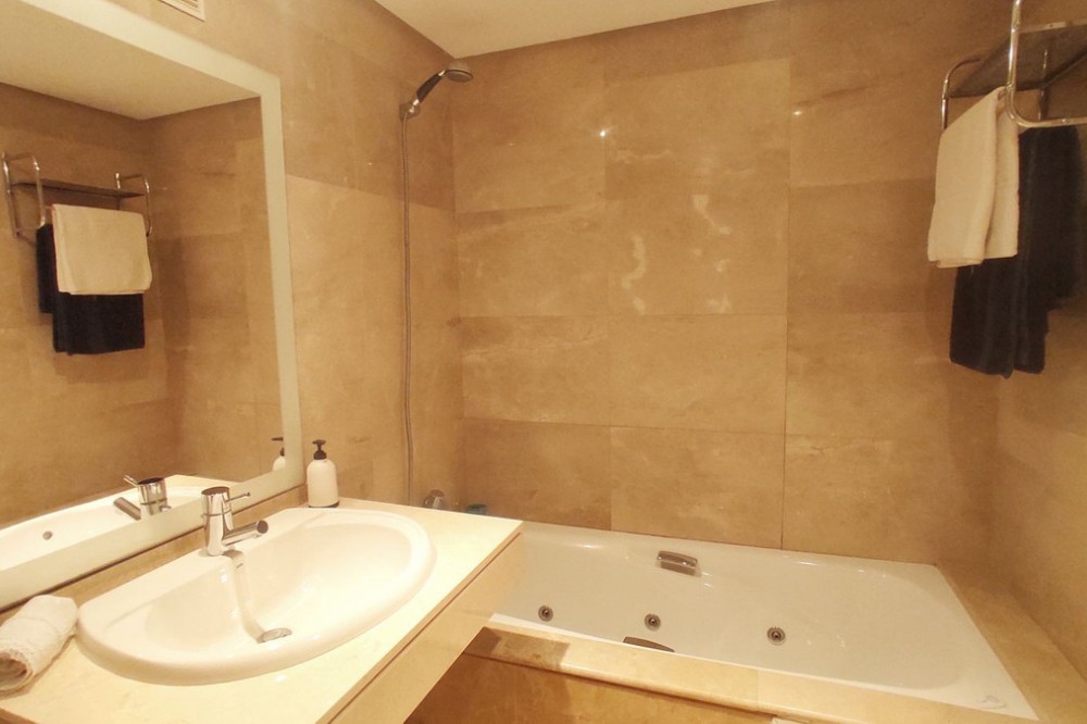 - Luxury 2-Bedroom Apartment Near the Picturesque Port of La Duquesa Located just 2.2 km from the charming Port of La Duquesa, the most picturesque and inviting marina on the Costa del Sol, known for its long sandy beaches and outstanding seaside restaurants, this impeccably renovated apartment offers the perfect blend of comfort, style, and Mediterranean living. Set within one of the best-built and most prestigious complexes in the entire Duquesa area, the residence enjoys 24-hour security, beautifully maintained communal gardens, and a peaceful, exclusive atmosphere. The apartment features two spacious bedrooms and two bathrooms, including a large master suite with an ensuite bathroom. Both bathrooms are finished with elegant beige marble tiles, which also extend throughout the apartment, giving it a refined and timeless appeal. Decorated in a Scandinavian style with delicate beach-inspired accents, the home feels bright, fresh, and serene. The open-plan living area opens onto a private terrace offering partial sea views and lovely mountain vistas, overlooking a large communal pool and a separate children’s pool—perfect for family enjoyment or quiet relaxation. Additional features include a large storage room and underground parking space, ensuring both convenience and security. The apartment is sold fully furnished, exactly as shown in the pictures, ready for immediate occupancy. Ideally located, the property is less than an hour’s drive from Gibraltar and only 14 km from the exclusive resort of Sotogrande, offering easy access to some of the region’s finest golf courses, marinas, and leisure facilities. With its exceptional build quality, recent renovations, and prime location near La Duquesa’s enchanting marina, this apartment represents one of the best opportunities for a sophisticated Mediterranean lifestyle—whether as a holiday retreat, investment, or permanent residence.