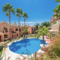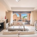 - Immaculate Three-Bedroom Townhouse with Sea Views | Estepona This beautifully presented three-bedroom townhouse is located within one of Estepona’s most desirable gated communities, offering a perfect blend of style, space, and coastal living. Presented in show-home condition, the property is tastefully furnished and finished to an exceptional standard throughout. A striking double-height entrance hall creates an immediate sense of scale, leading to a guest cloakroom, a fully fitted contemporary kitchen, and a bright open-plan living and dining area. Floor-to-ceiling glass doors open to an expansive covered terrace, ideal for year-round relaxation and entertaining while overlooking the manicured gardens and out towards the sea. Upstairs, the home offers three generous double bedrooms and three bathrooms. The principal suite features a private terrace with partial sea views, while an optional internal staircase can provide access to a rooftop terrace of approximately 60m²—perfect for enjoying panoramic sea, mountain, and golf vistas. A premium bio-climatic pergola is available for purchase to complete this spectacular rooftop retreat. The lower level includes a spacious private double garage with direct internal access. The community itself is secure, tranquil, and perfectly located—just 1.2 km (a 16-minute walk) from supermarkets and amenities, and 1.5 km (a 19-minute walk) from the beach. A truly exceptional home offering space, elegance, and convenience in one of Estepona’s most sought-after residential settings—an absolute must-view property.