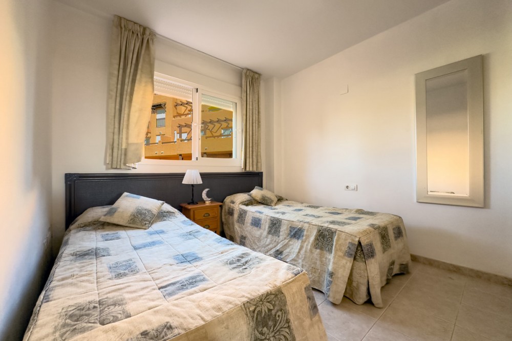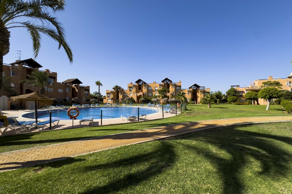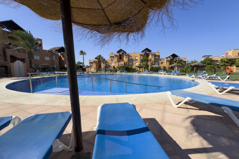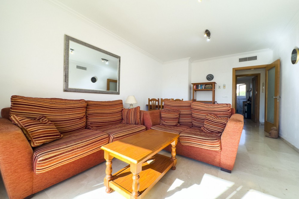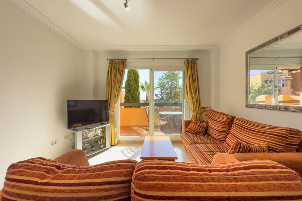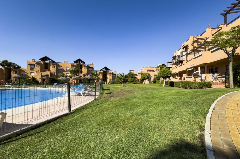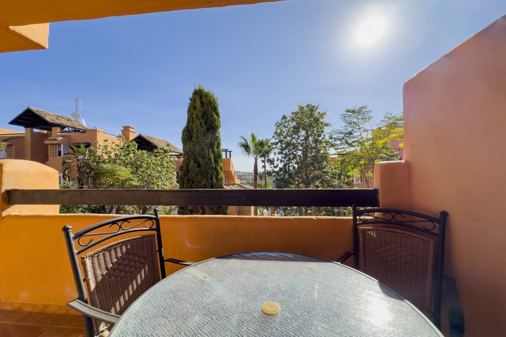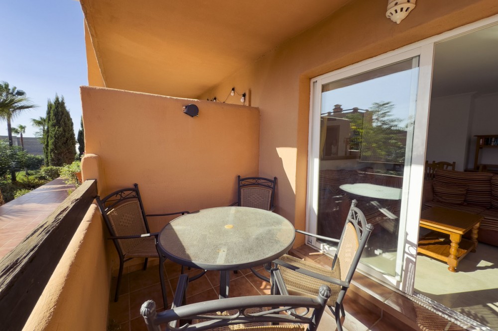- Exclusive Ground Floor Apartment with Terrace, Partial Sea Views, and 24-Hour Security in Casares Golf This attractive ground-floor apartment is located in the prestigious Casares del Sol development, within the privileged setting of Casares Golf, on the Costa del Sol. The property stands out for its excellent location, just minutes from the beach and with partial sea views, surrounded by golf courses and with access to all kinds of services. It is a unique opportunity for those seeking quality of life, security, and proximity to the best locations in the area. The 80 m² built and 70 m² interior home offers a functional and bright layout, with two bedrooms and two bathrooms, one of them en suite. The main living room opens onto a 15 m² private covered terrace, ideal for enjoying the Mediterranean climate and pleasant views of the communal garden. The fully equipped kitchen has a separate laundry room and practical built-in wardrobes. Its outstanding features include marble floors, air conditioning, access for people with reduced mobility, and fiber optic internet access. The property is in perfect condition and can be delivered furnished. The residential complex offers a secure and exclusive environment, with 24-hour security, a concierge, security cameras, and restricted access. Its extensive gardens and five communal pools invite relaxation and family enjoyment. The building has an elevator, and the home includes a private parking space and a large storage room. Pets are welcome and the complex is ideal for families, as it is close to playgrounds, schools, shops, and public transportation. Furthermore, the proximity to the ports of La Duquesa, Sotogrande, and Estepona allows access to a wide range of leisure activities, restaurants, and nautical services in just minutes. This property is perfect for both a permanent residence and a holiday investment. For more information or to arrange a viewing, please do not hesitate to contact us. Discover the pleasure of living in one of the most highly valued locations on the Costa del Sol.