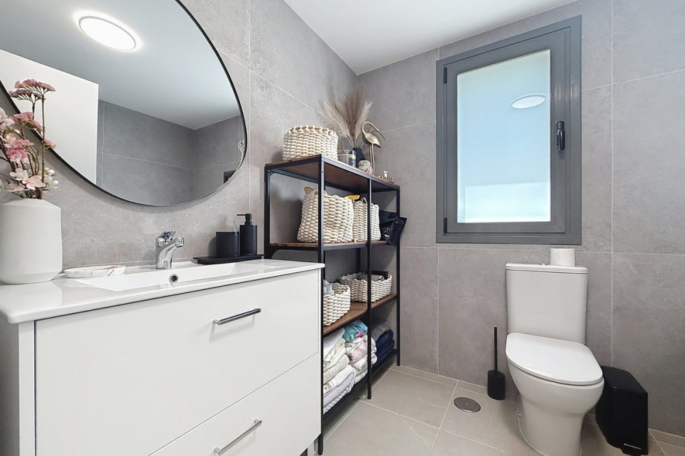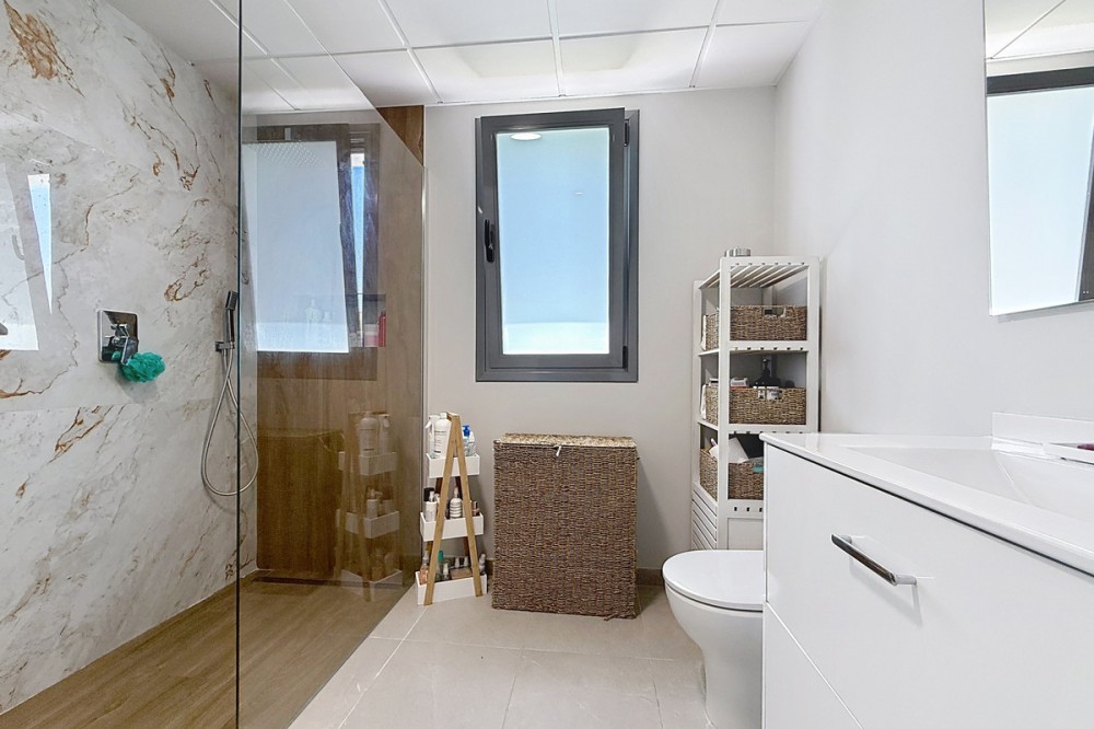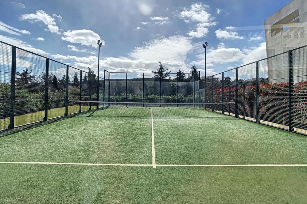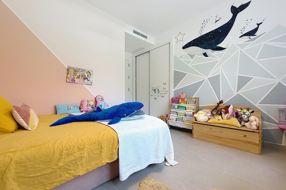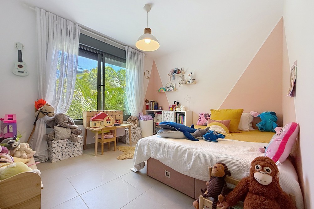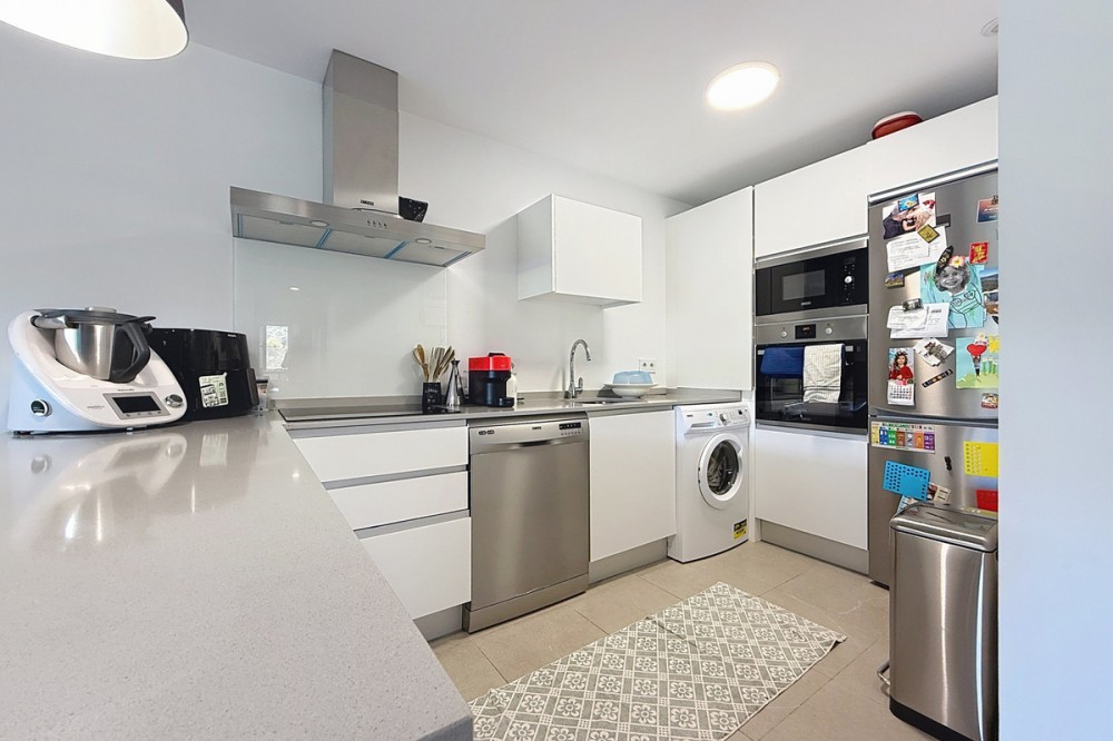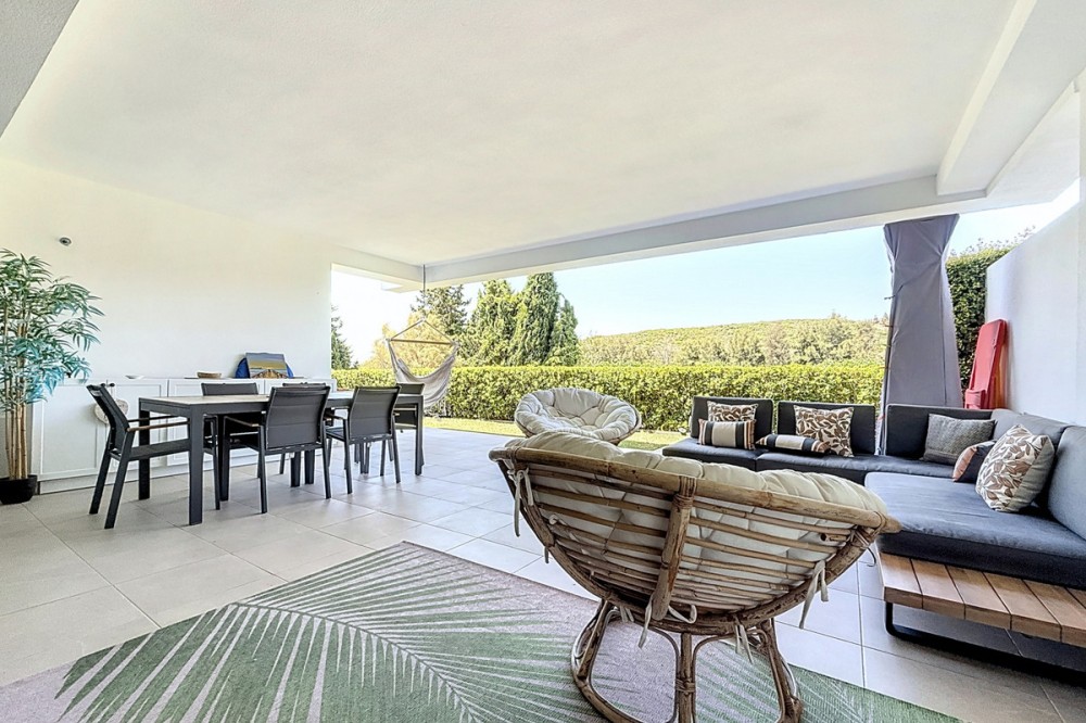- Located in a modern development completed in 2020, this stunning 3-bedroom corner ground floor apartment offers comfort, space, and tranquility in an exceptional setting. It features a spacious 36 m² terrace that opens onto a private wraparound garden of over 170 m², offering privacy and plenty of outdoor space. Inside, you’ll find a bright and generous living-dining area with a fully equipped open-plan kitchen. The night area includes three well-sized bedrooms, all with built-in wardrobes. The master bedroom has its own en-suite bathroom. The property also comes with a storage room and an outdoor parking space. Set in the heart of a 9-hole golf course, this small and peaceful residential complex features three communal swimming pools and a padel court, perfect for leisure and relaxation. Just 15 minutes on foot from the beach and 7 minutes by car from all amenities, this is an ideal opportunity for anyone seeking calm living close to everything. A great opportunity worth visiting!