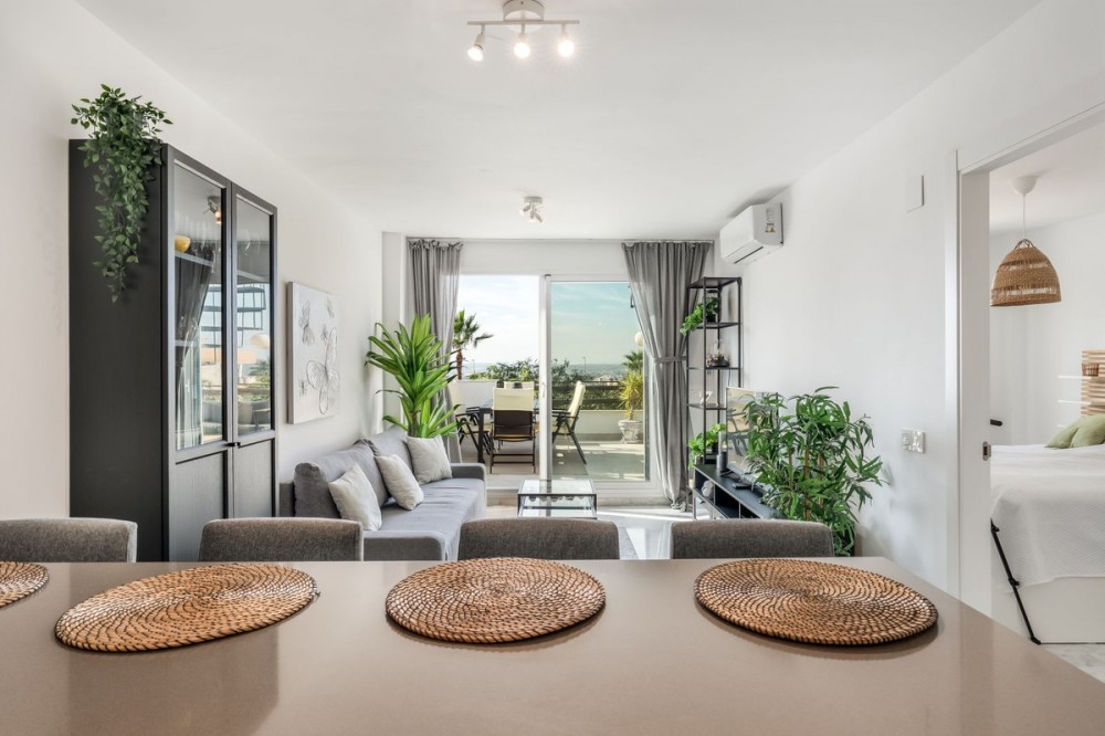 - Welcome to this charming home with 2 bedrooms and 2 bathrooms, a place where tranquility meets beautiful views. Enjoy a sunny terrace off the living room and a private rooftop terrace with sweeping panoramas of the sea, mountains, natural surroundings, and the prestigious Finca Cortesin area. The property includes a parking space in the community’s shared garage and is located in an area that’s growing and developing with new homes, shops, and public facilities. A brand-new playground has recently been built nearby, adding to the area’s welcoming and family-friendly atmosphere. Here you live surrounded by nature and peace, yet just about 7 minutes from Doña Julia Golf, the beach, the town of San Luis de Sabinillas, and the charming marina of La Duquesa. A perfect home for those who want to enjoy sunshine, views, and serenity on the Costa del Sol, while still being close to everything.