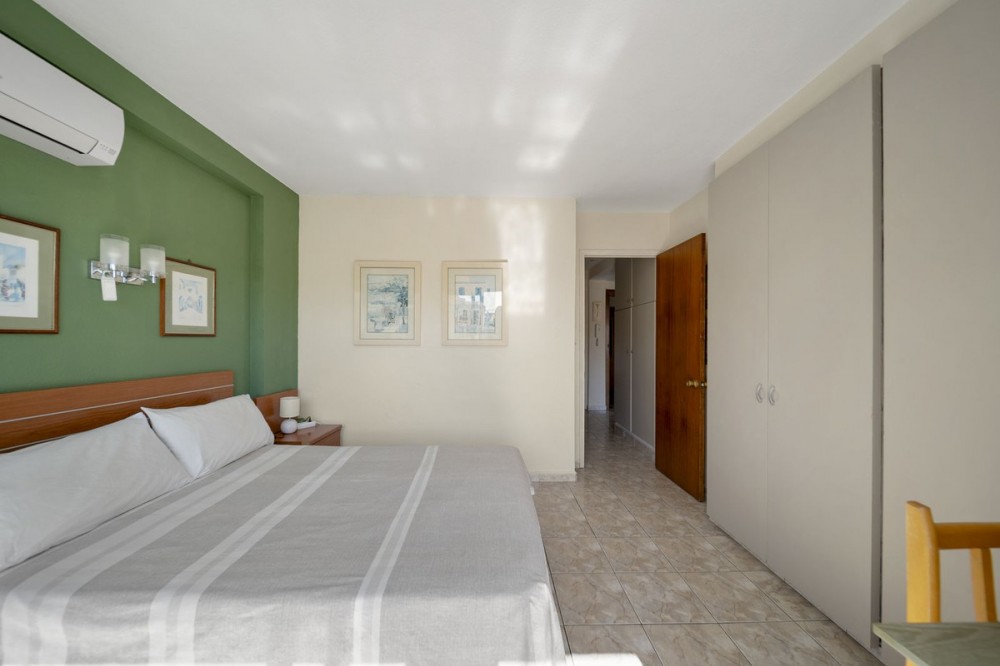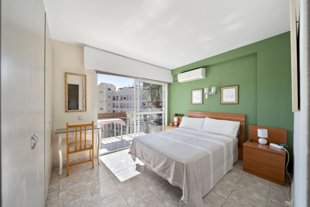 - Beautiful 2-Bedroom Apartment with Panoramic Sea Views in Arroyo de la Miel Located in one of the most sought-after areas of Arroyo de la Miel, this bright and spacious 2-bedroom, 1-bathroom apartment offers breathtaking panoramic sea views and a prime location within walking distance to everything — the train station, beach, Paloma Park, schools, and all major amenities. Set within a gorgeous mature community, this 5th-floor apartment enjoys a peaceful and green outlook, overlooking the communal gardens and pool, while capturing all-day sunshine thanks to its south-facing orientation. Step into an inviting entrance hall that leads to a generously sized living room with access to a sunny balcony, ideal for morning coffee or relaxing evenings. The separate kitchen offers practical layout and storage, while the full bathroom is well-maintained and spacious. The main bedroom is large and comfortable, with built-in wardrobes and access to a private second balcony, while the second guest bedroom is ideal for visitors, children, or as a home office. The apartment is equipped with air-conditioning throughout and has the added benefit of a tourist licence, making it a turnkey rental investment or perfect holiday home. Property Highlights: • 2 bedrooms | 1 bathroom • Two balconies with stunning panoramic sea views • South-facing – bright and sunny all day • Views over the gardens and communal pool • 5th floor apartment in a secure, well-maintained complex • Separate kitchen and spacious living area • Built-in wardrobes and air-conditioning throughout • Tourist licence in place – great for rental income • Walking distance to train station, beach, Paloma Park, schools & shops Whether you're looking for a holiday retreat, permanent residence, or an income-generating investment, this apartment ticks every box with its unbeatable location and exceptional features.