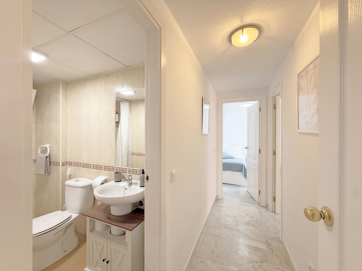 - Beautiful Apartment with Spacious Terrace and Private Patio in La Duquesa With a privileged location just 400 meters from the beach and surrounded by everything you need for day-to-day living. Supermarkets, restaurants, a gym, and services are just steps away, while in only 3 minutes by car you can enjoy the charming marina of La Duquesa and in 5 minutes the prestigious Sotogrande port, both perfect for strolling by the sea and experiencing the unique atmosphere of the Costa del Sol. A location that combines peace and quiet with the convenience of having everything close at hand. This bright and welcoming ground-floor property offers a large terrace alongside a generous private patio with a barbecue area—perfect for enjoying pleasant evenings outdoors all year round, thanks to the area’s exceptional microclimate. Facing south, it receives abundant natural light, creating a warm and comfortable atmosphere. It features two bedrooms and two bathrooms, stylishly presented and in excellent condition, ready to move into or enjoy as a holiday home. The charming residential complex, full of potential, is a small oasis of relaxation with a spectacular communal pool, beautifully maintained gardens, and a children’s play area. In addition, the property has a valid tourist license and an excellent rating on vacation rental platforms, making it an attractive option both for those seeking a second home and for those wishing to continue with a profitable investment. Don’t miss the opportunity to visit and discover for yourself all the advantages that make this a unique choice on the Costa del Sol.