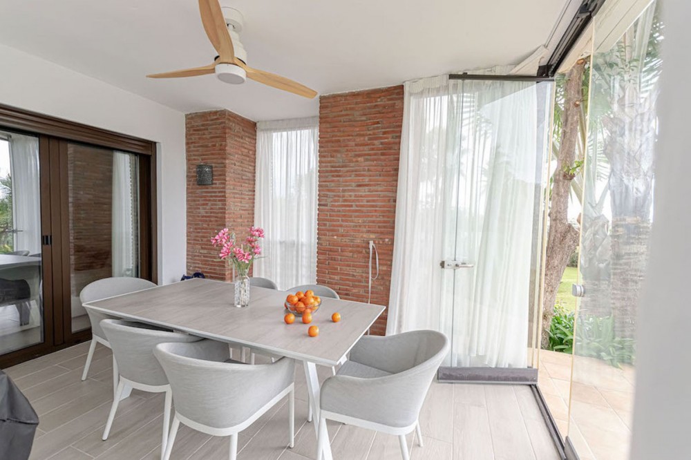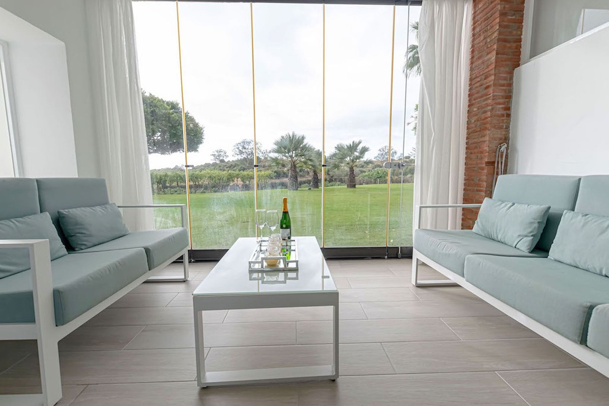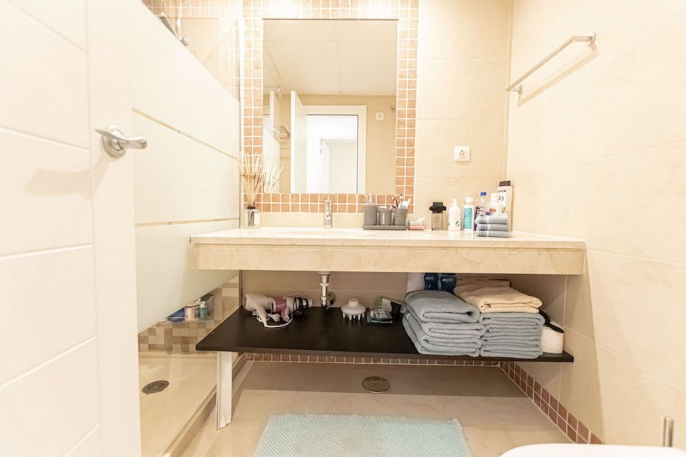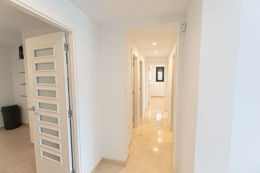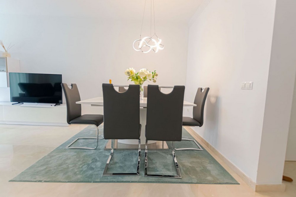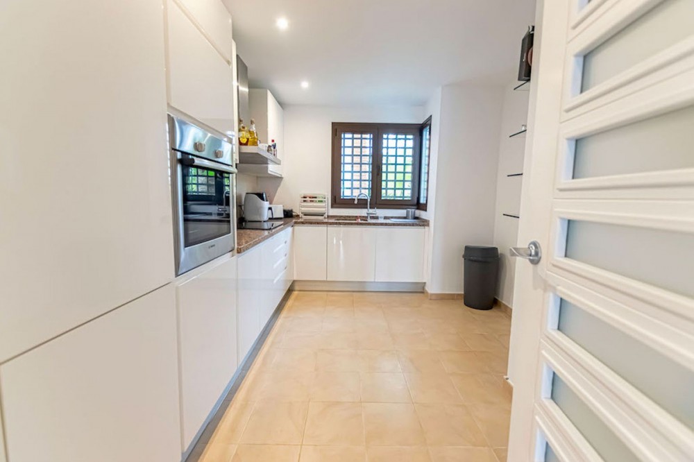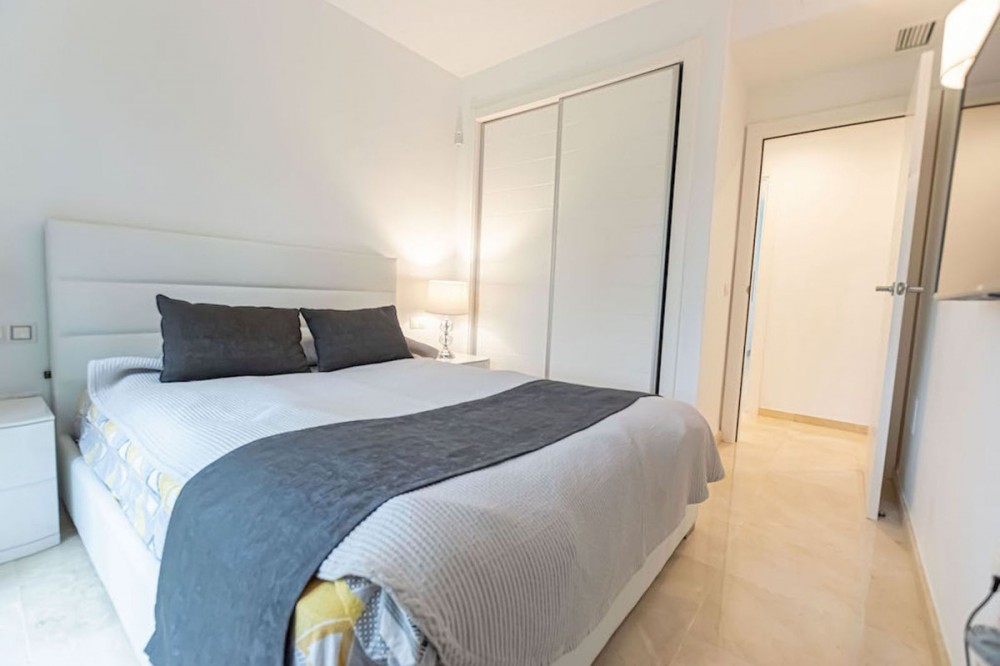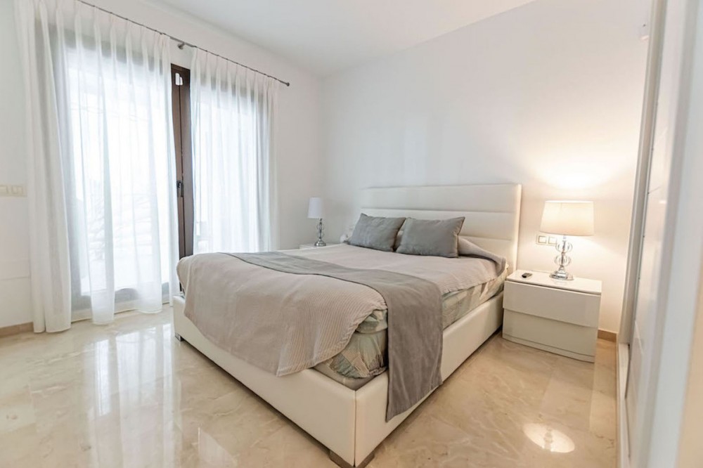 - Elegance and Comfort in New Golden Mile - a Privileged Setting on the Costa del Sol Nestled within one of the most exclusive and impeccably maintained residential complexes in the area, this distinguished ground-floor residence perfectly combines luxury, comfort, and Mediterranean style. The gated community offers a serene and refined atmosphere, featuring beautifully landscaped gardens, an elegant swimming pool, a separate children’s pool, and modern paddle courts — the ideal environment to enjoy a sophisticated and relaxed lifestyle. The apartment stands out for its brightness and well-planned layout. It comprises three spacious bedrooms, two full bathrooms with walk-in showers, and a guest toilet, all finished with high-quality materials. The glazed terrace, facing southwest, invites you to enjoy charming views of the garden and the sea, bathed in the warm natural light that fills every corner of the home. Additional features include hot and cold air conditioning, space for a washer and dryer, an underground parking space, and a storage room, ensuring functionality without compromising on style. Its location is truly exceptional — 20 minutes walk from the beach, and a short drive from the charm of Estepona town centre, the glamour of Puerto Banús, and the cosmopolitan atmosphere of Marbella. Nearby, you will find supermarkets, restaurants, pharmacies, banks, and an excellent selection of public and private schools, all within easy reach. A home that invites you to unwind — where every detail has been thoughtfully designed to create a perfect harmony between elegance, comfort, and proximity to the sea. Note: 1. This property is sold fully furnished, ready to move into with no complications. 2. The apartment is very bright throughout the day, although the photos may not fully convey this due to being taken on a cloudy day.
