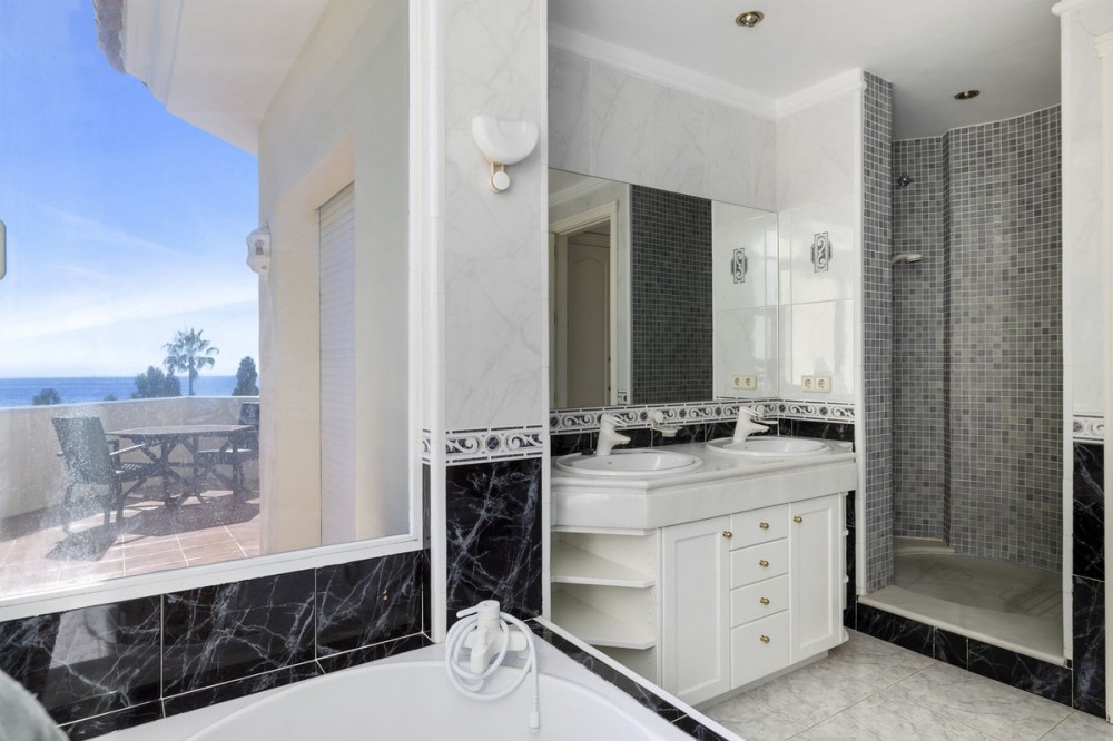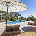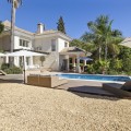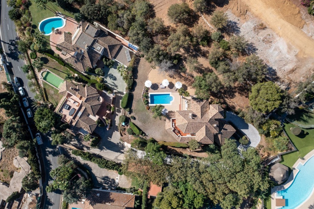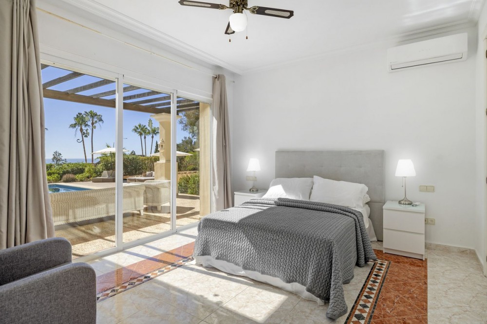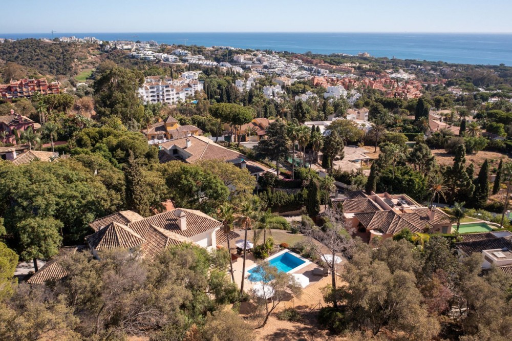 - Charming Villa with Panoramic Sea Views in Hacienda Las Chapas, Marbella East Set in the exclusive and tranquil community of Hacienda Las Chapas, this elegant villa offers a rare combination of space, privacy, and breathtaking sea views just a few minutes’ drive from Marbella’s finest beaches and amenities. Built on a generous 2,016 m² plot, the property enjoys a privileged elevated position, guaranteeing uninterrupted views of the Mediterranean from almost every room, as well as from the pool and garden area. The private driveway leads to a welcoming entrance and a spacious villa of solid build quality, ready to move into or update into a contemporary masterpiece. The home features five large bedrooms and three spacious bathrooms, along with bright living areas that open onto sunny terraces overlooking the pool and coastline. The kitchen and interior are in good condition but would benefit from a few modern touches to unlock the property’s full potential. Outside, the beautifully landscaped garden with mature palms and a sparkling swimming pool provides the perfect spot to relax and enjoy the peaceful surroundings. The garage for two cars, ample storage rooms, and electric gate add convenience and security. Located just 900 meters from the nearest supermarket, 3.5 km from Marbesa Beach and its beach clubs, and 4.5 km from the charming Cabopino Port, this villa offers an exceptional lifestyle close to everything while remaining tucked away in nature. Malaga Airport is also within easy reach. A property with charm, quality, and huge potential — a true hidden gem in one of Marbella East’s most prestigious areas.