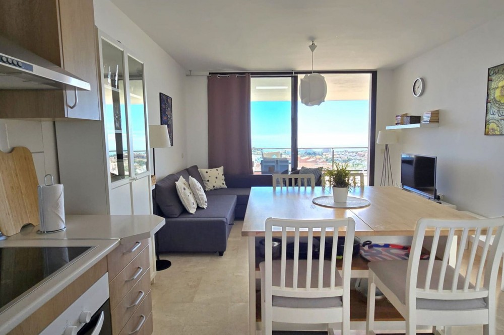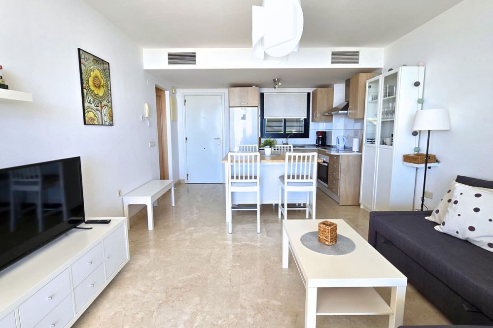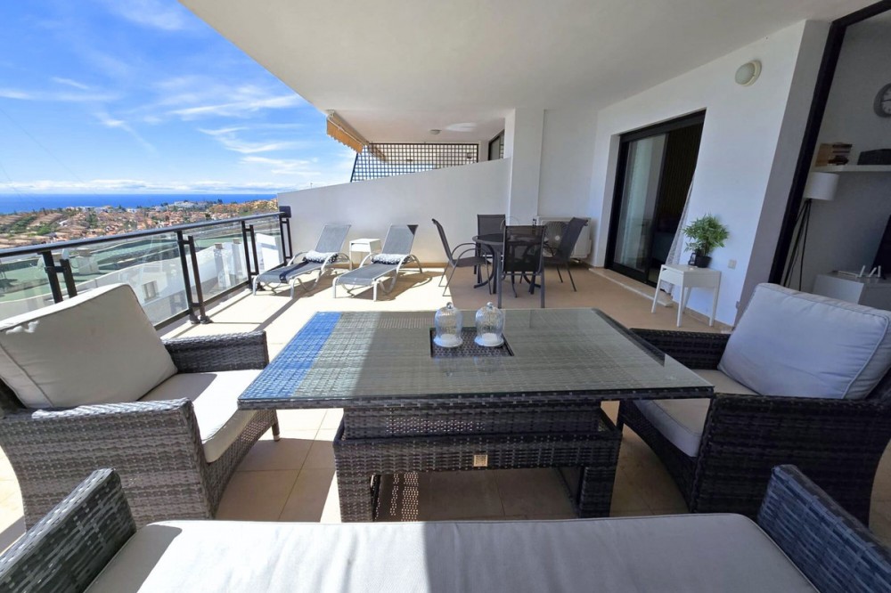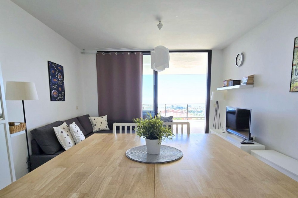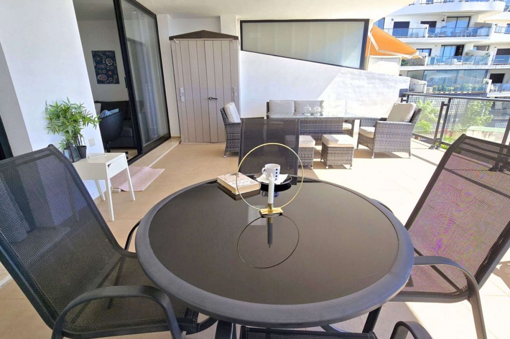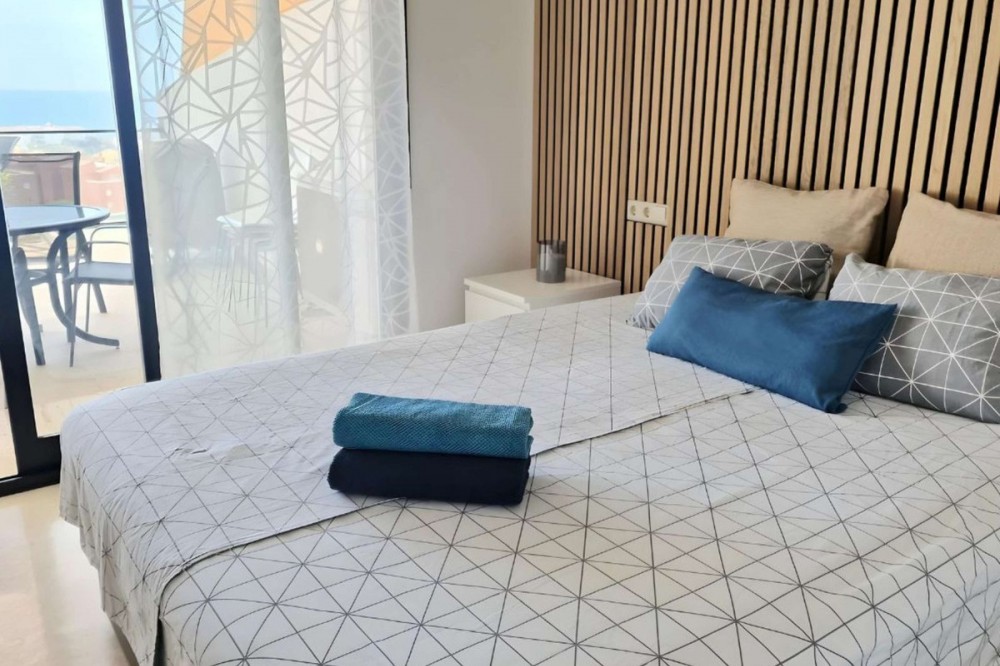 - 46 m² apartment + 36 m² terrace with sea views, 1 bedroom and 1 bathroom Bright and high-quality apartment for sale with spectacular front sea views. It features 1 bedroom, 1 bathroom with a shower, a fully equipped kitchen, a living room with a sofa bed, centralized air conditioning and built-in wardrobes. Ideal as an investment, it also has a tourist rental license. The property is sold fully furnished in an elegant Scandinavian style. The price includes a covered parking space and a storage room. It stands out for its spacious 36 m² terrace, perfect for enjoying an outdoor dining area and a relaxation space overlooking the sea. The complex offers swimming pools surrounded by green areas. Prime location: just a 6-minute drive from the beach, close to a gym, tennis center and several golf courses (Calanova Golf 400 m, Miraflores Golf 1 km). Excellent connections along the Costa del Sol: 10 minutes to Fuengirola, 10 minutes to Marbella and 20 minutes to Málaga Airport. Expenses: Annual property tax (IBI): €273.99.