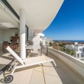 - Elegant south facing apartment, in the exclusive urbanization of Higuerón West, with 3 bedrooms, 2 bathrooms, spacious living-dining room, open plan kitchen fully furnished and equipped with electrical appliances from BOSCH, laundry area with washing machine/dryer, large terrace of 26m2 with amazing panoramic sea views. Master bedroom with closet, open plan ensuite bathroom and access to a small terrace. Air conditioning hot and cold, video intercom, domotic system, built-in wardrobes in all bedrooms and hall, pre-installation alarm system, under floor heating in bathrooms. Includes two parking spaces and one storage room.