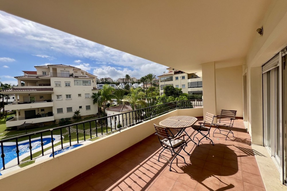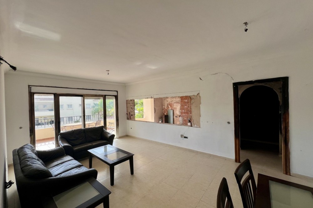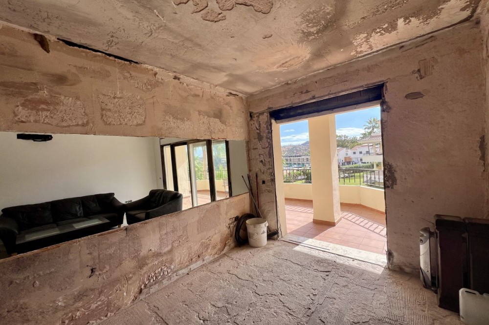 - Located in the Monte Bello complex, this two-bedroom apartment offers an excellent renovation and investment opportunity. The property is part of the La Cala Hills residential area in Mijas Costa, a quiet and well-connected location close to golf courses, shops and restaurants. The apartment has a total built area of approx. 80 m² plus a 30 m² south-facing terrace. Although it has suffered fire damage and requires a full internal refurbishment, the structure and main installations remain in good condition, providing a solid base for rebuilding or redesigning to your own taste. Once renovated, the apartment can offer a bright living and dining area with direct access to the sunny terrace, a separate kitchen, two bedrooms and two bathrooms. It includes an underground parking space and a private storage room. Monte Bello is a small gated community with only 18 apartments, featuring a communal garden and swimming pool surrounded by greenery. The beaches of La Cala de Mijas are around 10 minutes away, and Málaga Airport about 25 minutes. Key Features * 2 bedrooms and 2 bathrooms * Approx. 80 m² built + 30 m² terrace * South-facing terrace with all-day sun * Apartment for full renovation * Structural condition remains sound * Small community of 18 apartments * Communal garden and swimming pool * Underground parking space and private storage room* Quiet area close to amenities and golf courses 10 min to La Cala de Mijas – 25 min to Málaga Airport This property represents a solid renovation and investment project in one of the most established areas of Mijas Costa. Viewings by appointment only.