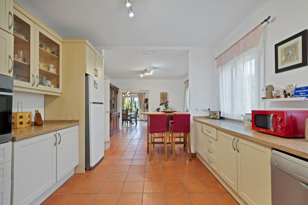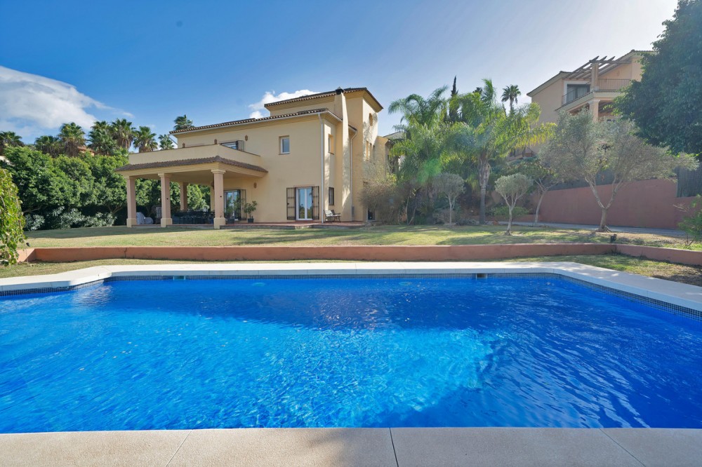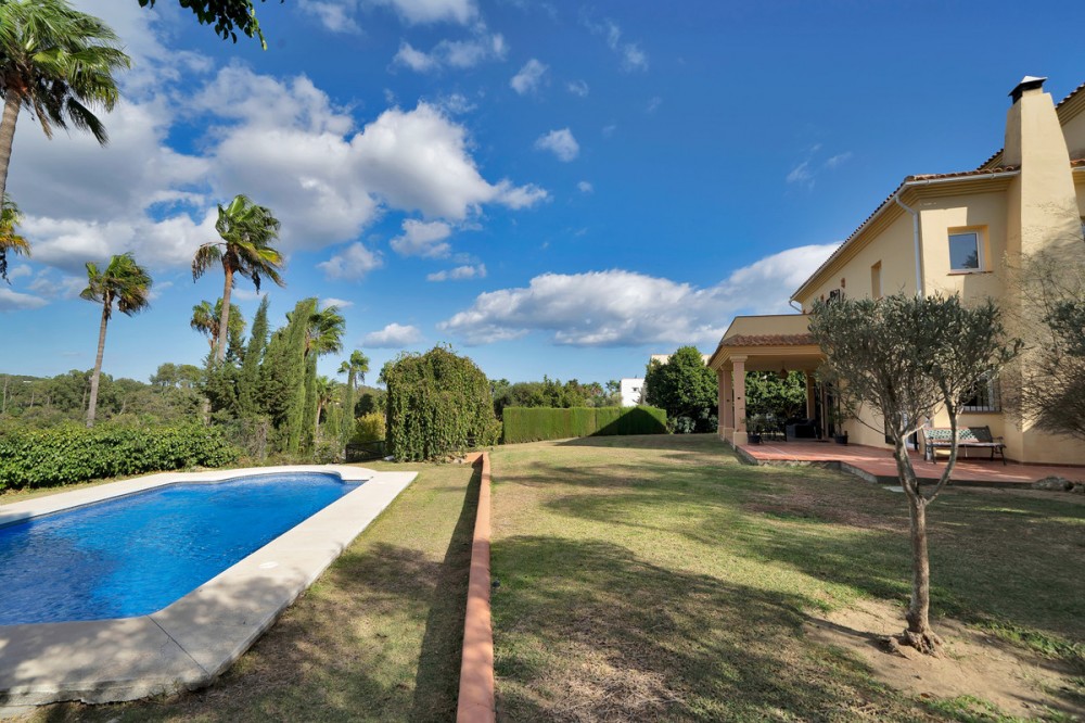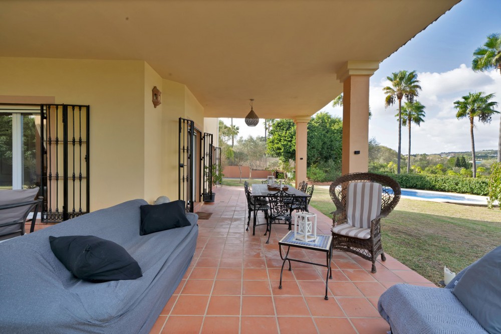 - Villa in Sotogrande Alto Unique opportunity. This villa, located in Zone F of Sotogrande Alto, is coming to the market at an exceptional price. It boasts 350 m2 of living space on a 1,900 m2 plot and splendid unobstructed views. Properties with similar characteristics currently on the market in Sotogrande exceed the price of this luxurious villa. The home is spread over three floors. On the ground floor, we find a bright living room with access to a 20 m2 porch and the front garden with a private pool. Its spacious kitchen is complemented by a laundry area and access to a rear garden. It also has the advantage of having a bedroom with an en-suite bathroom on the ground floor and a guest toilet. On the first floor, there is the master bedroom with an en-suite bathroom and a large terrace from which you can enjoy panoramic views. There are two more bedrooms, one with its own terrace and a full bathroom. The top floor was renovated, and two more connecting rooms were added, ideal as a playroom, children's bedroom, or even an office. The plot is flat and fully usable, which distinguishes it from most of the villas in the area. The porch surrounds the house at the front and on one side, creating two distinct spaces that can be used as gathering and relaxation areas. The garage has capacity for one or two vehicles, and at the rear, there is a pergola under which another two can be parked. Don't miss this property! There is no other property in Sotogrande that meets these characteristics at this price!