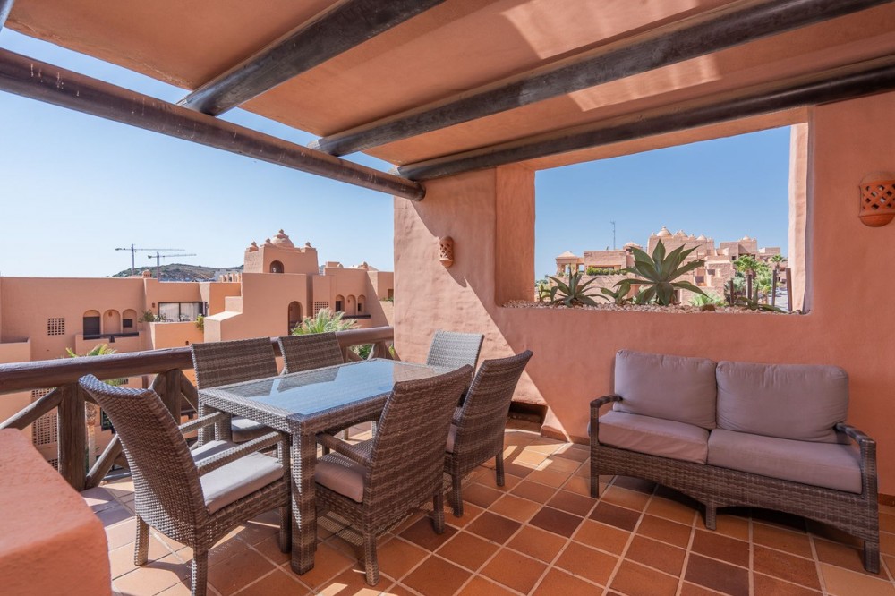 - Beautiful 2-Bedroom Apartment with Sea Views. This elegant 2-bedroom, 2-bathroom apartment boasts stunning sea views from its spacious terrace. Located just a 5-minute drive from La Duquesa port, the apartment features marble flooring throughout and integrated air conditioning. Enjoy a well-maintained community with multiple swimming pools, plus the convenience of a private garage space and storage room. The property can be sold fully furnished for your convenience. Contact us for additional questions and viewings.