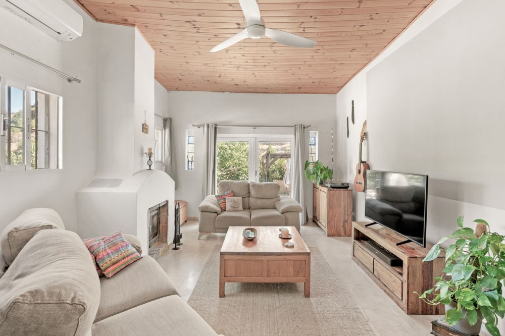 - Situated just 3kms inland from Estepona, this charming finca combines living in a natural surrounding with the practicality of proximity to the coast and a towncentre. The property has a large private parking area at the entrance and the land is gated and fenced. From the driveway we reach the front door which opens onto the cozy living room with fireplace and acces to the outdoor pool area. The kitchen is fully equipped and leads onto the wonderful and spacious covered terrace with views over the pool and the surrounding landscape, perfect for outdoor dining. There are two guest bedrooms, currently in use as offices, as well as a guest bathroom and a separate WC. Lastly, there is the spacious masterbedroom with access to the terrace, a walk-in wardrobe and en-suite bathroom. The outdoor space is lovely with plenty of covered and open terrace area as well as a pergola area with barbecue at one end of the pool. There is an additional separate storage room or workshop and the property has its own solar installation. The rest of the land slopes down to a small river and there is still some space to either extend the garden or to cultivate fruit & vegetables on either the main plateau or on the slope down. A gorgeous authentic property in the Estepona countryside, yet close to all amenities. The last 100m to the house are by way of a dirt road and the property is in the process of obtaining the AFO.