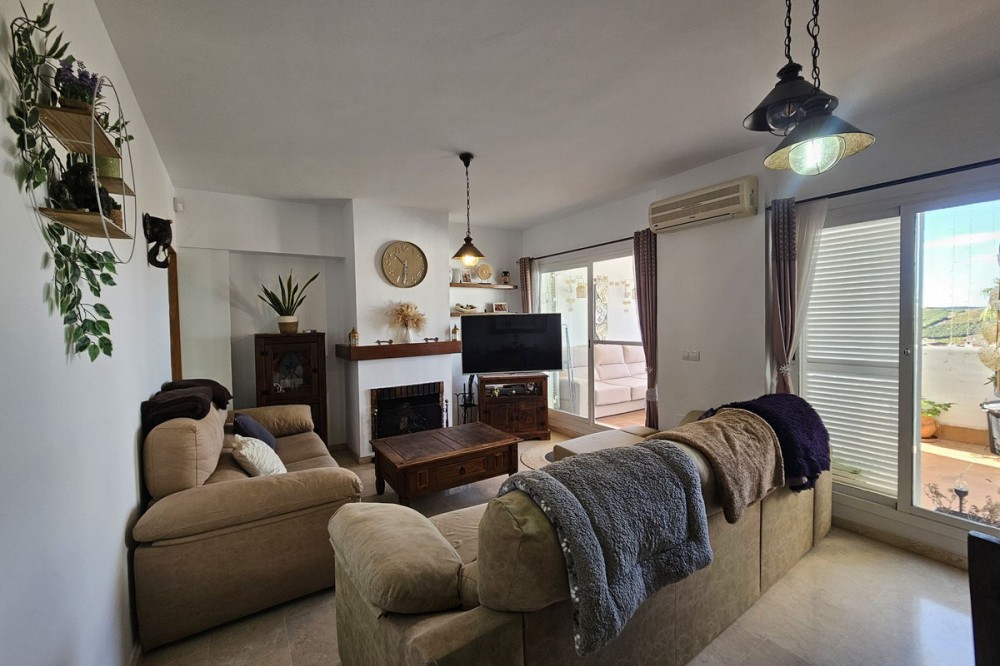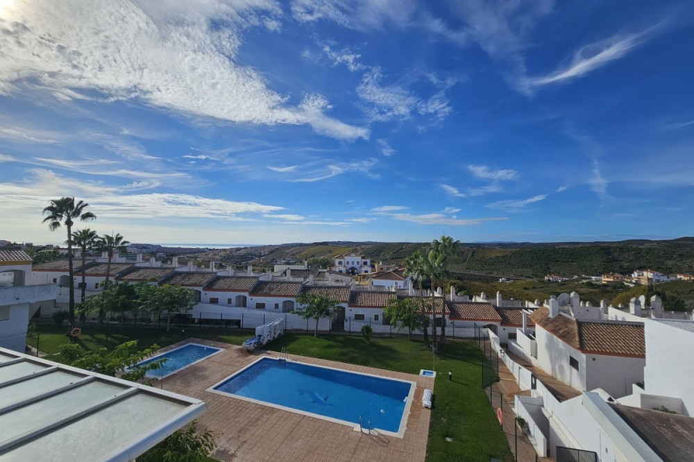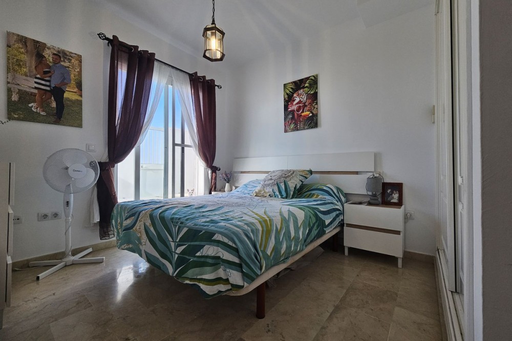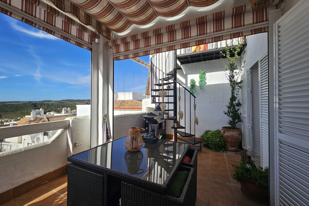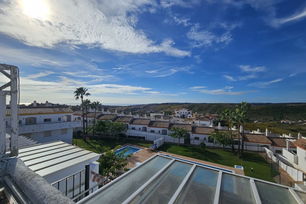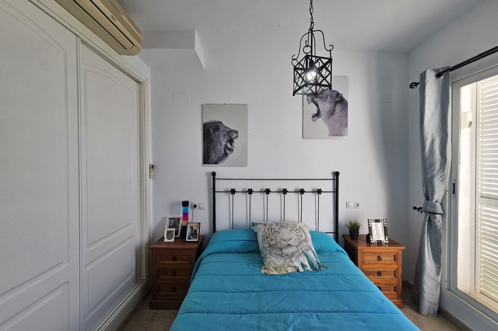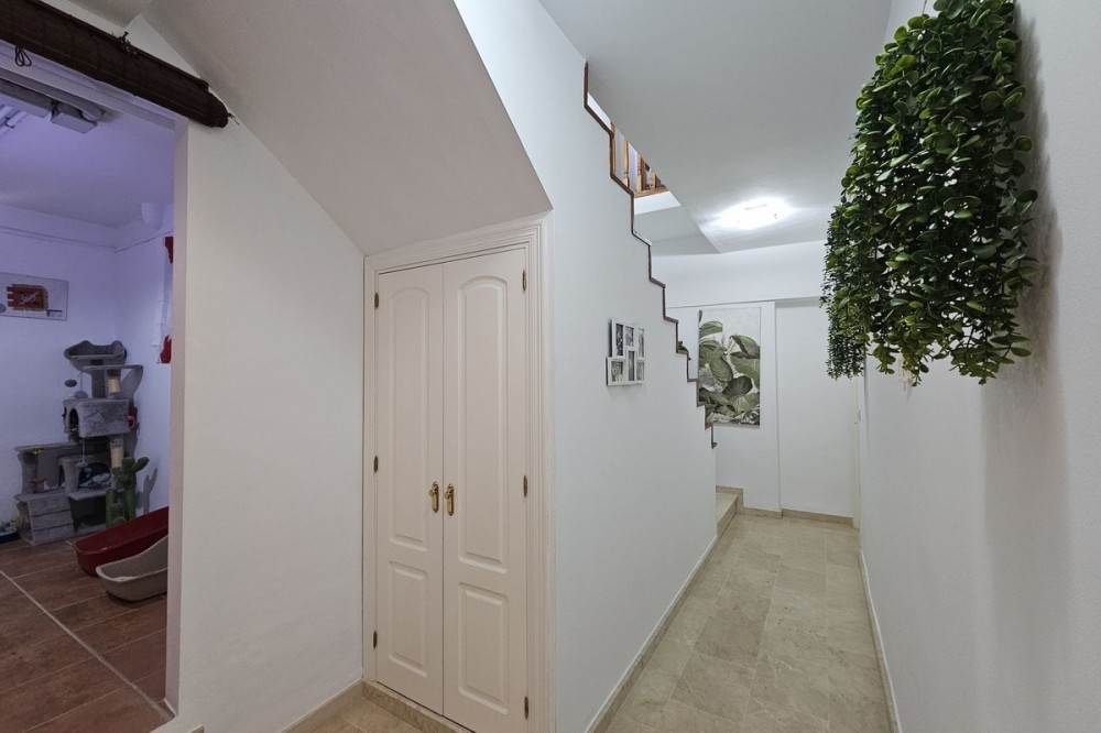 - Large and spacious townhouse in the beautiful village of Manilva. Just a 5 minute drive up from the repsol petrol station in Sabinillas you drive into this closed urbanisation. Very safe area close to all amenities including bank, pharmacy, townhall, bars etc. The community itself only consists of 42 properties and is well taken care of, low community fees of 60Euros a month, but with the use of a very well taken care off pool!. The house itself has lots to offer. Downstairs you have your own private garage on your doorstep, so your car is always nice and cool and no more running through the rain. Downstairs 2 good size bedrooms with fitted wardrobes and en-suite bathrooms. Large laundry room and storage. Rooms are always nice and cool, but blinds and air con fitted in all rooms and terraces! First floor, guest toilet, separate kitchen, living/dining and a 20M2 south facing terrace. Up from here SPIRAL stairs to another 30M2 private terrace with amazing views, even of the sea! The property has got its own private garaged parking space included in the price. From your own private parking you can enter directly into your home! Entrance from the parking is on the lower level of the property. On the lower level you find two bedrooms and they both have an own en-suite bathroom. Two bedrooms are large and walk out onto a South-West facing terrace. There is a large communal pool; there is also a kid’s pool. The communal pool area has got showers. First floor: Walk up the stairs you enter the lovely dining / lounge area. Here there is also the main entrance of the property, so if you have visitors no one needs to go through the bedrooms, completely separated from the relax areas, large 20M2 terrace with views on the pool, the mountain and some sea in the end. Next to the main entrance there is a toilet for your guests. The kitchen is here on your left and is a good size - fully fitted corner kitchen. From the terrace there are spiral stairs up to the sun roof terrace. Sunroof is large of 33M2, great area for a BBQ or to sunbath. On all levels of the property you can see the beautiful mountain views of Manilva and from the sunroof there is sea views. In the lounge there is an open fire. The property is sold furnished, OPEN FOR NEGOTIATION.