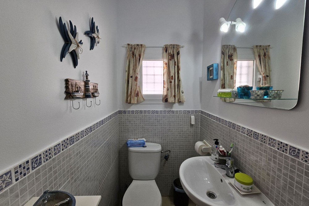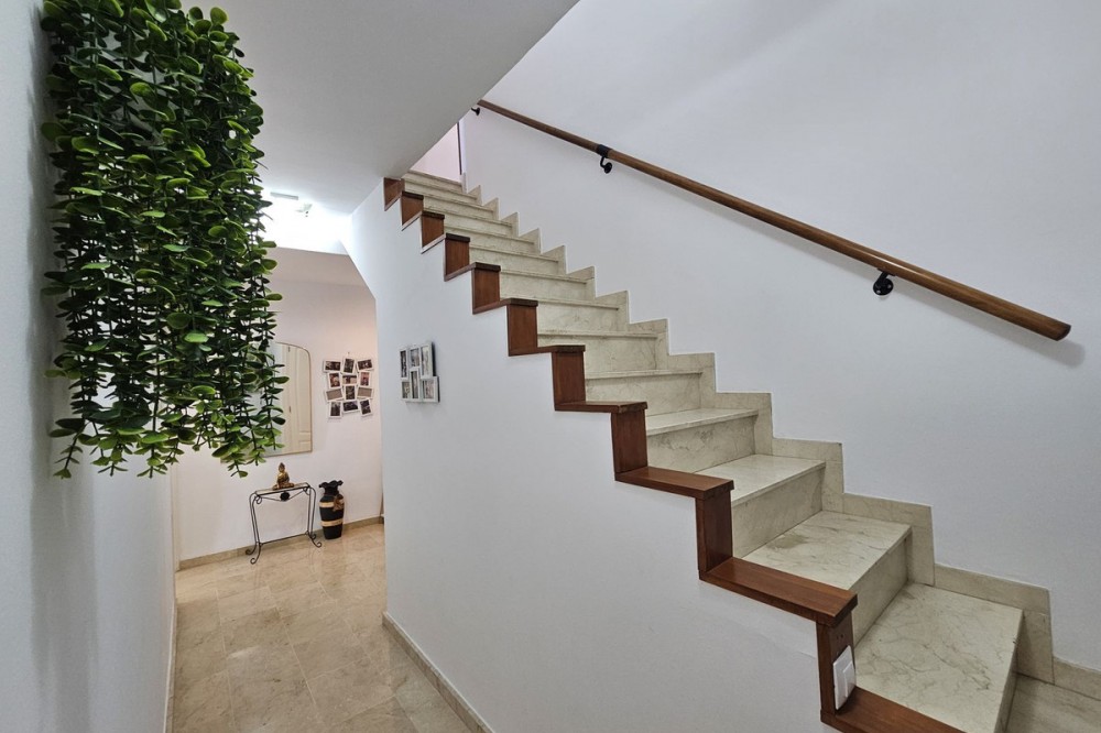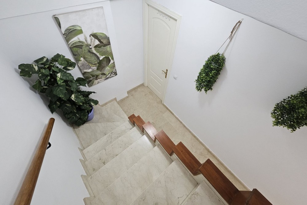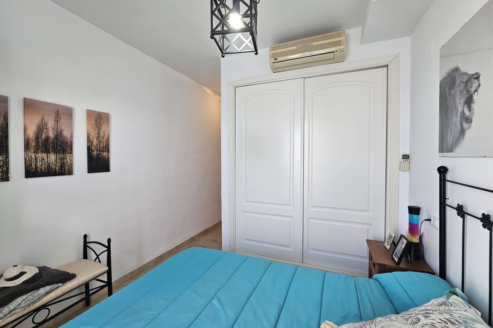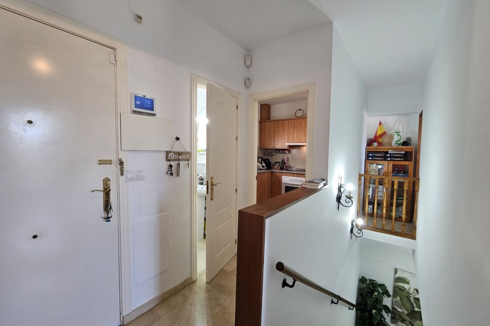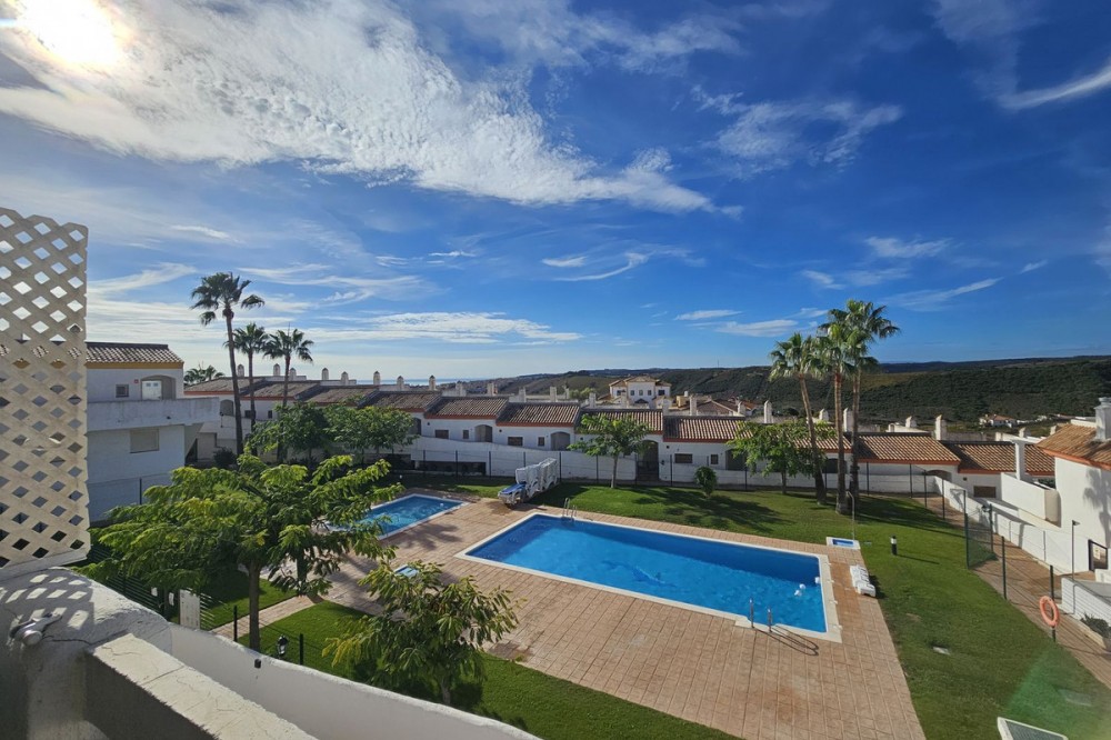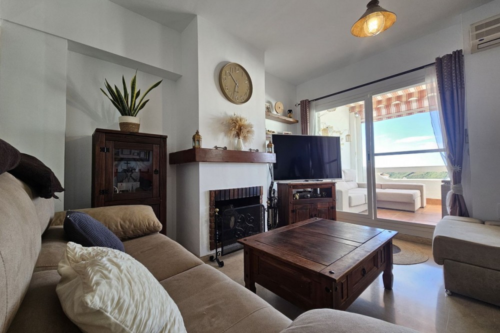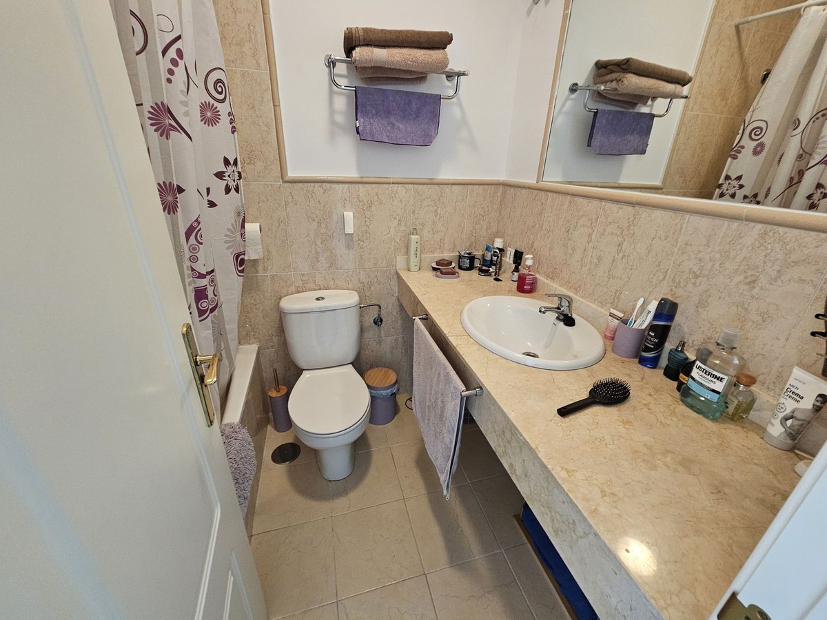 - Large and spacious townhouse in the beautiful village of Manilva. Just a 5 minute drive up from the repsol petrol station in Sabinillas you drive into this closed urbanisation. Very safe area close to all amenities including bank, pharmacy, townhall, bars etc. The community itself only consists of 42 properties and is well taken care of, low community fees of 60Euros a month, but with the use of a very well taken care off pool!. The house itself has lots to offer. Downstairs you have your own private garage on your doorstep, so your car is always nice and cool and no more running through the rain. Downstairs 2 good size bedrooms with fitted wardrobes and en-suite bathrooms. Large laundry room and storage. Rooms are always nice and cool, but blinds and air con fitted in all rooms and terraces! First floor, guest toilet, separate kitchen, living/dining and a 20M2 south facing terrace. Up from here SPIRAL stairs to another 30M2 private terrace with amazing views, even of the sea! The property has got its own private garaged parking space included in the price. From your own private parking you can enter directly into your home! Entrance from the parking is on the lower level of the property. On the lower level you find two bedrooms and they both have an own en-suite bathroom. Two bedrooms are large and walk out onto a South-West facing terrace. There is a large communal pool; there is also a kid’s pool. The communal pool area has got showers. First floor: Walk up the stairs you enter the lovely dining / lounge area. Here there is also the main entrance of the property, so if you have visitors no one needs to go through the bedrooms, completely separated from the relax areas, large 20M2 terrace with views on the pool, the mountain and some sea in the end. Next to the main entrance there is a toilet for your guests. The kitchen is here on your left and is a good size - fully fitted corner kitchen. From the terrace there are spiral stairs up to the sun roof terrace. Sunroof is large of 33M2, great area for a BBQ or to sunbath. On all levels of the property you can see the beautiful mountain views of Manilva and from the sunroof there is sea views. In the lounge there is an open fire. The property is sold furnished, OPEN FOR NEGOTIATION.