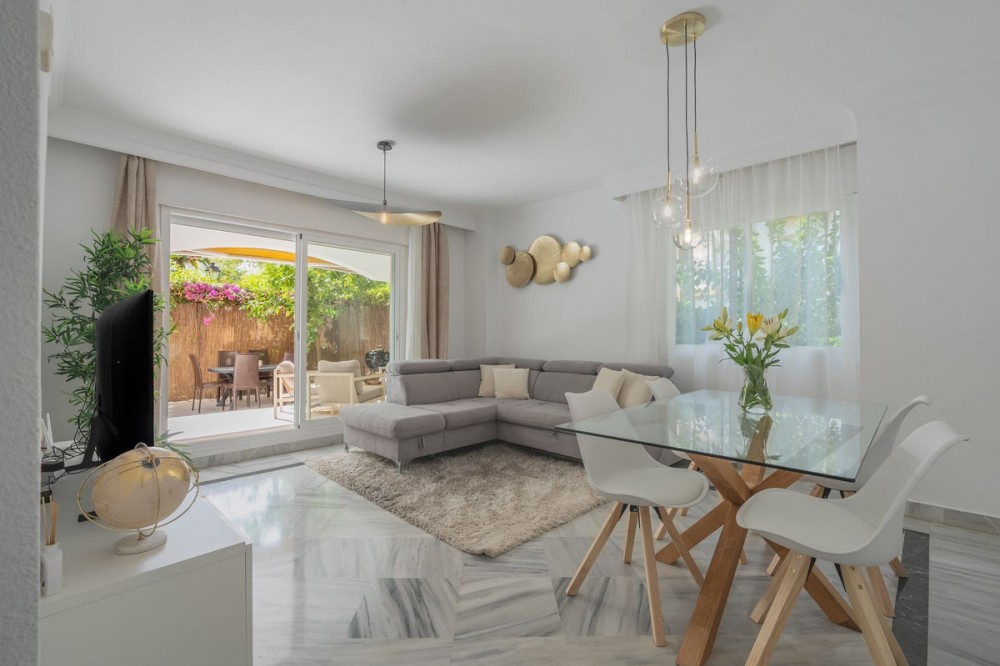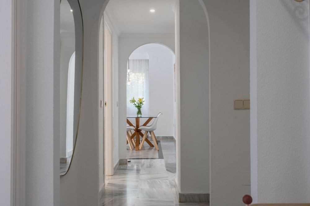 - Exclusive Luxury Apartment in Dama de Noche, Nueva Andalucía – Marbella. In the heart of Nueva Andalucía, Marbella, just minutes from Puerto Banús, this magnificent fully furnished apartment with three bedrooms and three bathrooms offers the perfect combination of elegance, comfort, and a privileged location in one of the most sought-after areas of the Costa del Sol. The apartment features spacious and bright living areas, with a welcoming living-dining room that opens onto a large terrace, perfect for enjoying the Mediterranean climate all year round. It includes a modern fully equipped kitchen with high-end appliances, as well as three generous bedrooms with built-in wardrobes. The master bedroom boasts an en-suite bathroom and direct access to the terrace, creating a space of exceptional comfort and privacy. The exclusive Dama de Noche community is known for its peaceful environment, immaculate maintenance, and outstanding facilities. Residents can enjoy several swimming pools surrounded by beautifully landscaped tropical gardens, extensive green areas for walking, paddle tennis courts, and an on-site restaurant providing a pleasant and exclusive atmosphere without leaving the community. The complex also offers 24-hour security and concierge service. Its excellent location, just a short walk from Puerto Banús, its beaches, boutiques, restaurants, golf courses, and a full range of services, makes this property ideal for both year-round living and enjoying luxurious holidays in one of Marbella’s most prestigious areas. A ready-to-move-in home that offers style, comfort, and an incomparable quality of life in the heart of Nueva Andalucía.